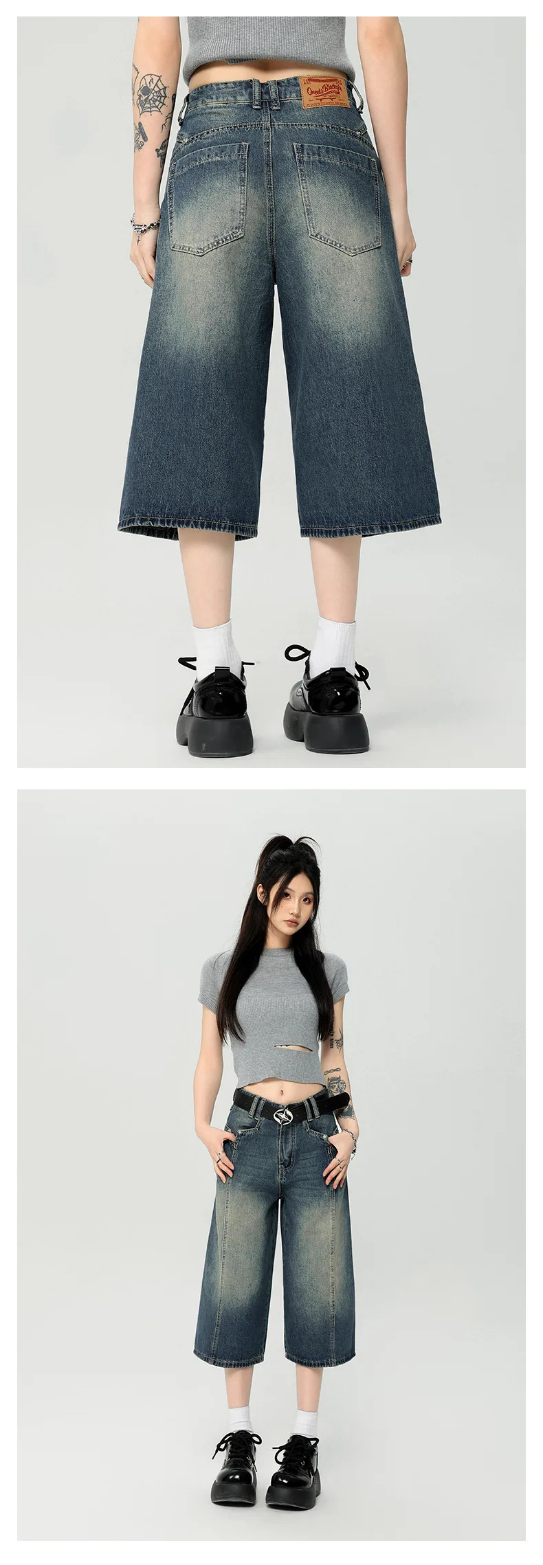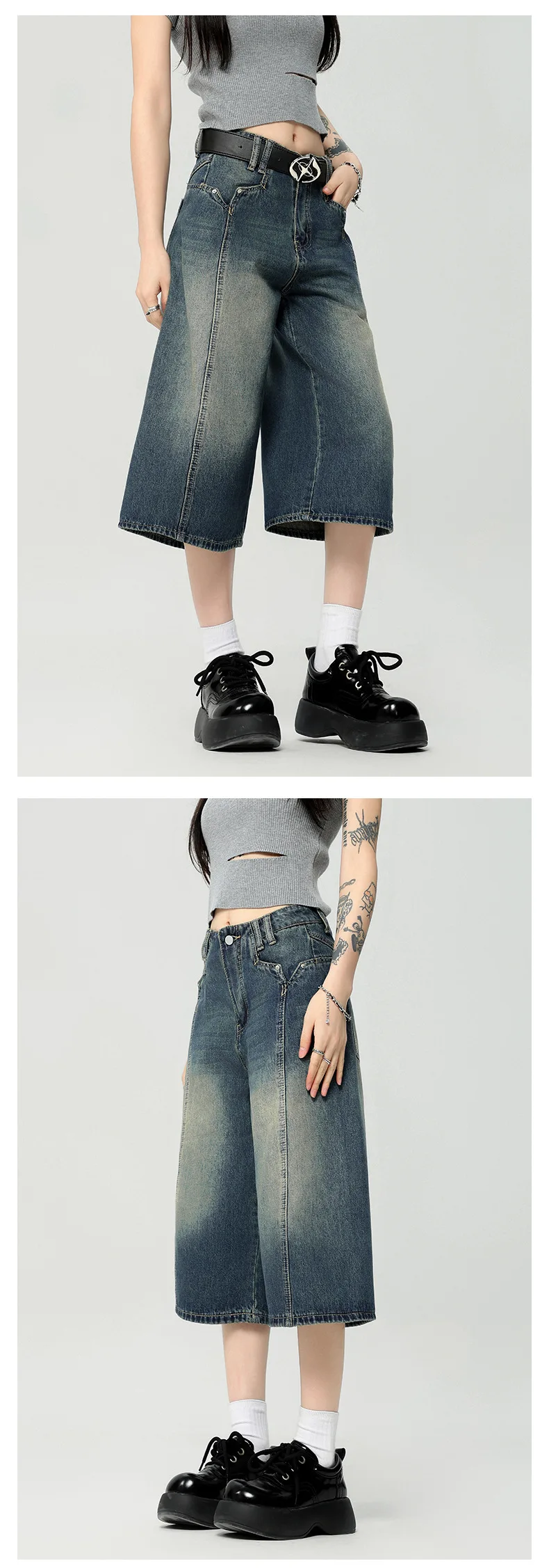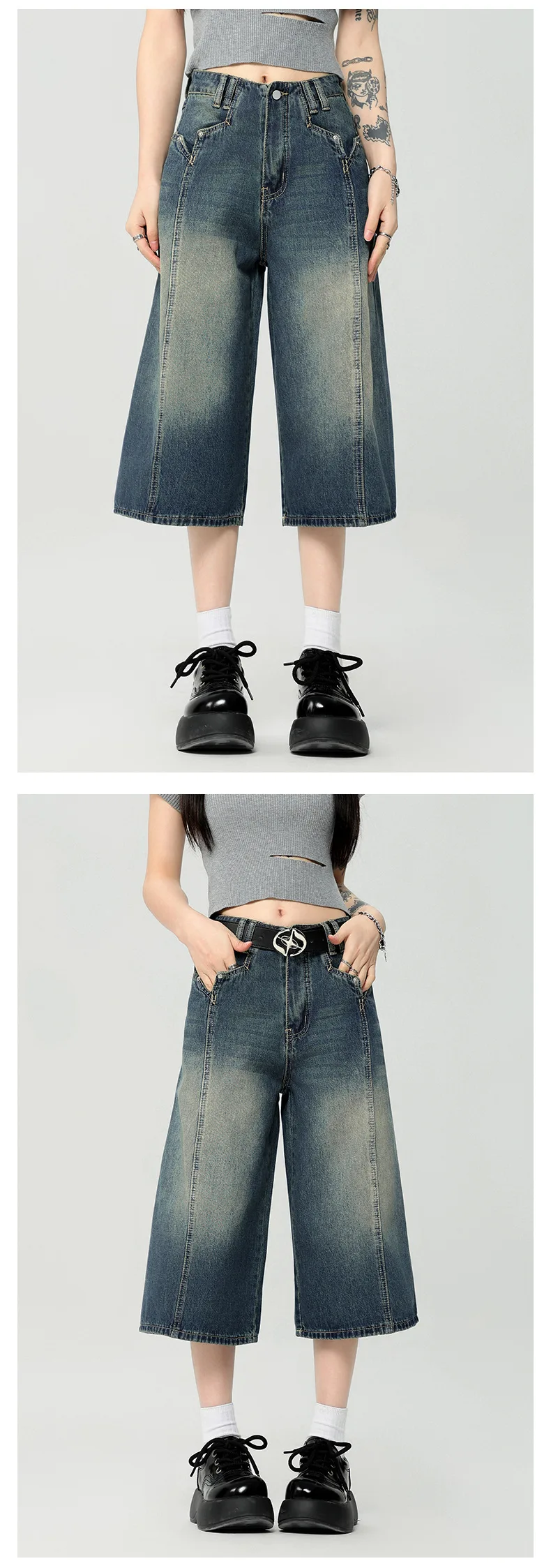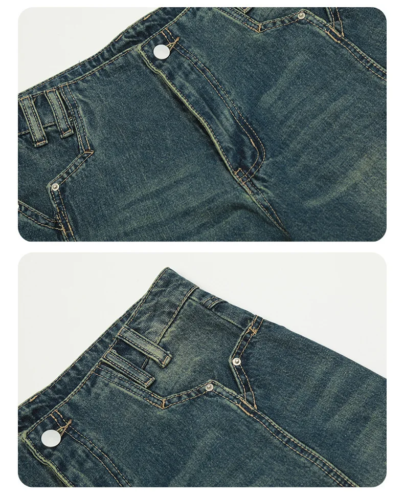 Men's High Street New American Style Casual Washed Cropped Male Denim Shorts Straight Leg Gradient Color Summer 9W1724