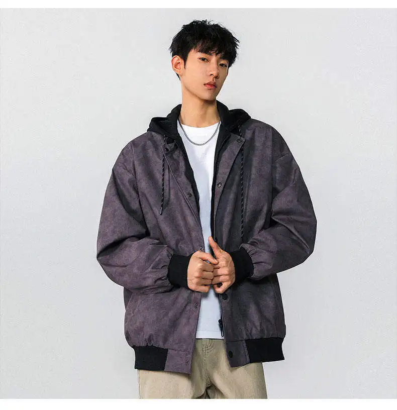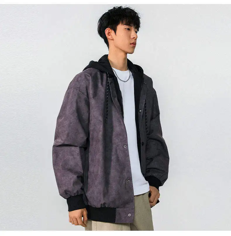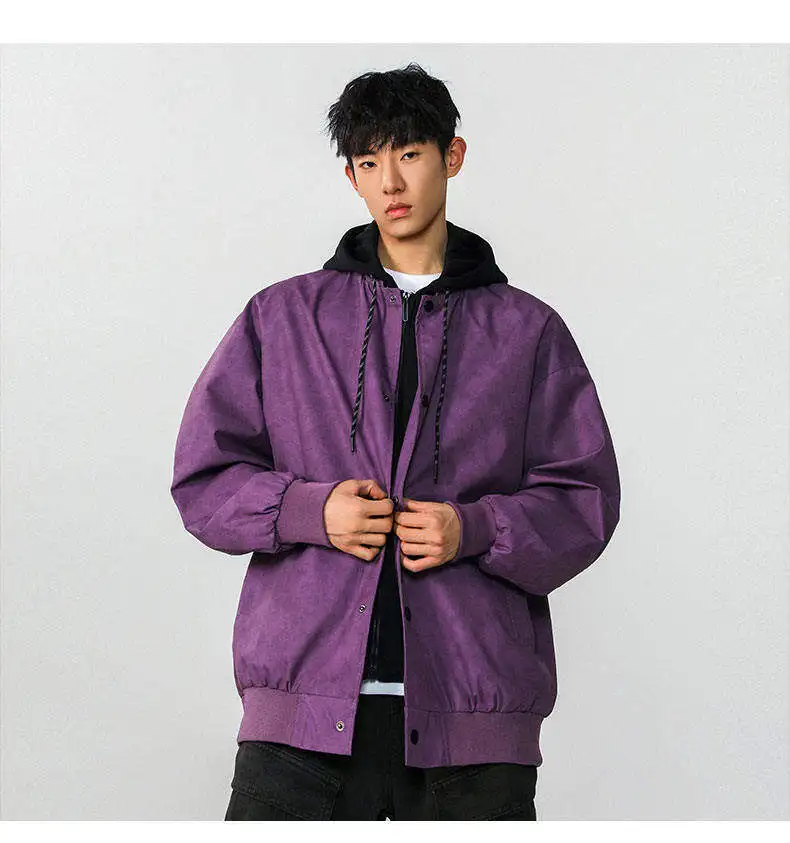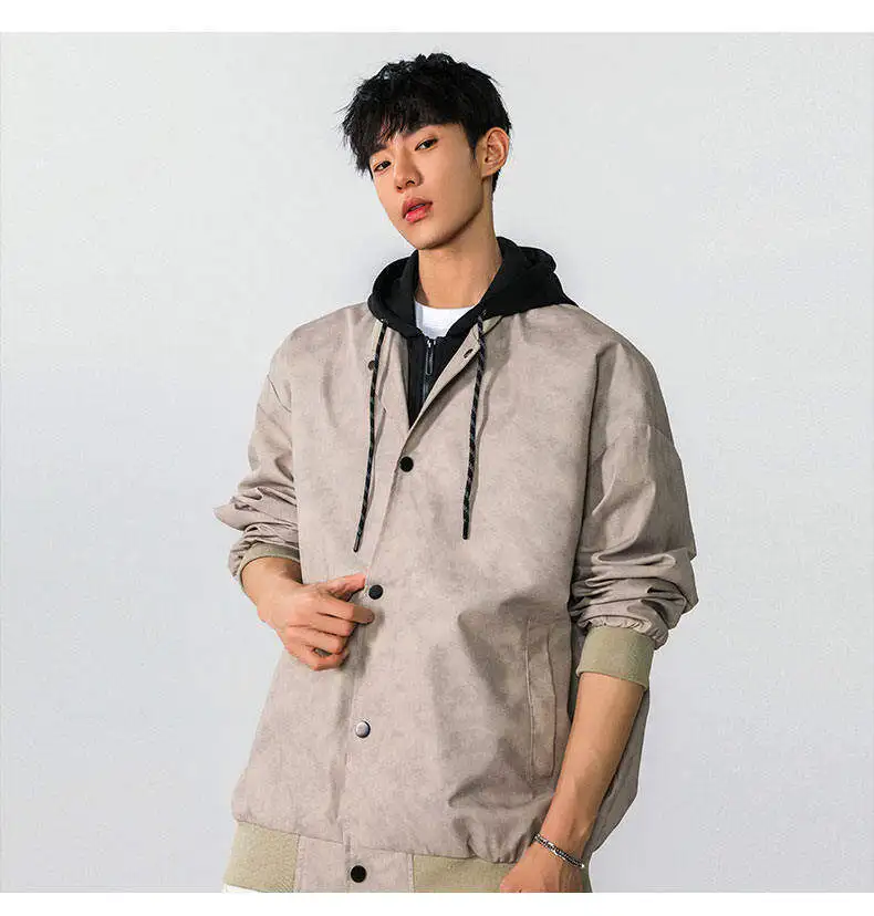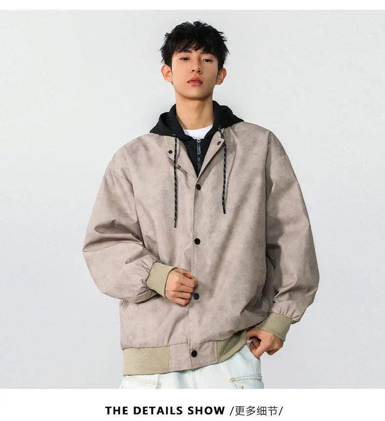 Men's Hooded Jacket Spring New American Fake Two-piece Patchwork Multip Pocket Trendy High Street Menwear 2025 9W1275