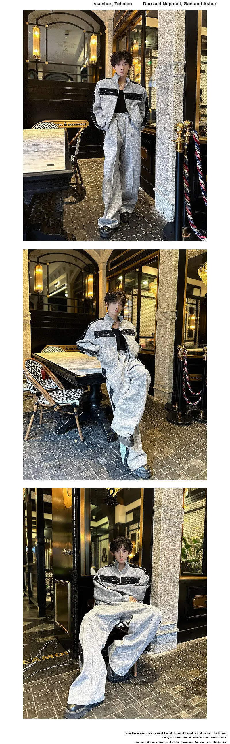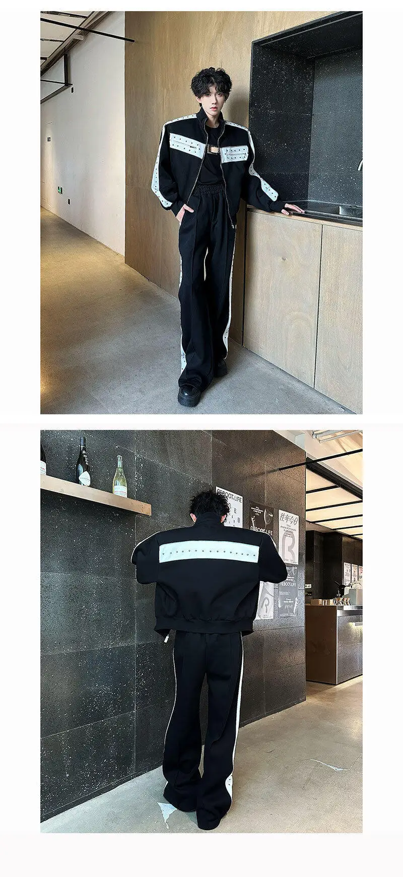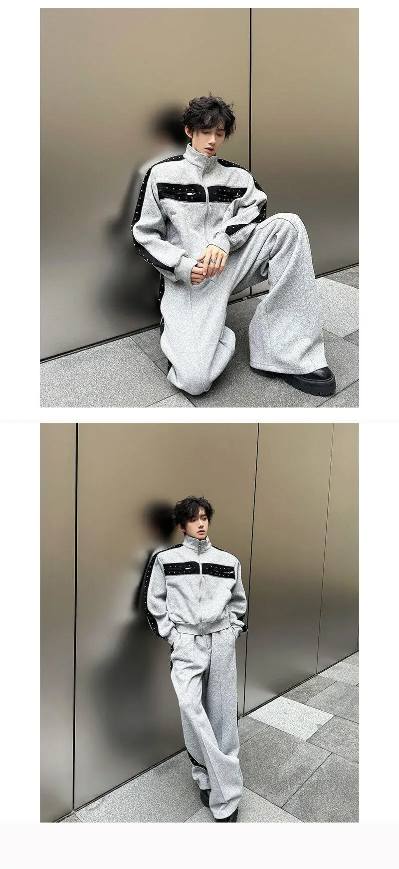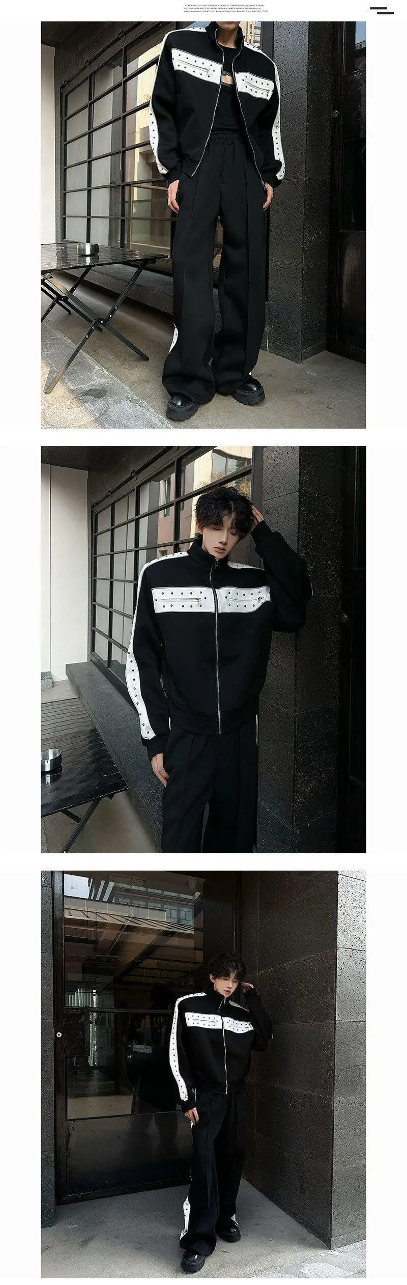 Men's Jacket Rivets Design Contrasting Color Stand Collar New Korean Shoulder Pad Jackets Multi Zippers Spring 2025 9W1344