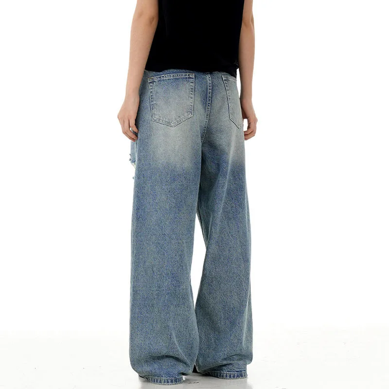 Load image into Gallery viewer, Men's Jeans Cat Whisker Ripped Deisgn Summer Hole Stylish Loose Korean Straight Wide Leg Male Casual Trousers 9W1721