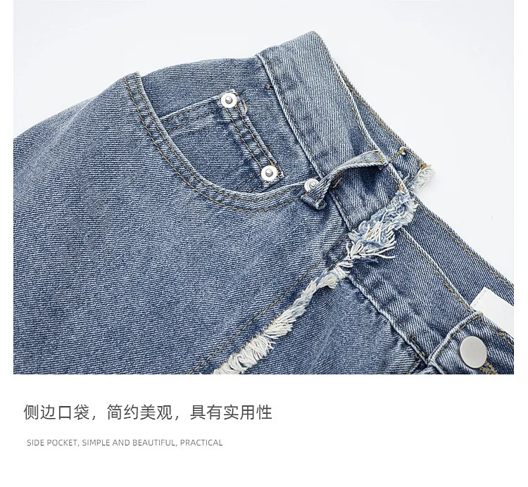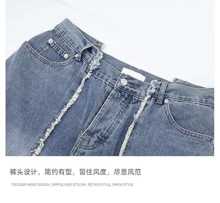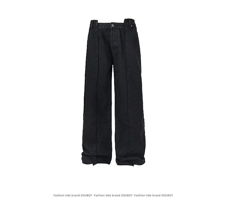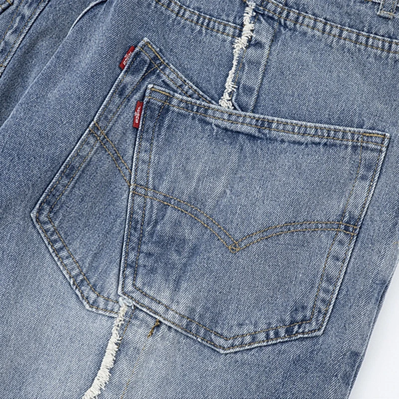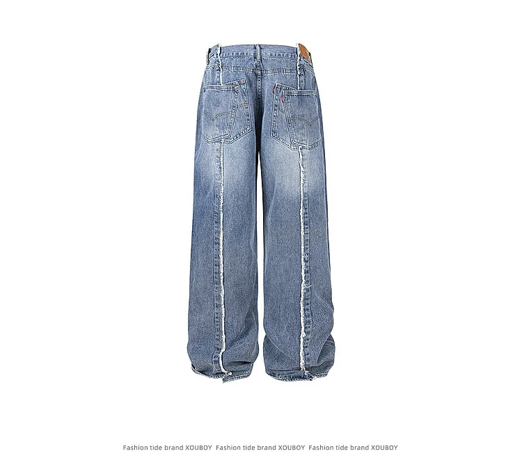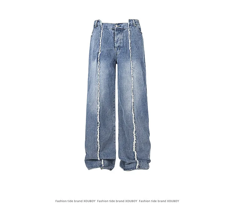 Men's Jeans Edge Splicing Design New American Style Washed Straight Wide Leg Line Trendy Male Casual Toursers Summer 9W1887