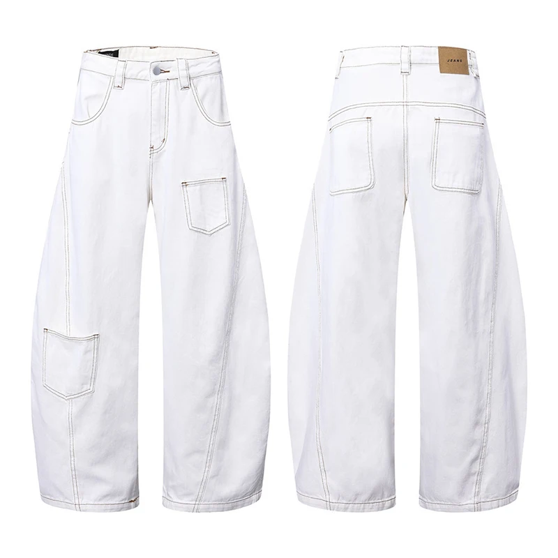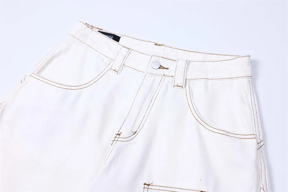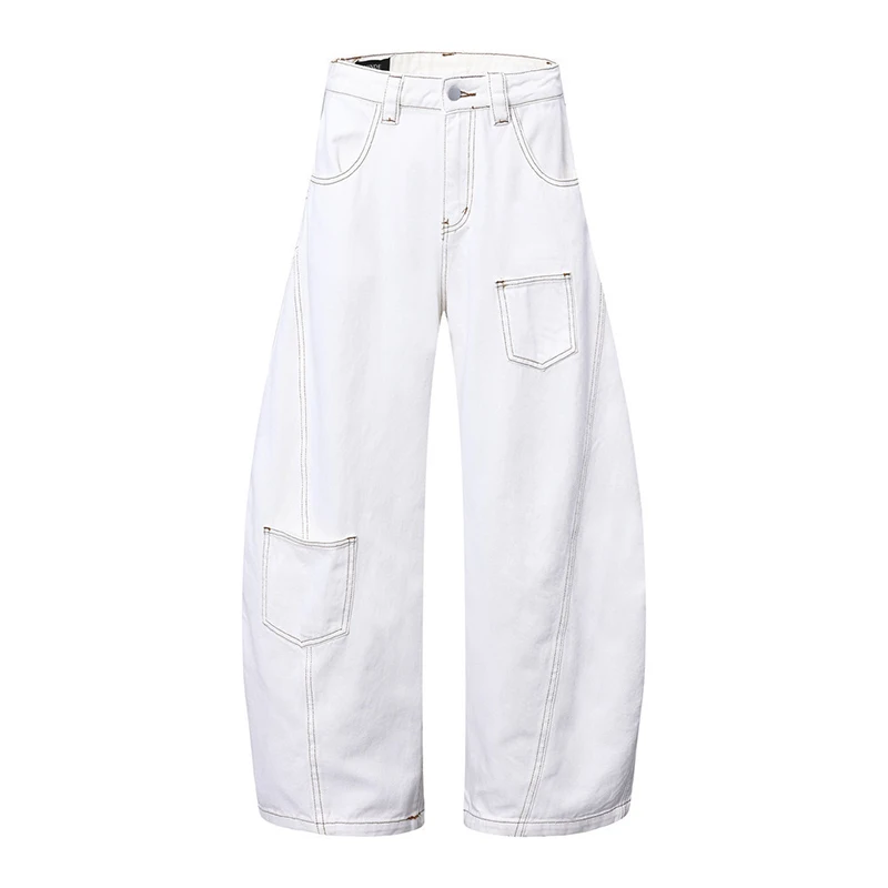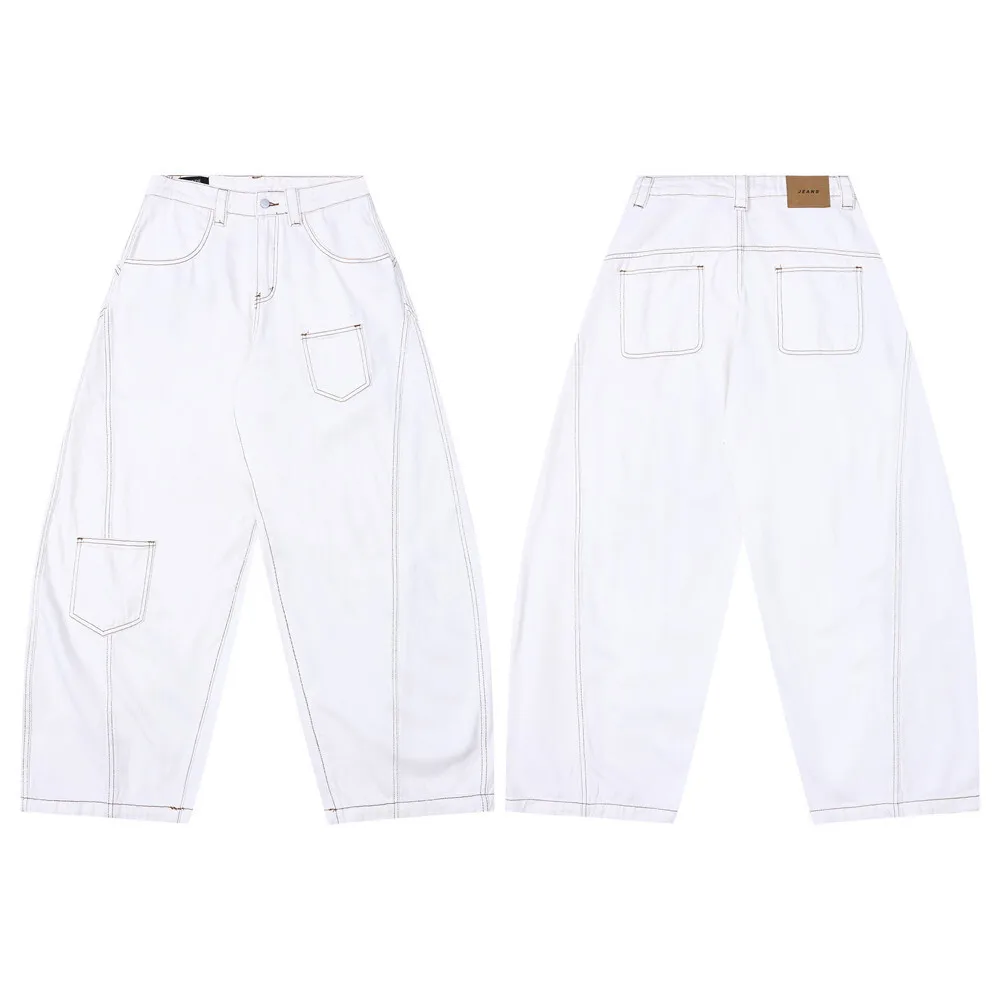 Men's Jeans Loose Wide Leg Curved Knife New American Personalized Line Design Irregular Splicing Trendy Male Bottoms 9W1892