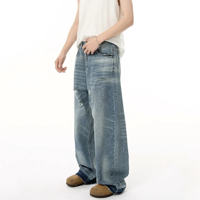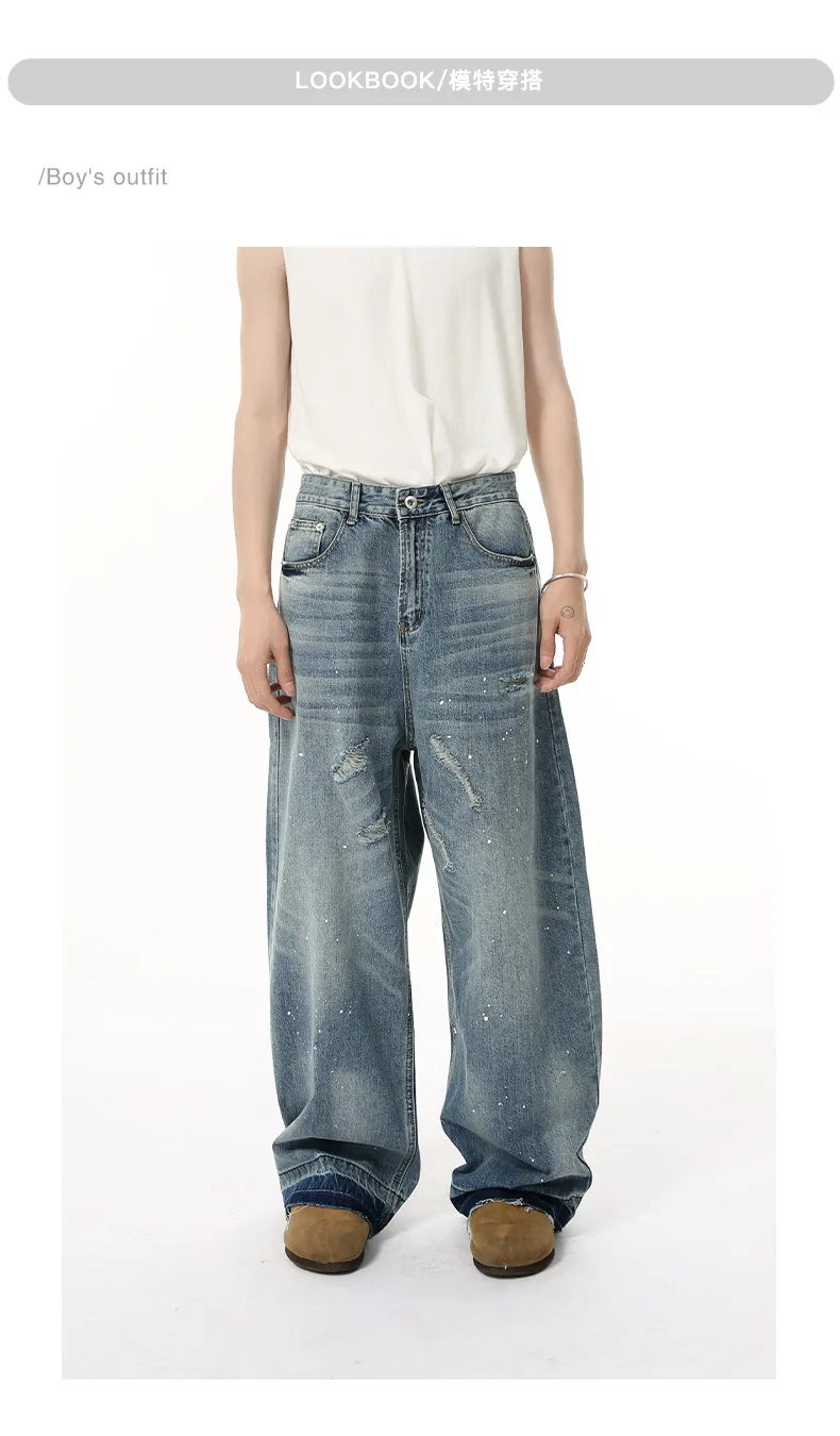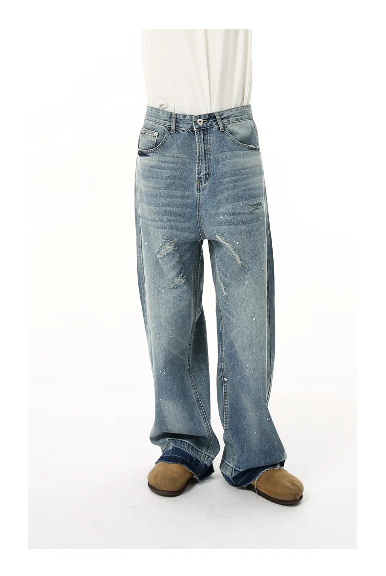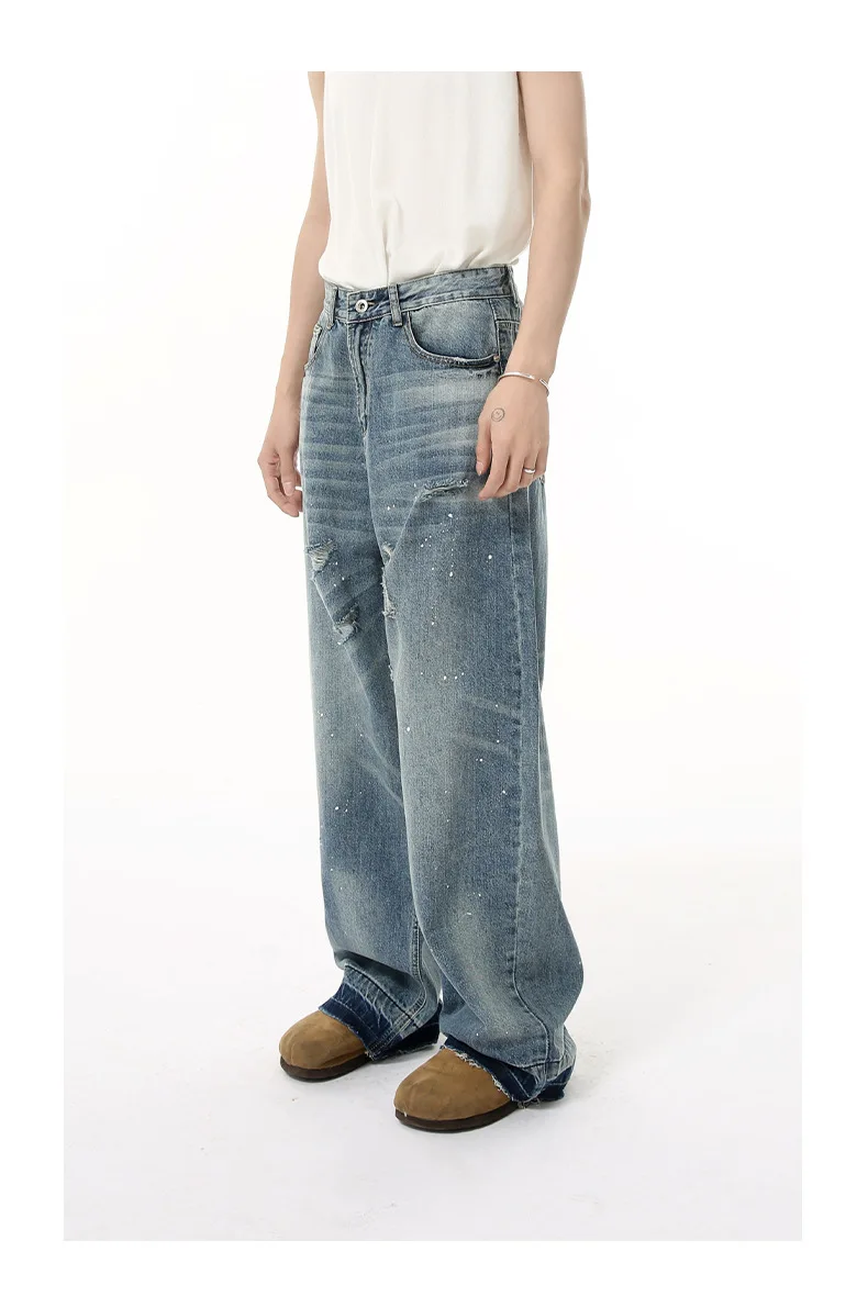 Men's Jeans New American Cat Whiskers Design Gradient Color Trendy Washed Patterns Worn-out Male Straight Bottoms 9W1833