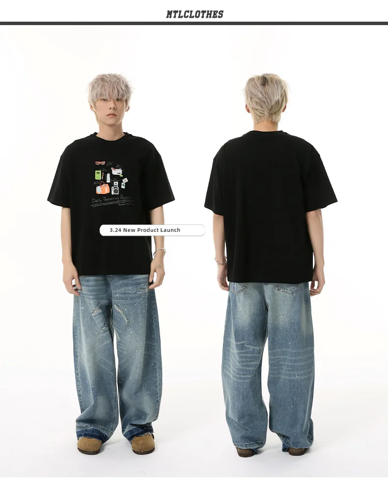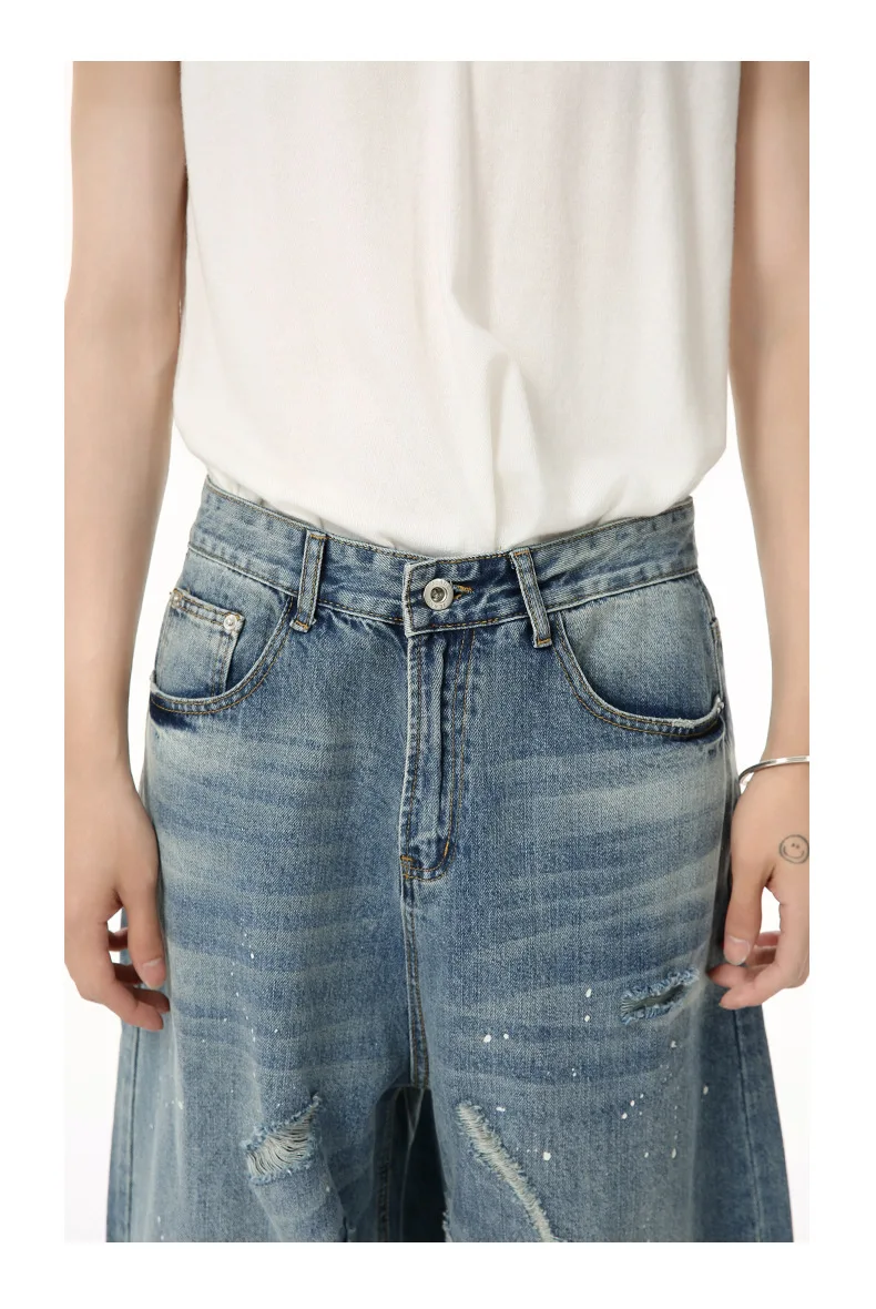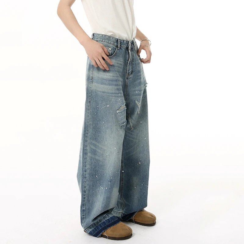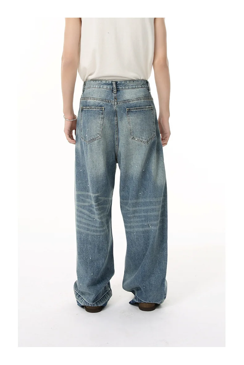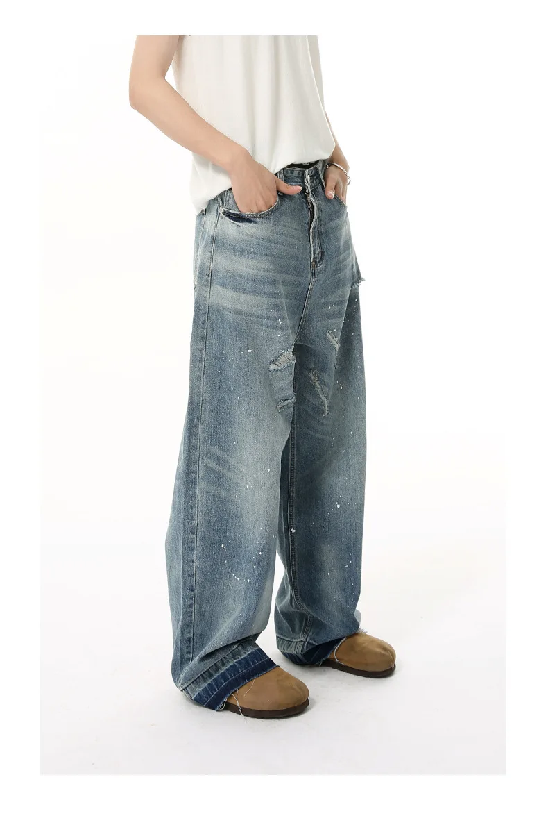 Men's Jeans New American Cat Whiskers Design Gradient Color Trendy Washed Patterns Worn-out Male Straight Bottoms 9W1833