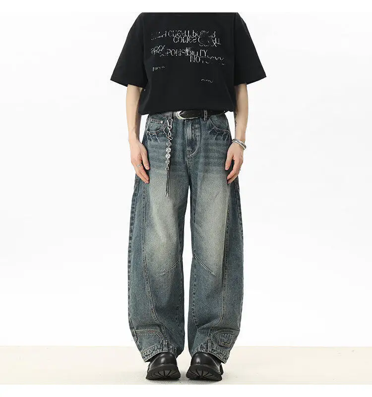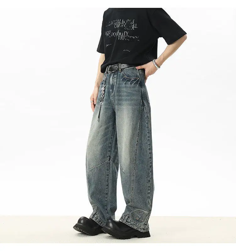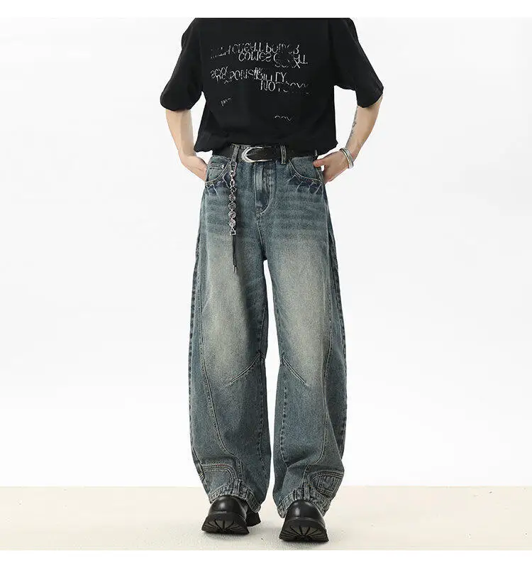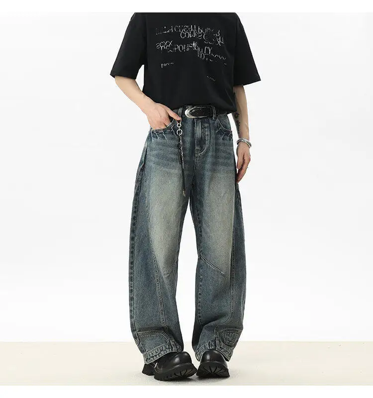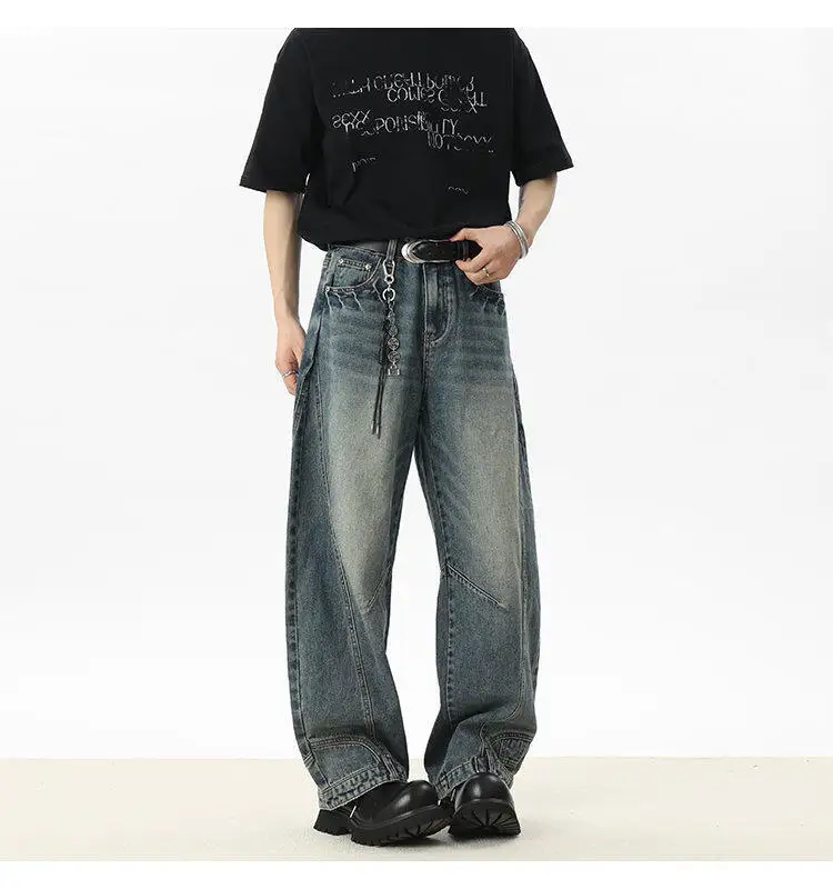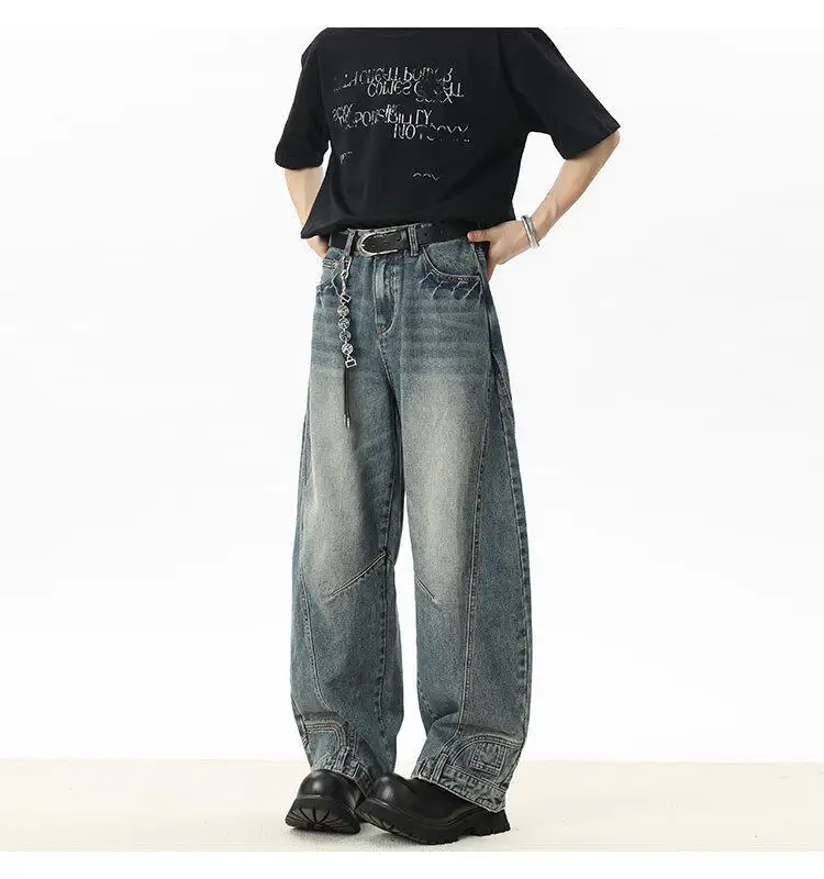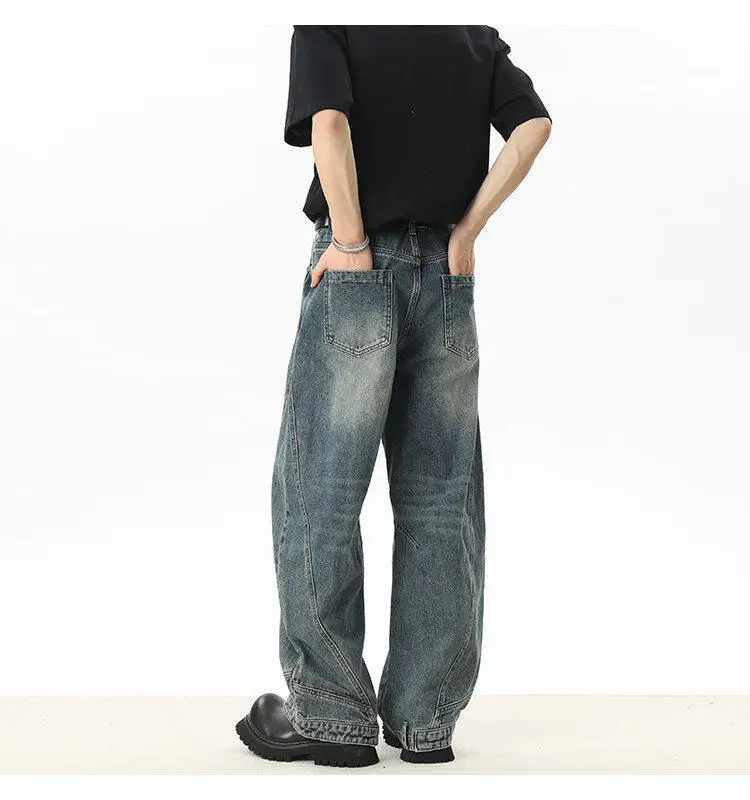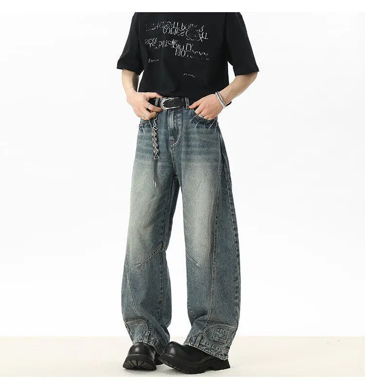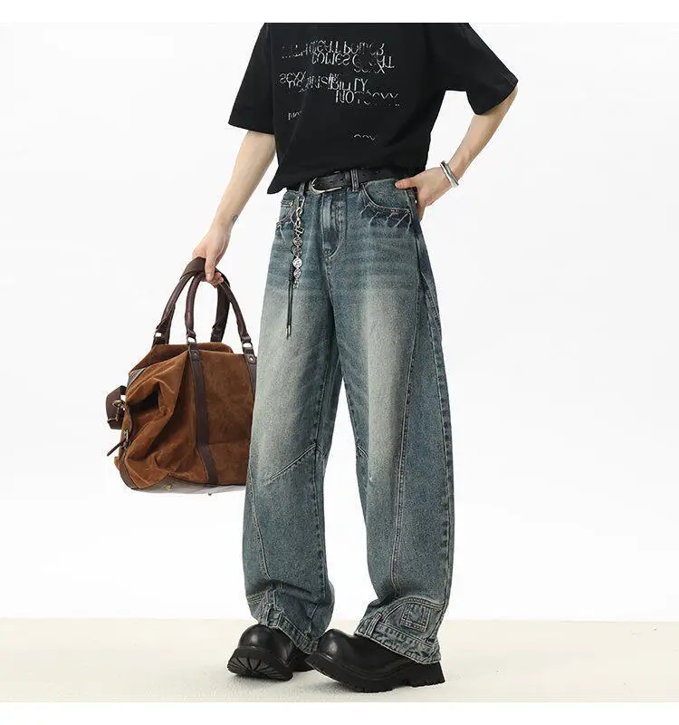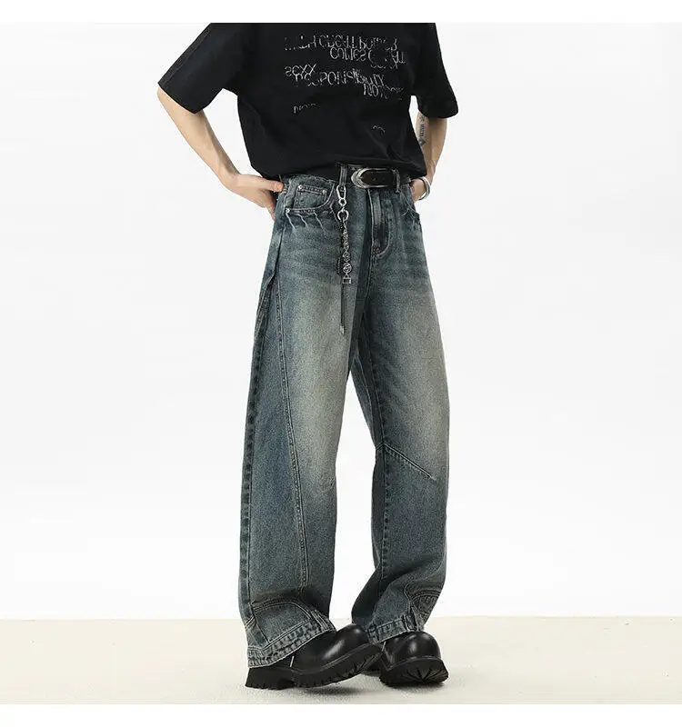 Men's Jeans New American Curved Knife Design Splicing Inverted Tide Male Toursers High Street Light Flare Bottoms 9W1534