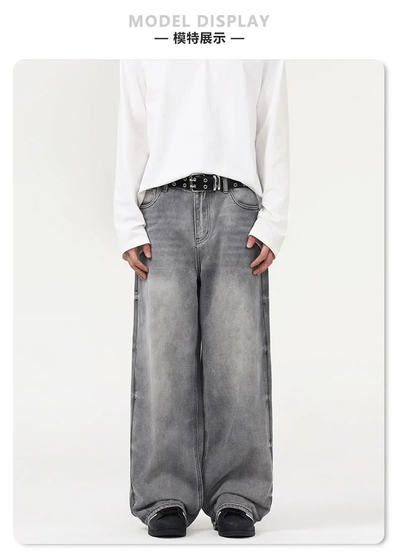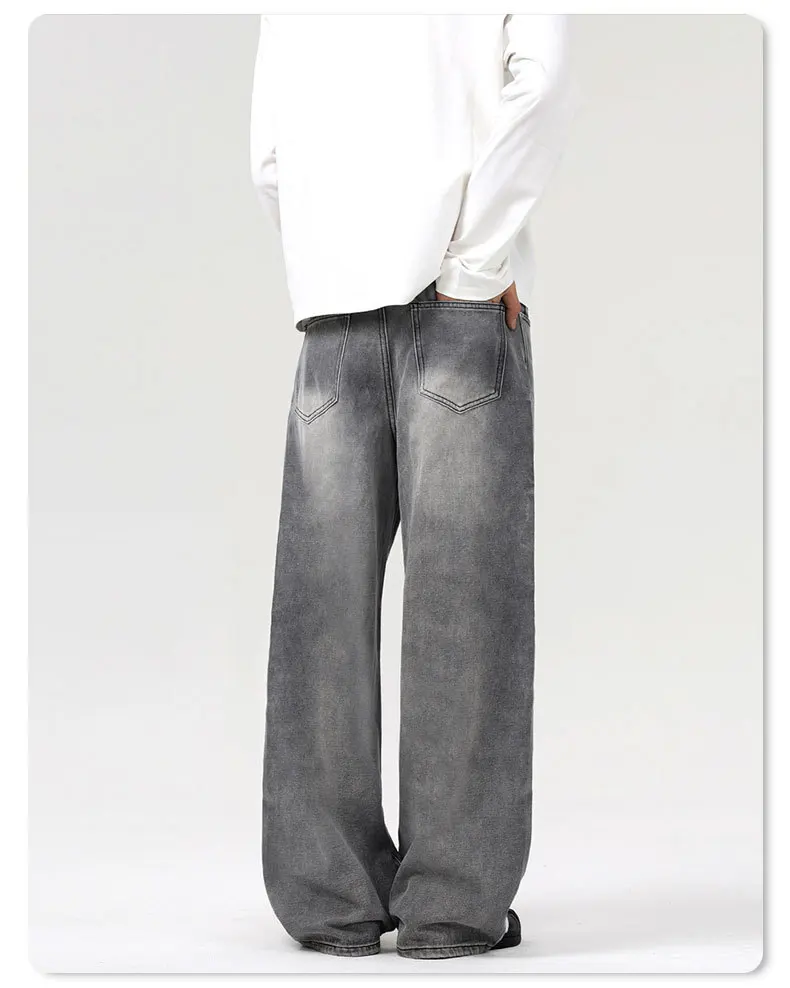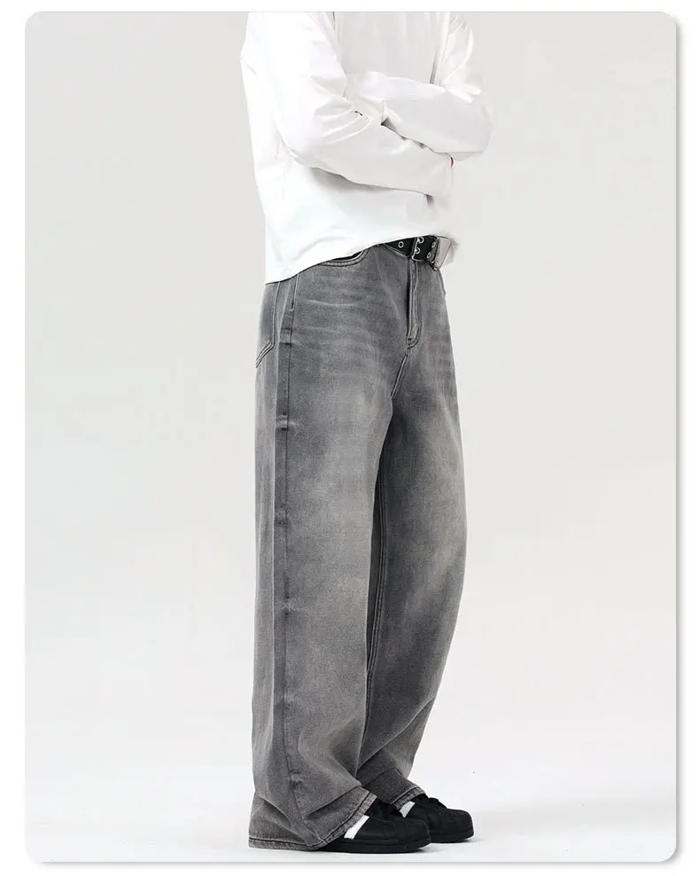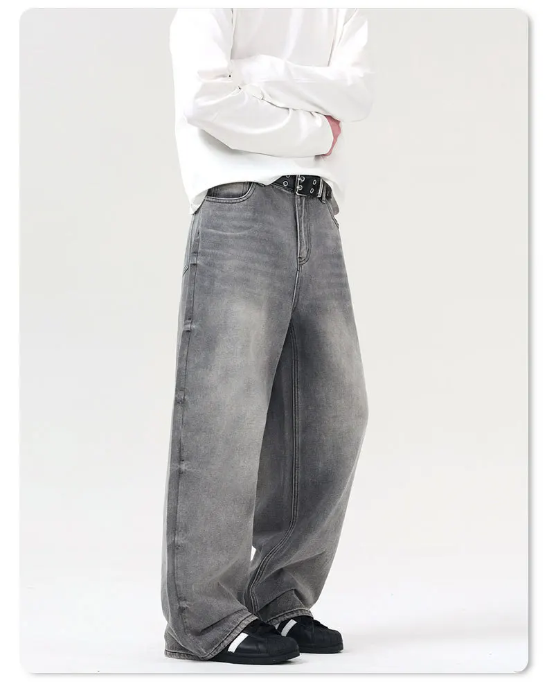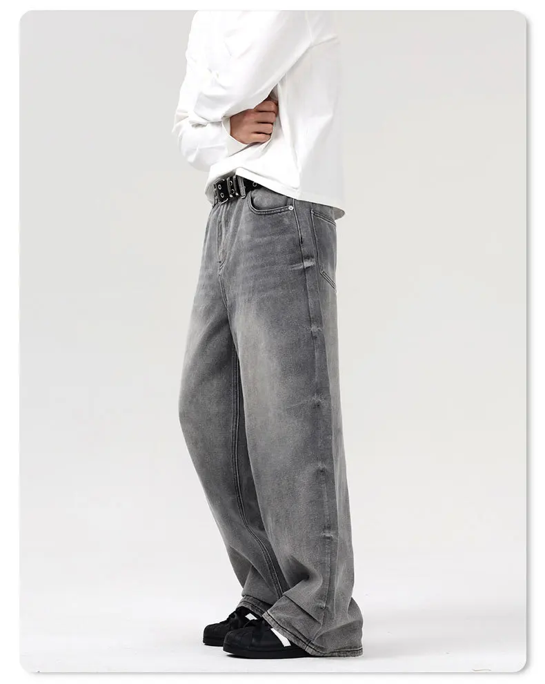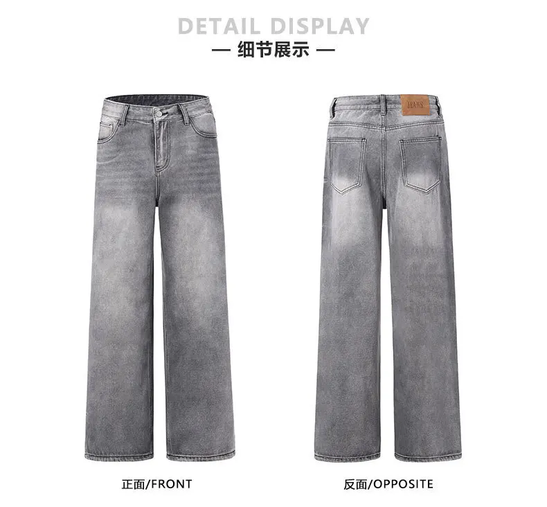 Men's Jeans New American Style Solid Color Loose Cleanfit Trendy Straight Wide Leg Male Denim Trousers Summer 2025 9W1308