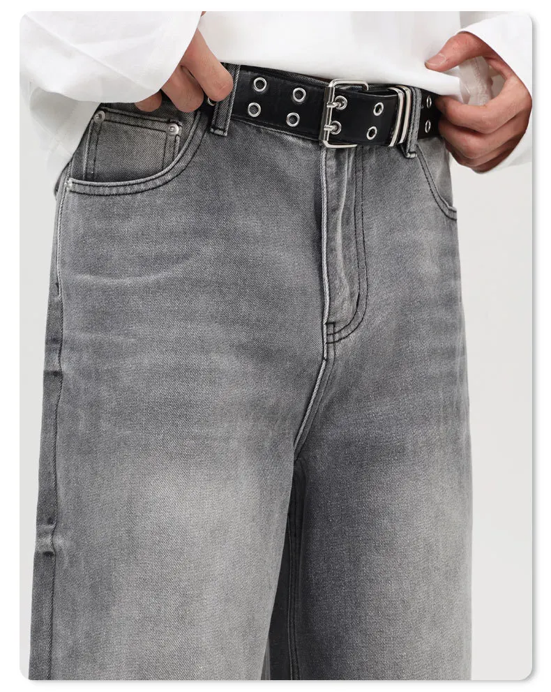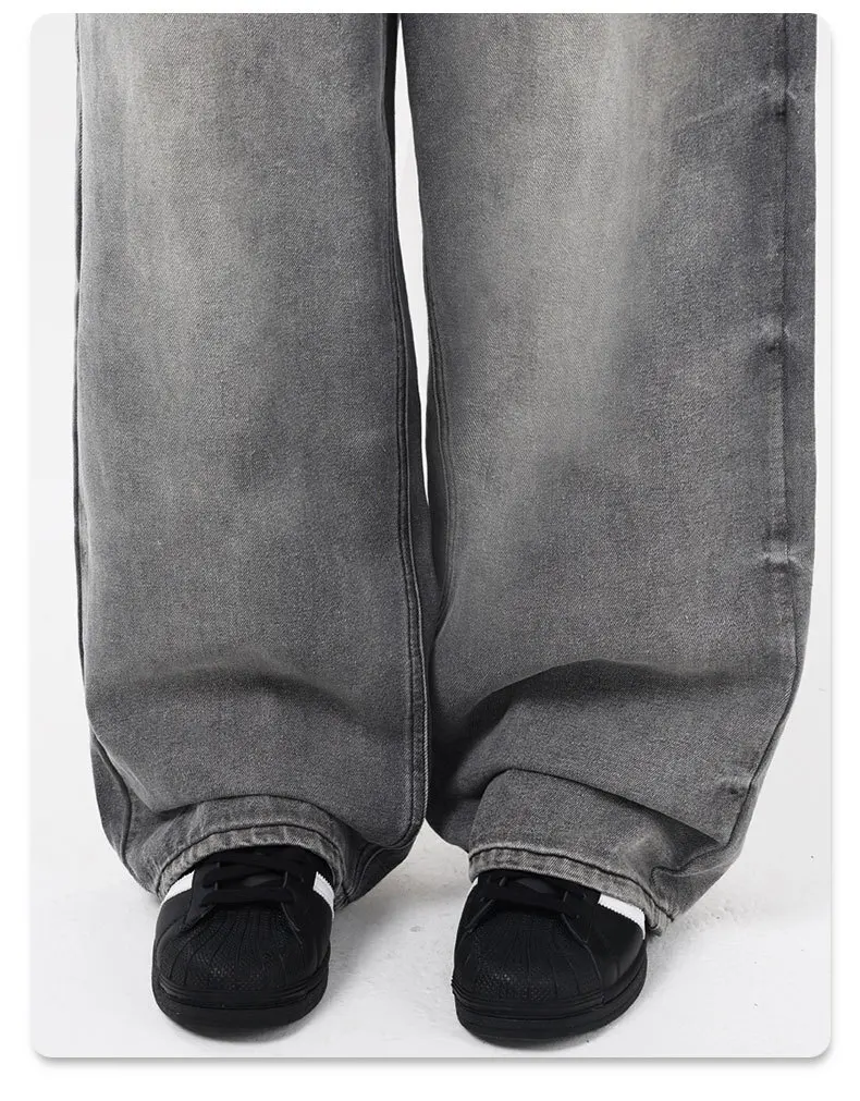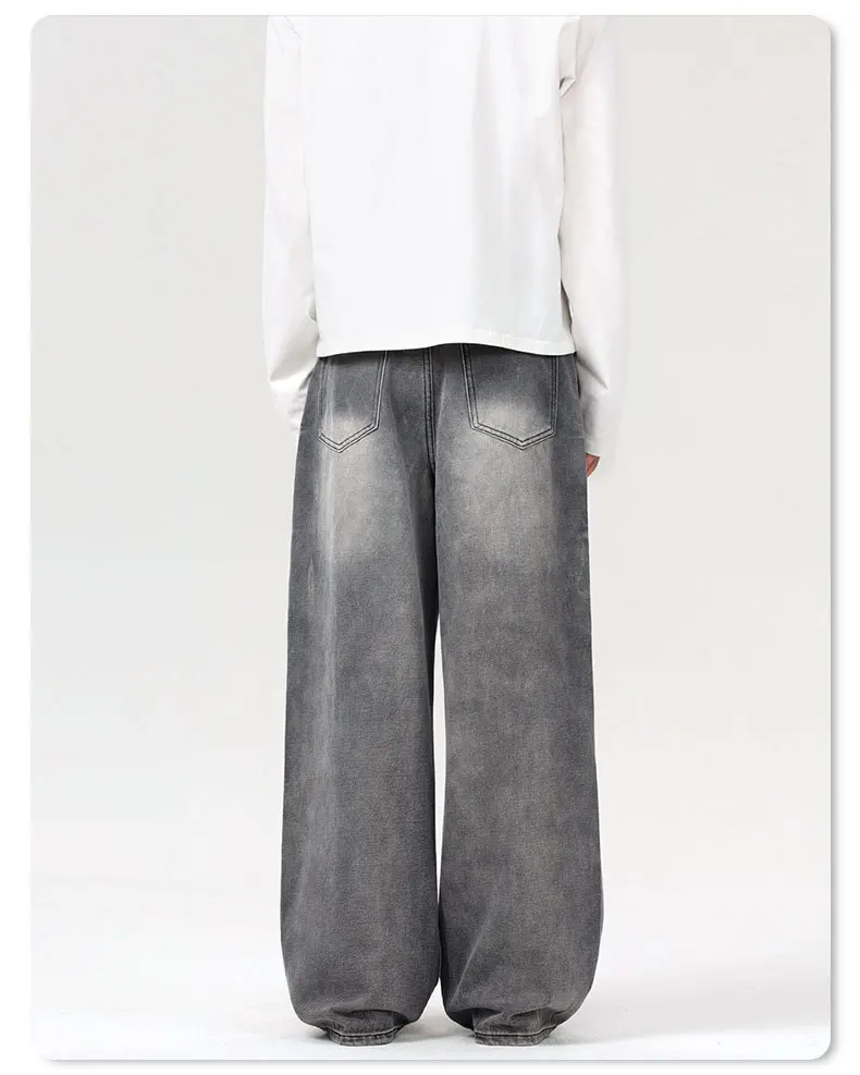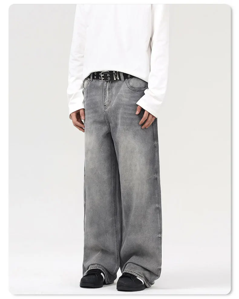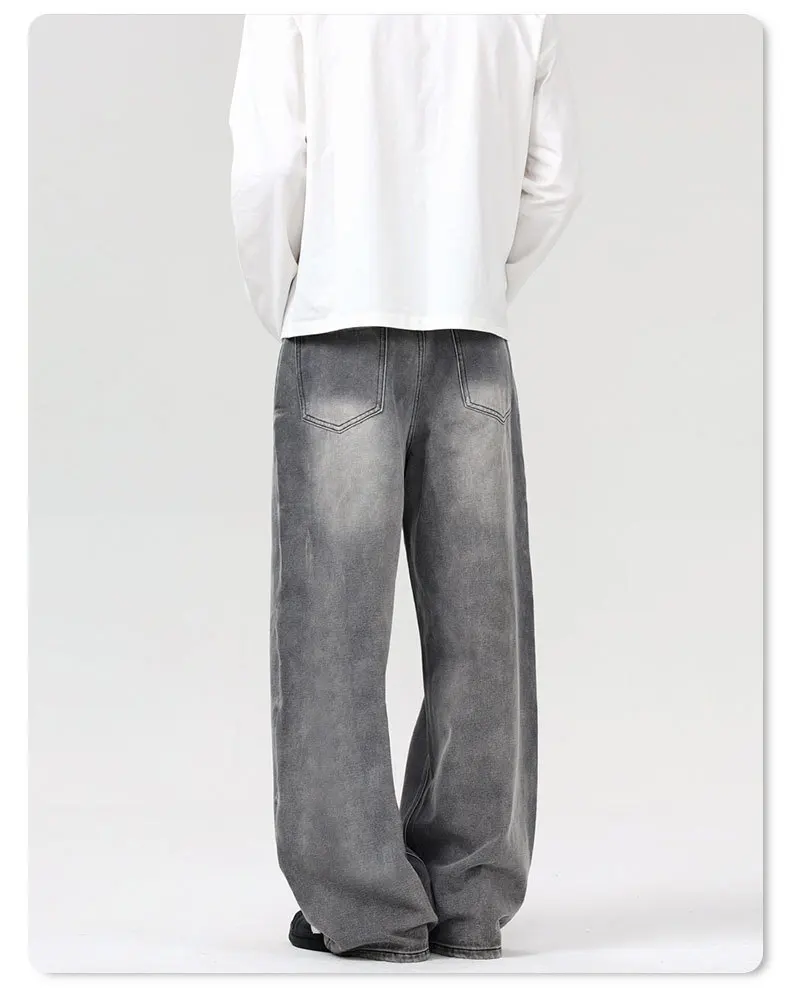 Men's Jeans New American Style Solid Color Loose Cleanfit Trendy Straight Wide Leg Male Denim Trousers Summer 2025 9W1308