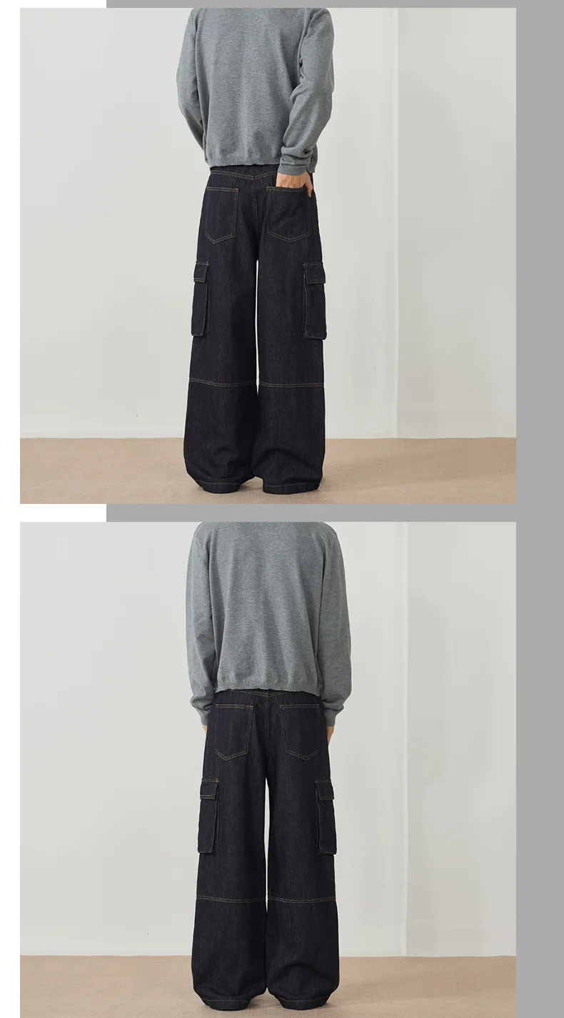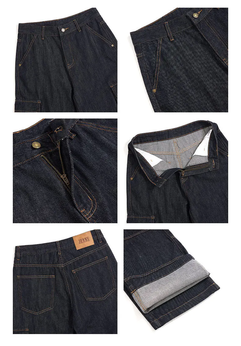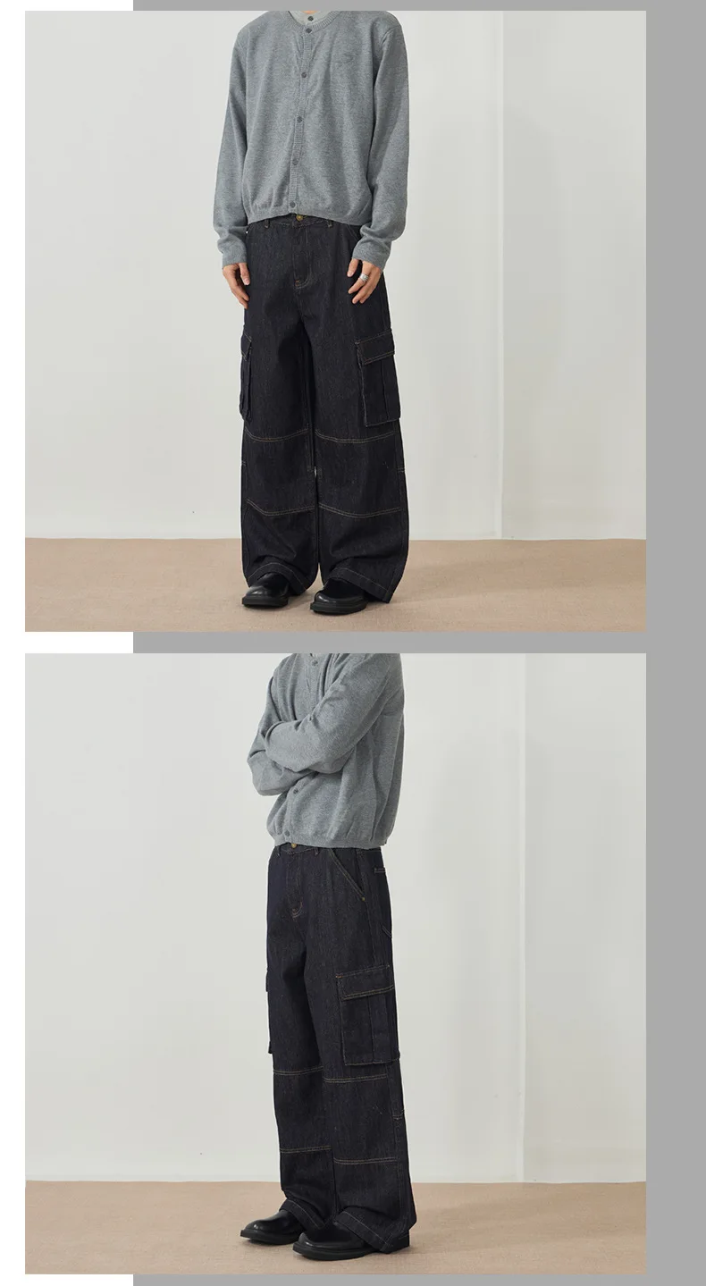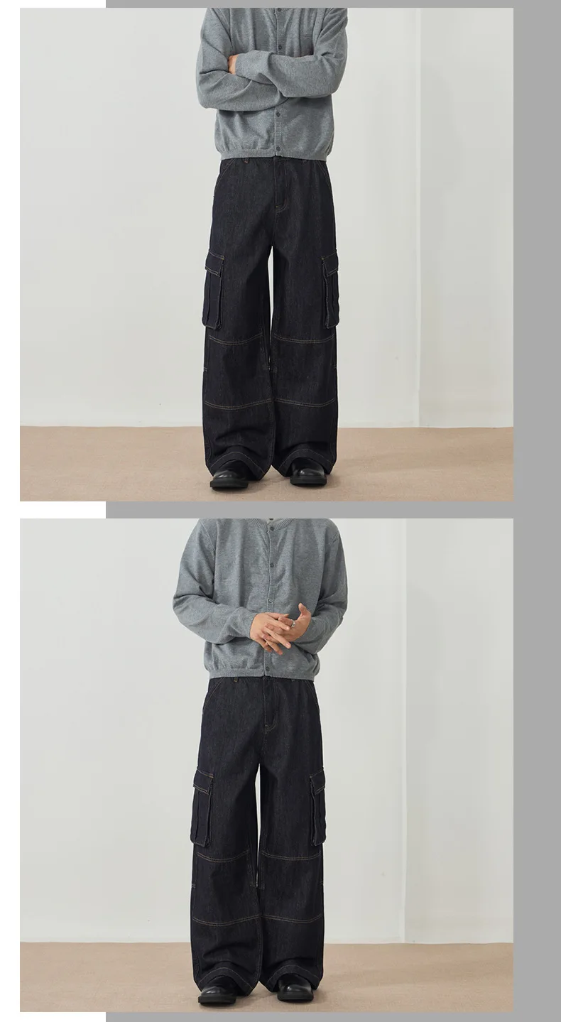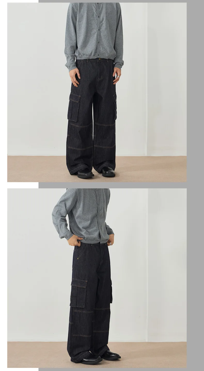 Men's Jeans New American Style Straight Leg Trendy Multi Pockets Line Design Splicing Male Summer Loose Bottoms 9W1900