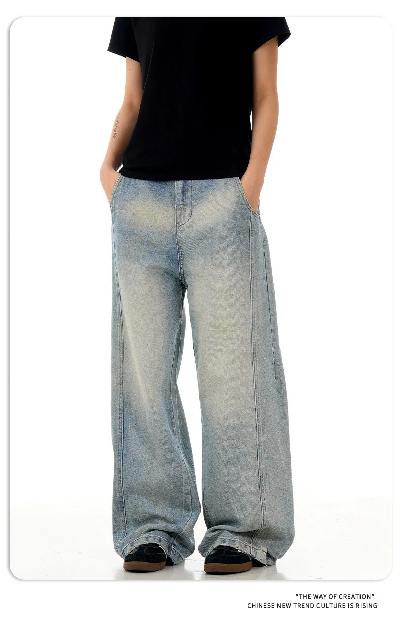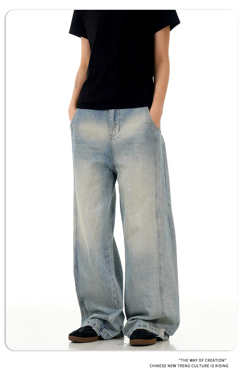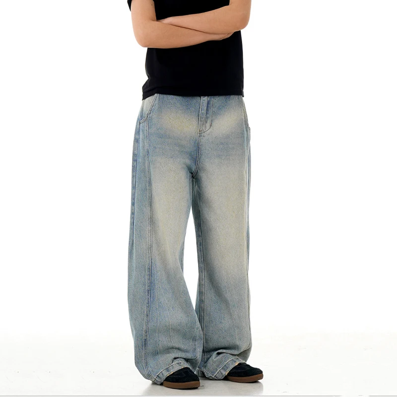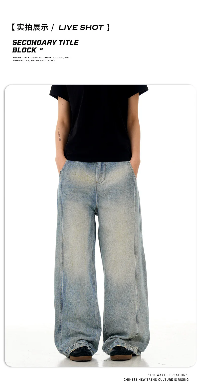 Men's Jeans New American Style Washed Loose Pants Solid Color Trendy Simple Male Simple Summer Trousers 2025 9W1735