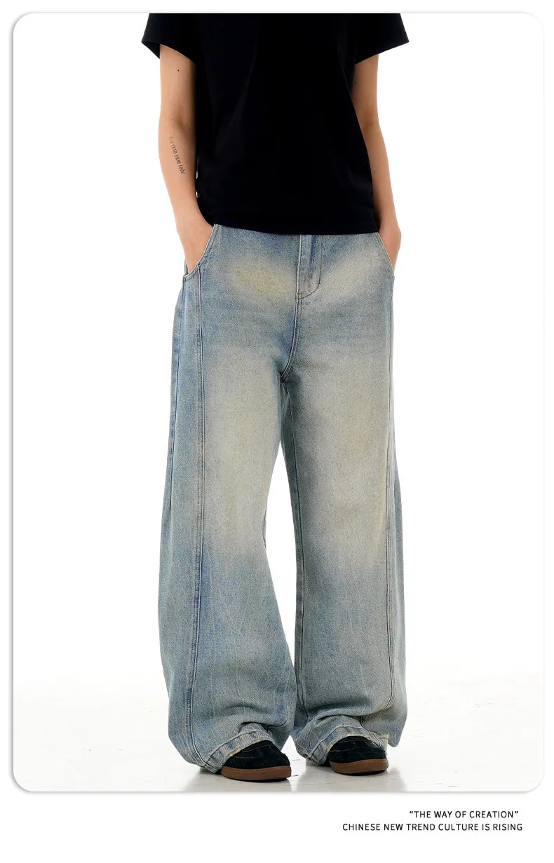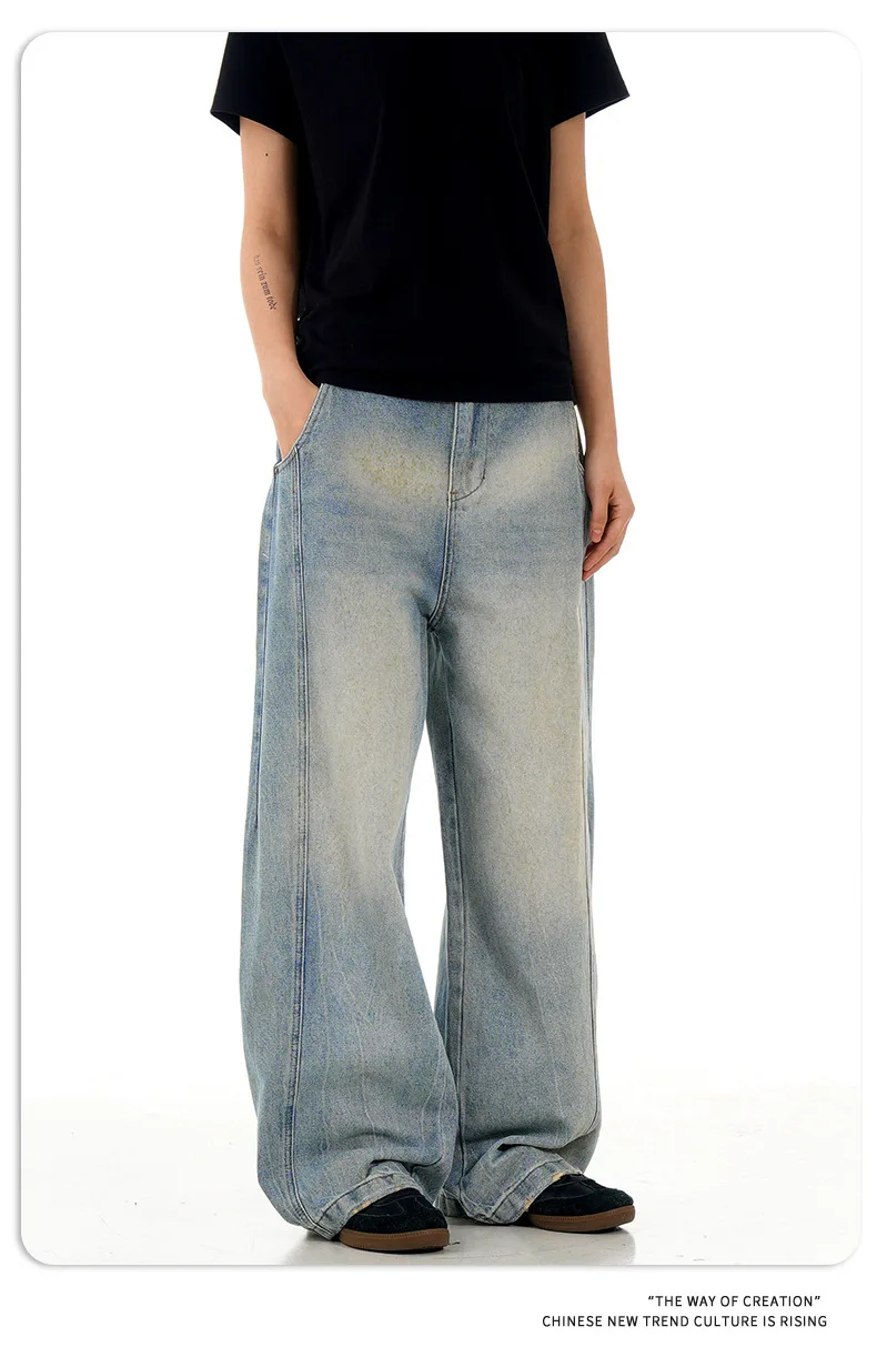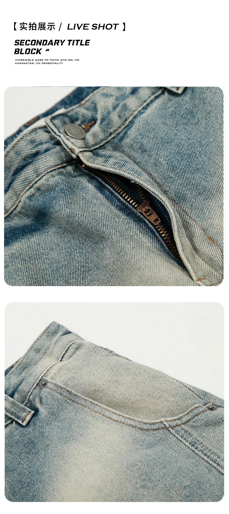 Men's Jeans New American Style Washed Loose Pants Solid Color Trendy Simple Male Simple Summer Trousers 2025 9W1735