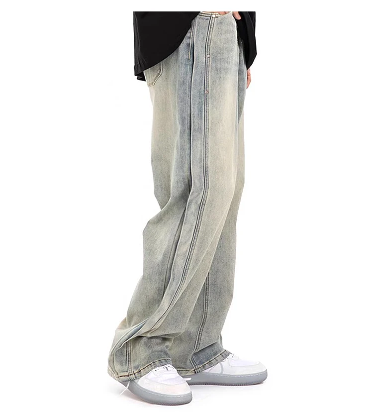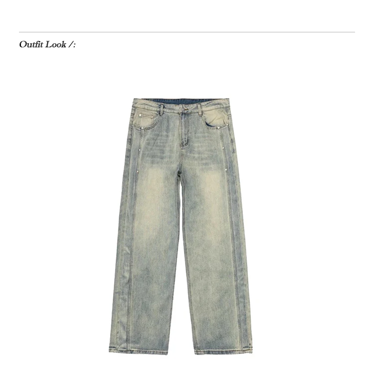 Men's Jeans New American Summer High Street Washed Denim Trousers Male Straight Loose Patchwork Casual Design 9W1477