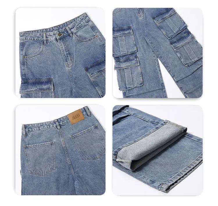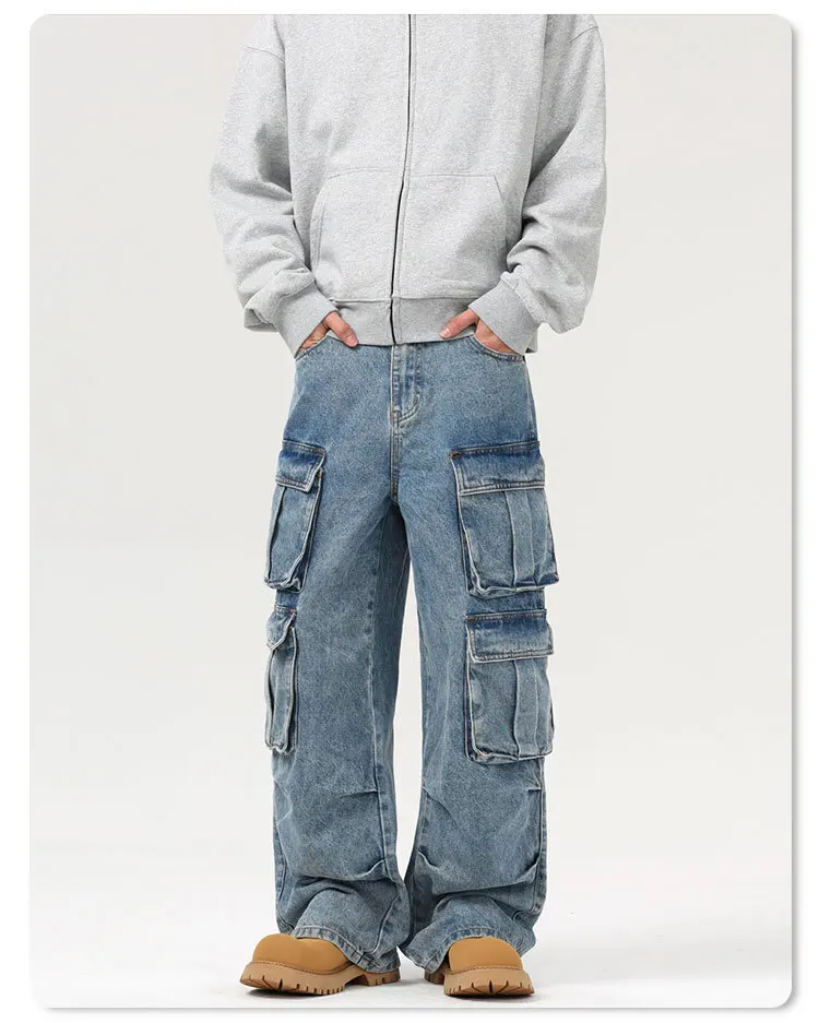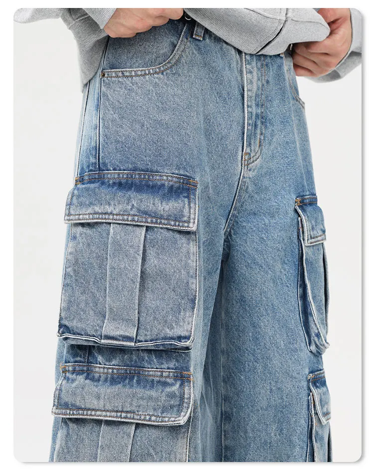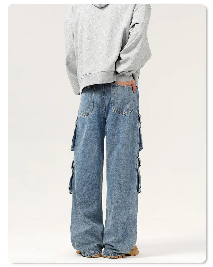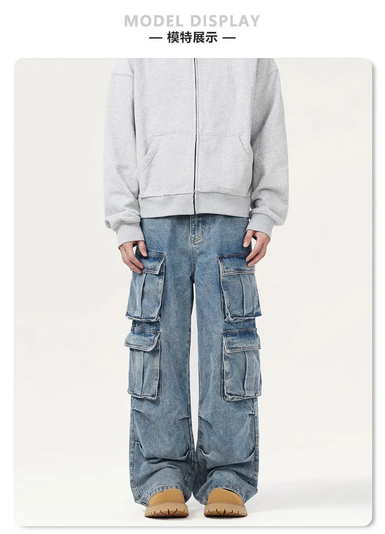 Men's Jeans New American Washed Multi Pockets Denim Pants Hign Street Stylish Casual Straight Leg Design Spring 9W1556