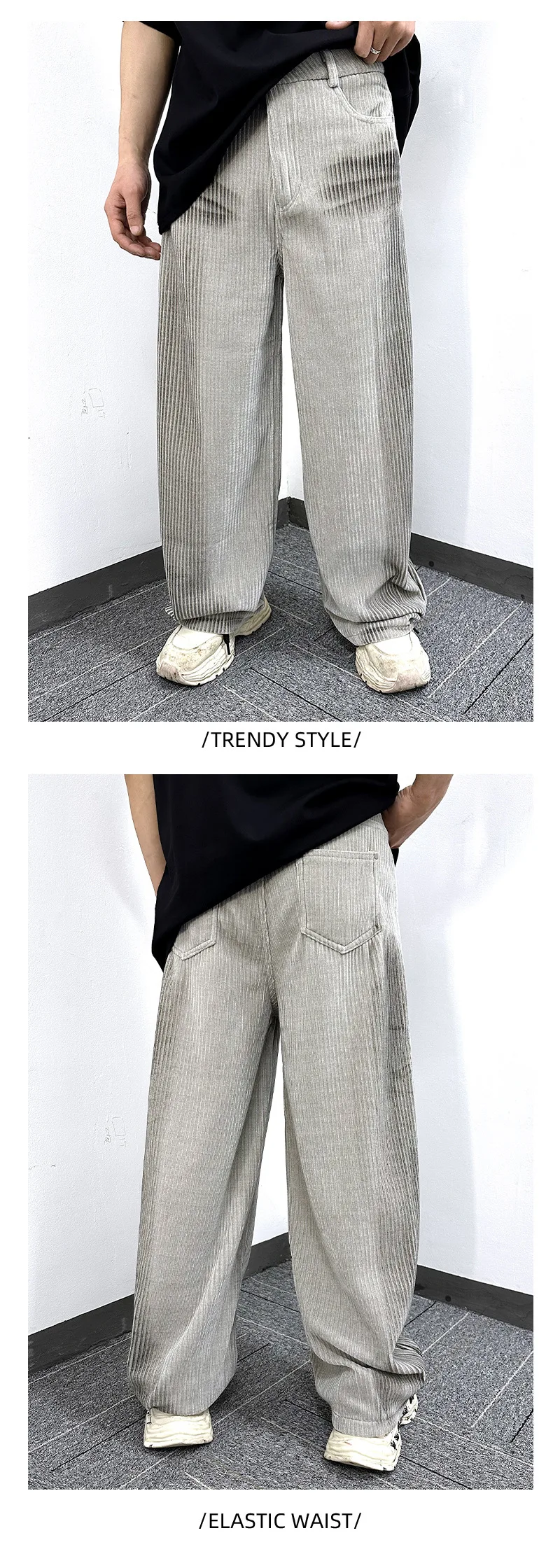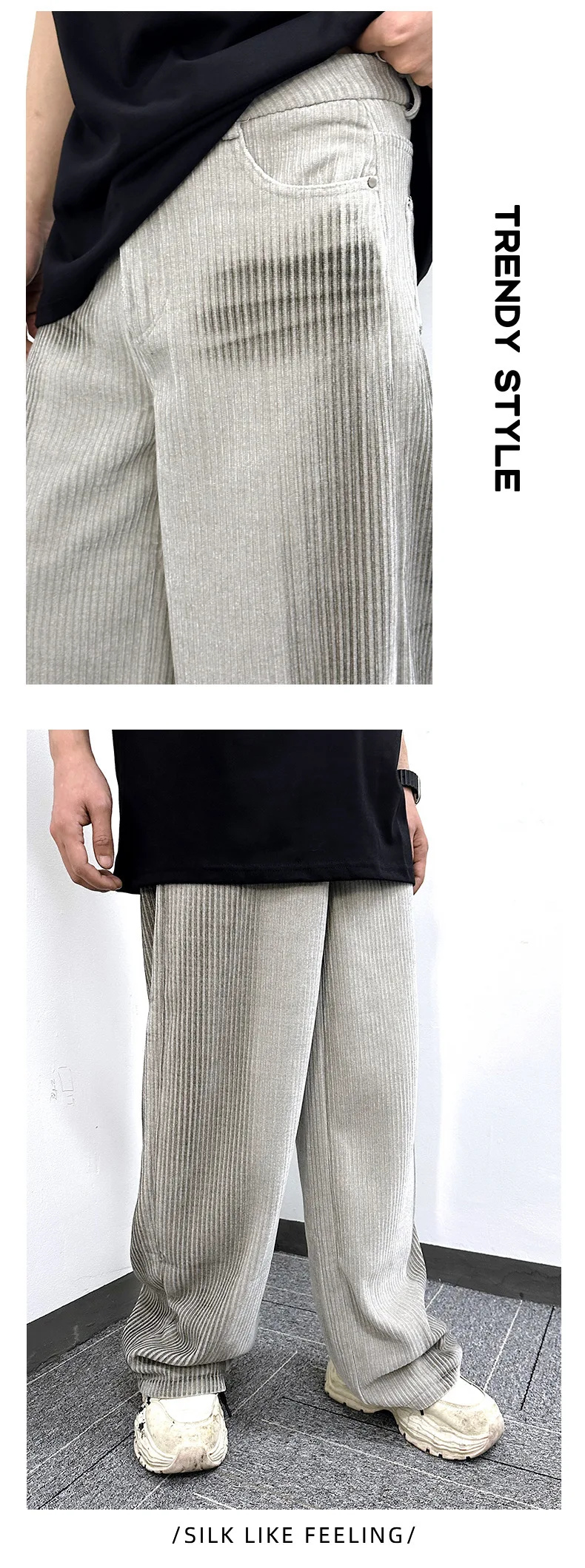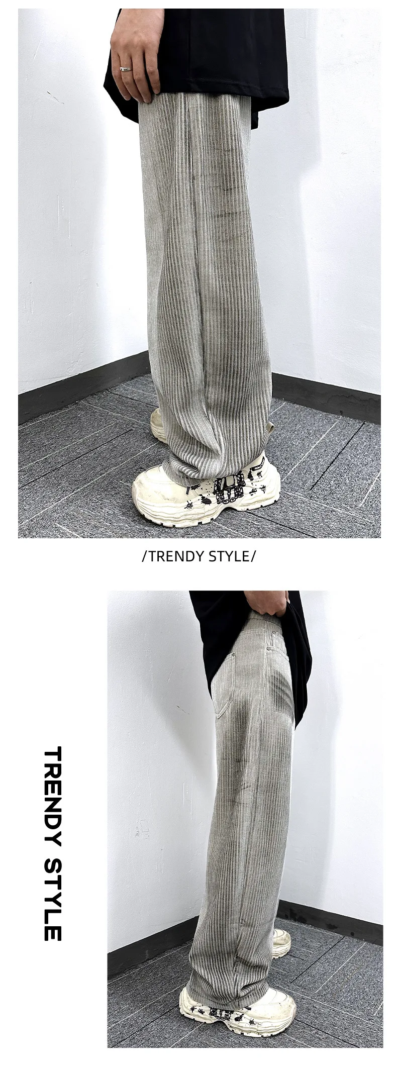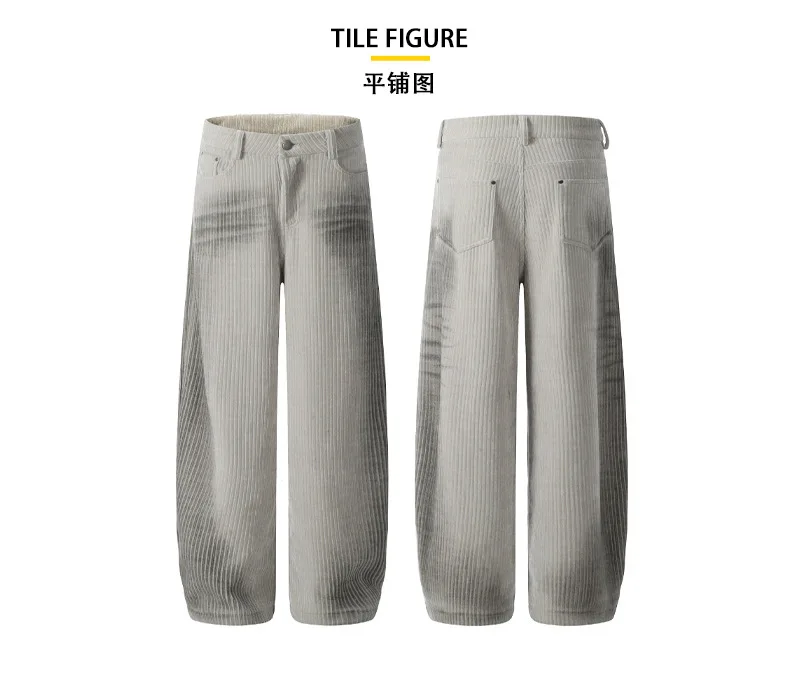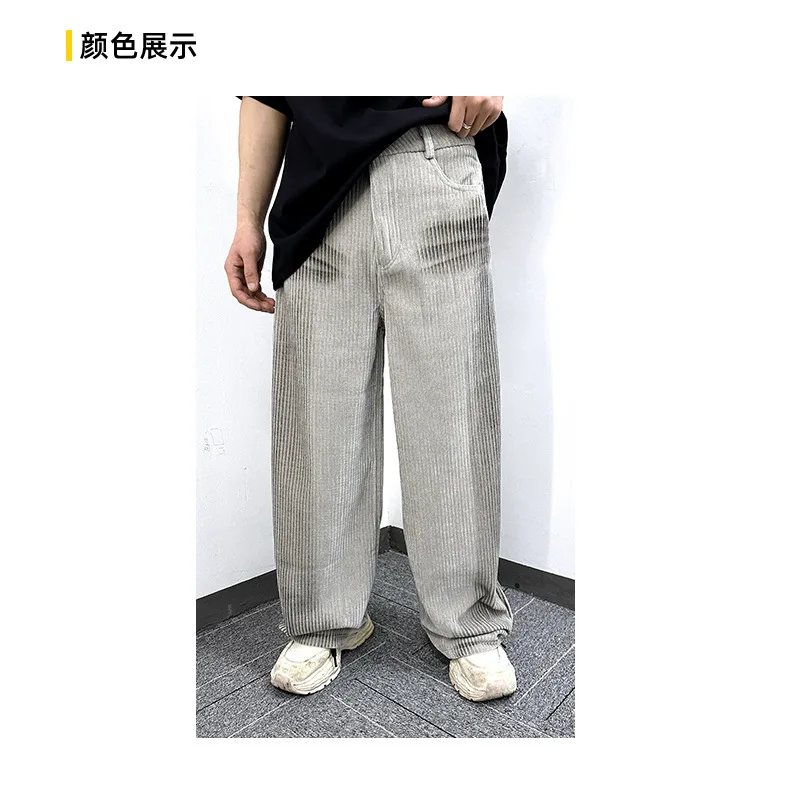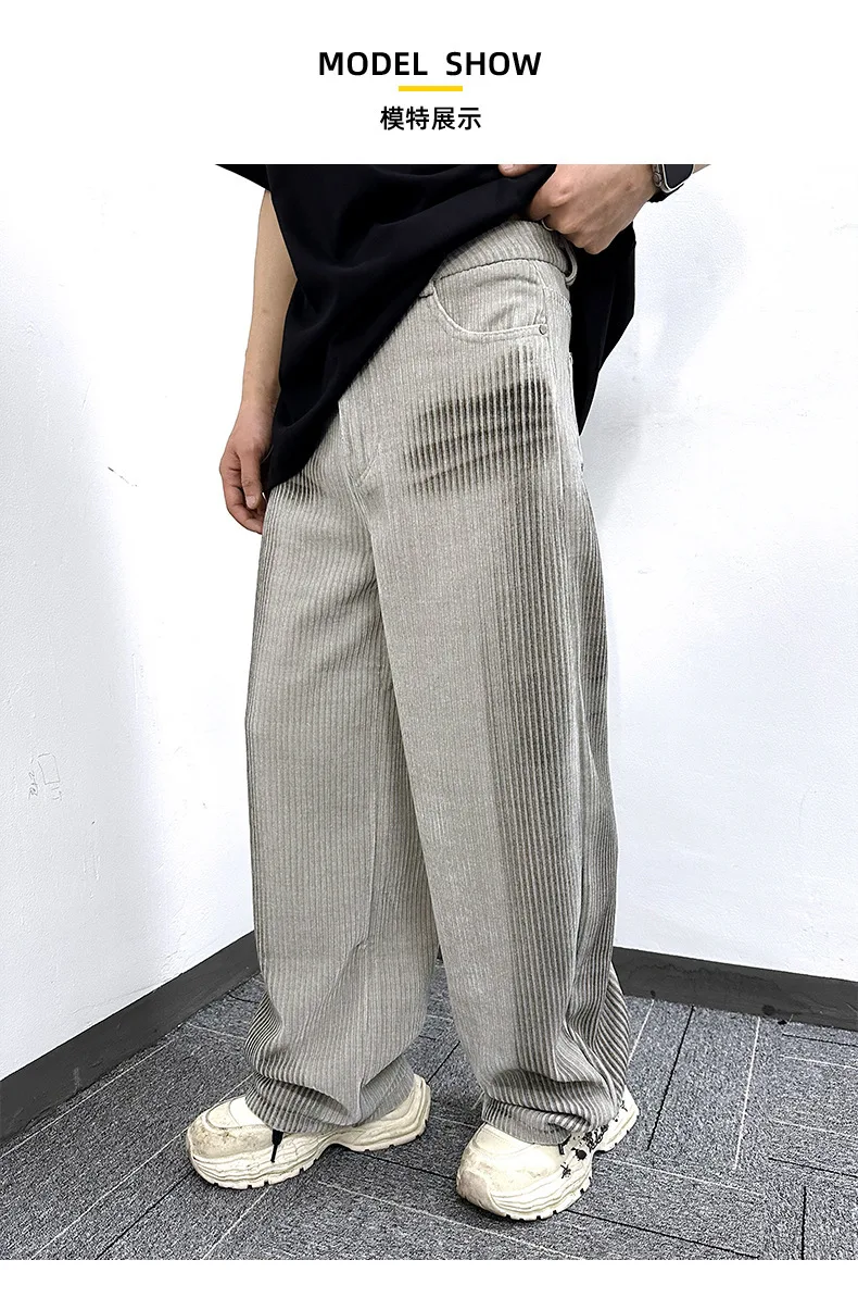 Men's Jeans New Ameriican Simple Style Stripe Distressed Wide Leg Loose Denim Pants Trendy Casual Male Bottoms 9W1775