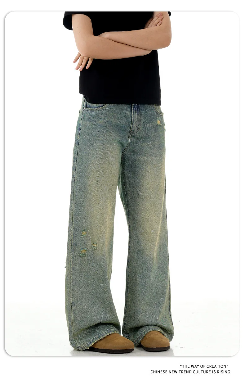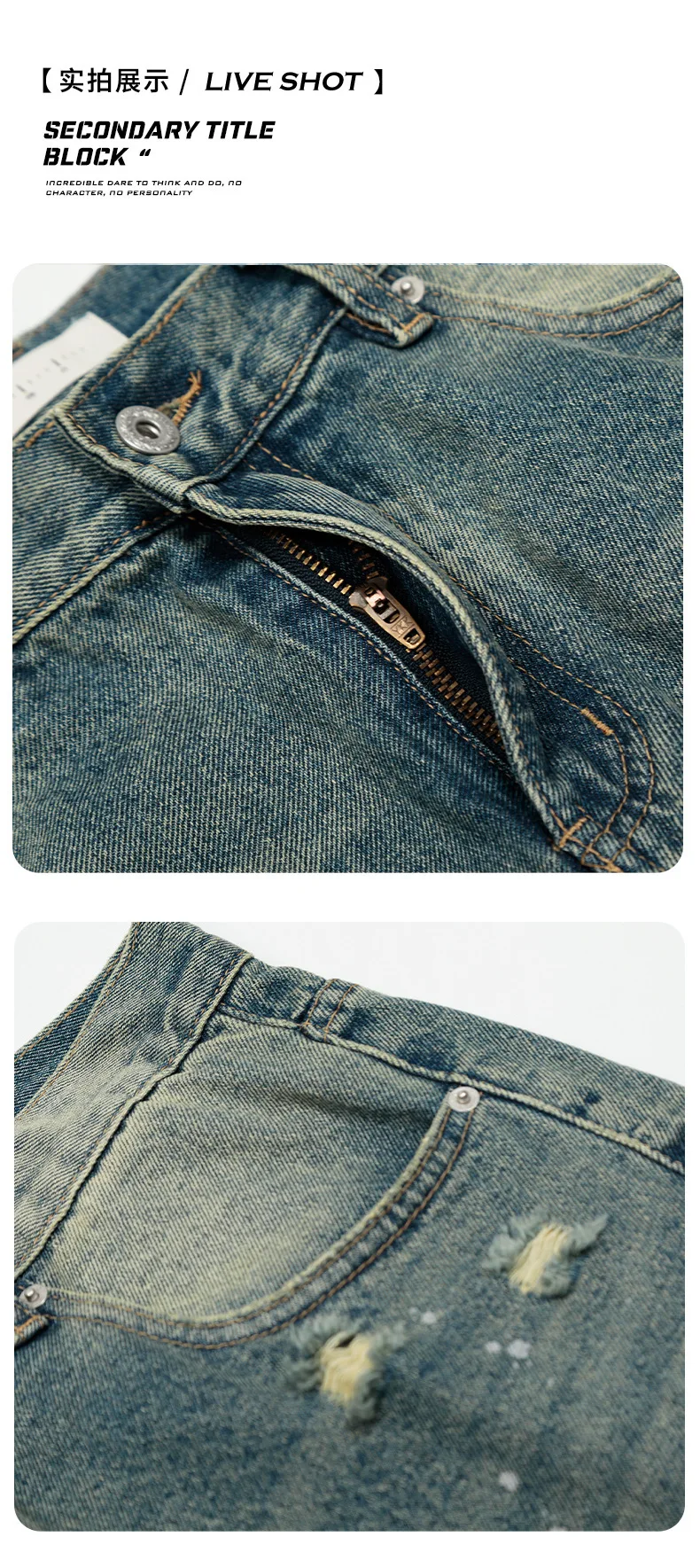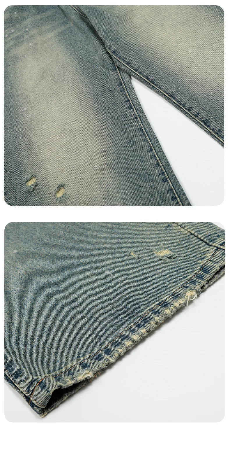 Men's Jeans New High Street American Style Cat Whisker Stylish Distressed Denim Pants Straight Leg Male Trousers 9W1720