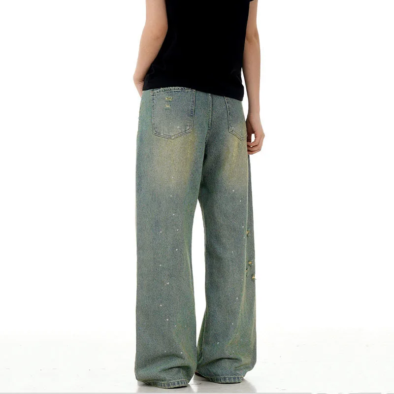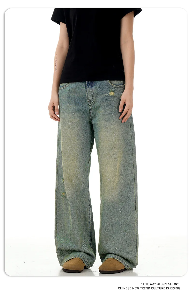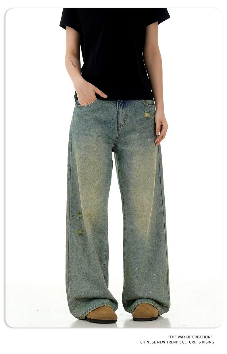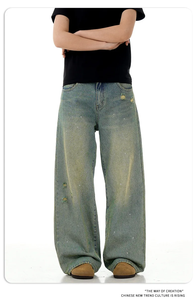 Men's Jeans New High Street American Style Cat Whisker Stylish Distressed Denim Pants Straight Leg Male Trousers 9W1720