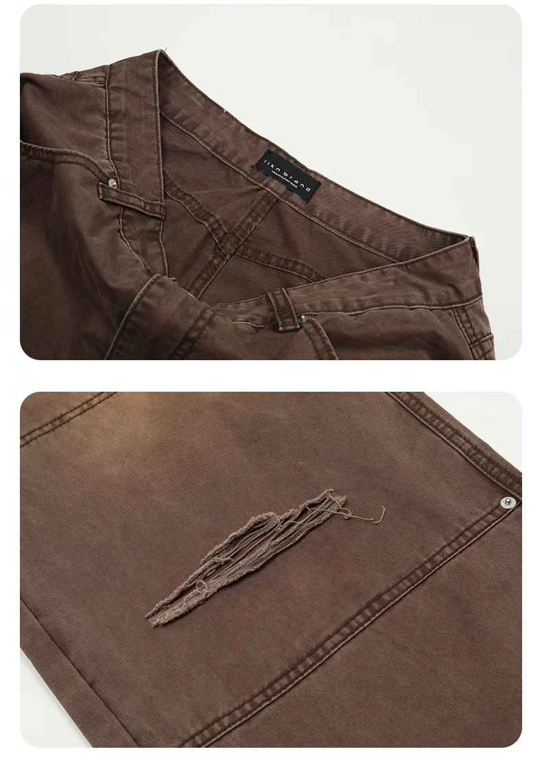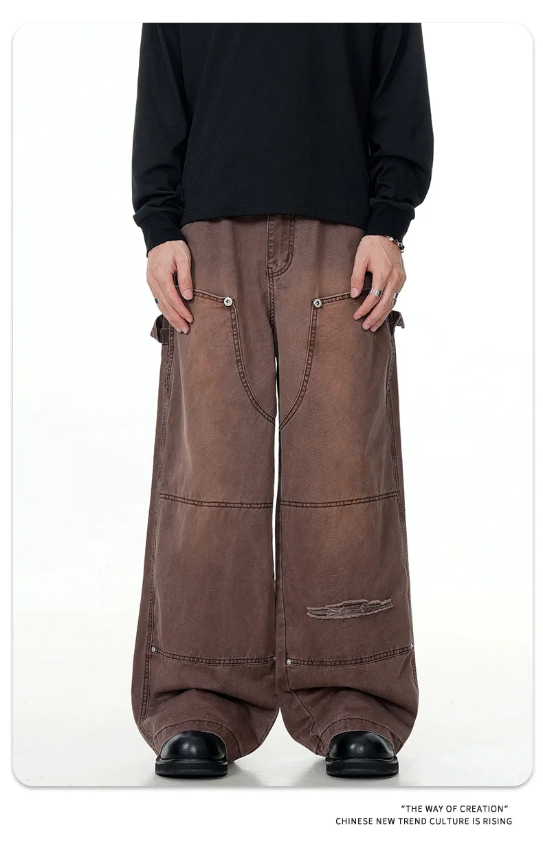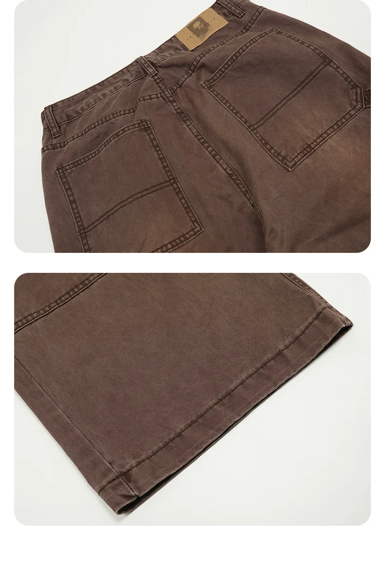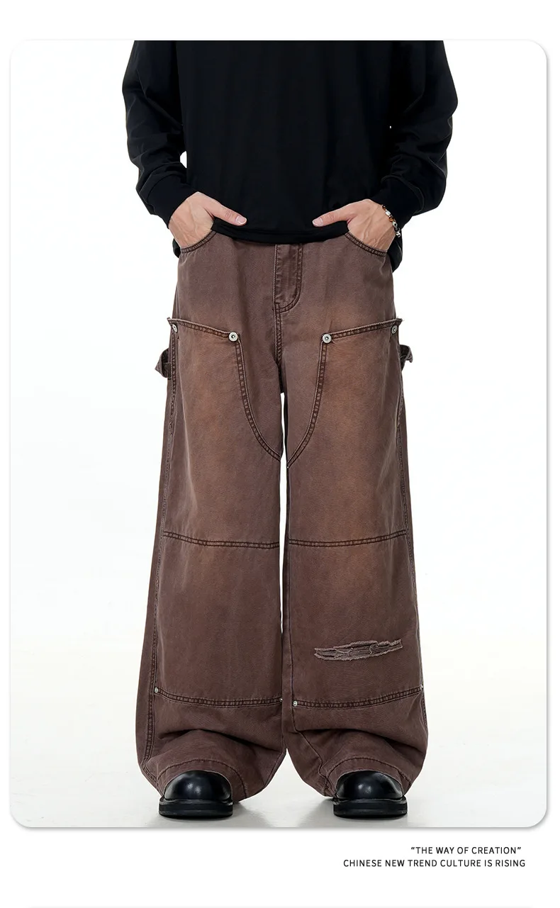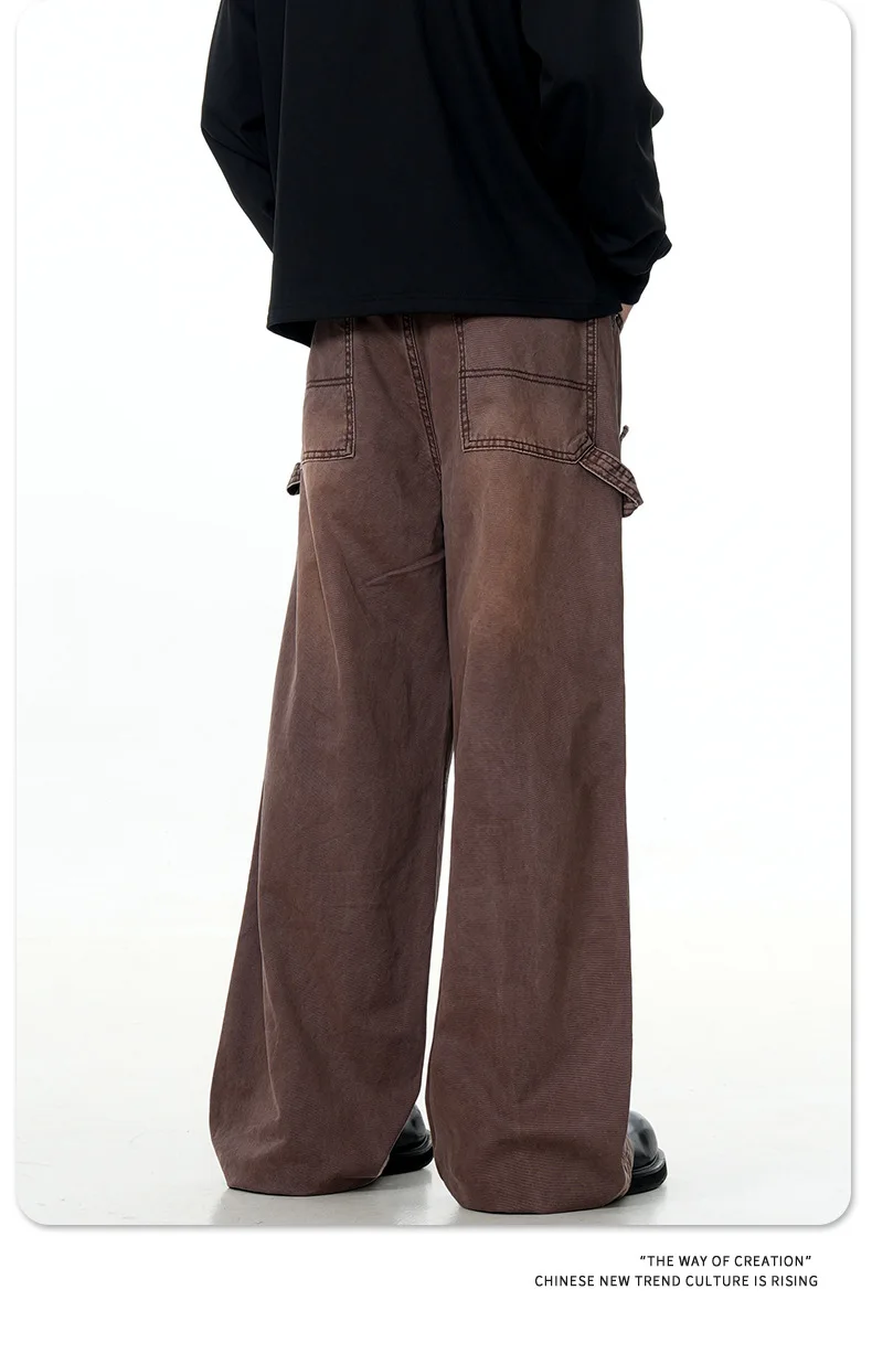 11KN kiểu Mỹ cổ điển mùa thu đông đinh tán nước rửa làm quần jean công nhân cũ rộng thùng thình lau nhà quần dài qua biên giới