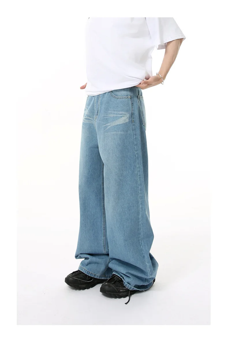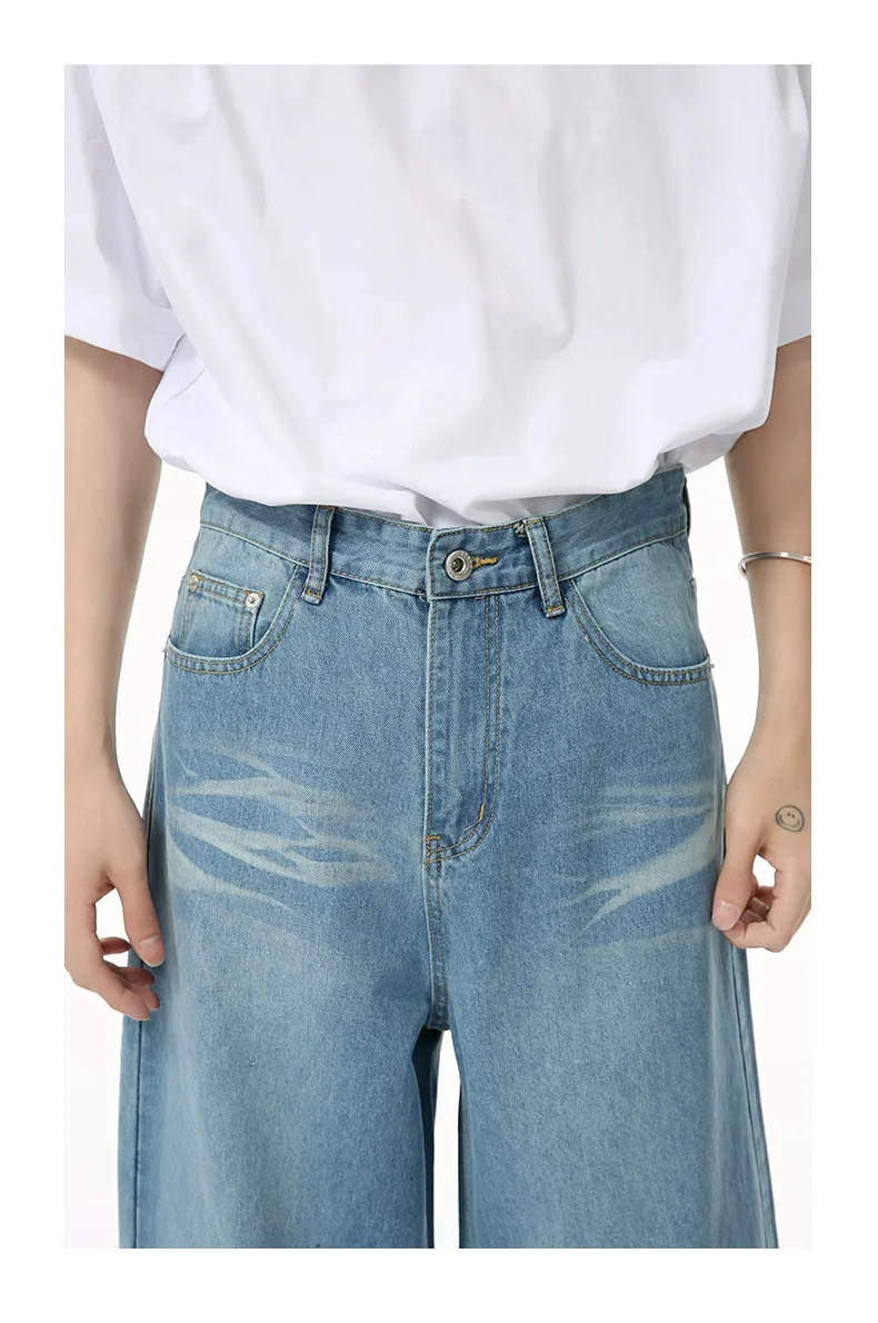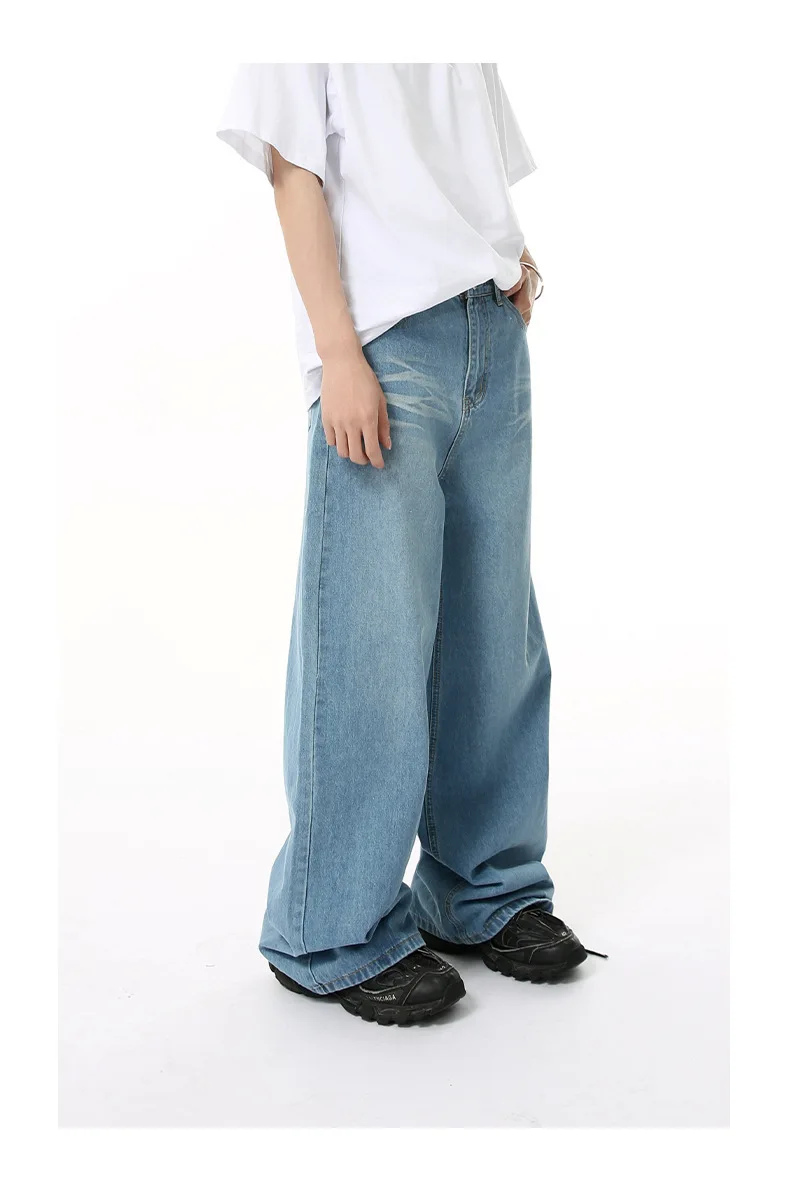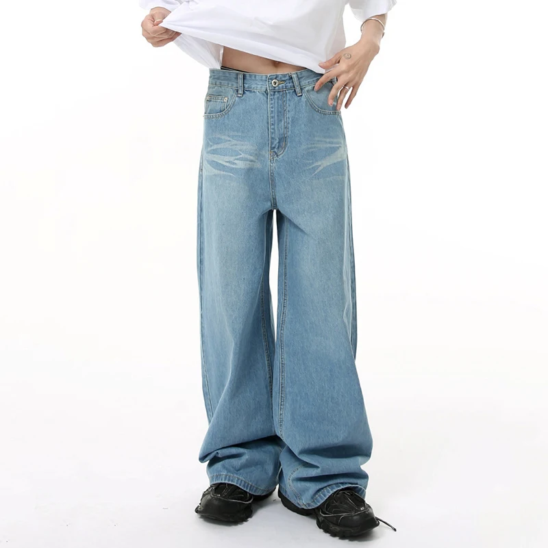 Men's Jeans New Korean Washed Stripe Wide Leg Style Drape Simple Fashion Menwear Simple Male Bottoms Summer 2025 9W1693