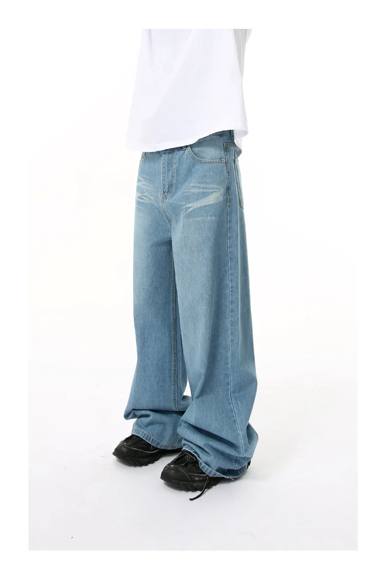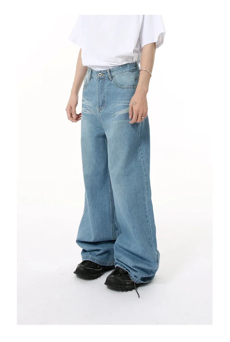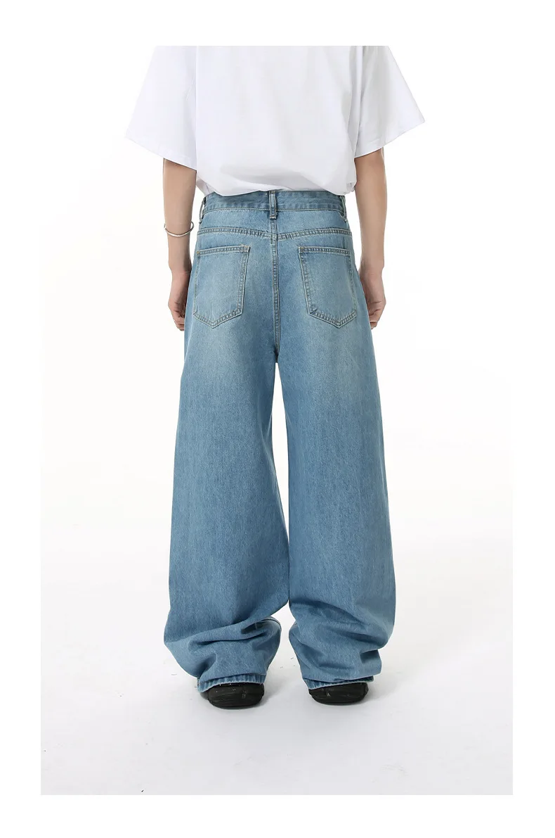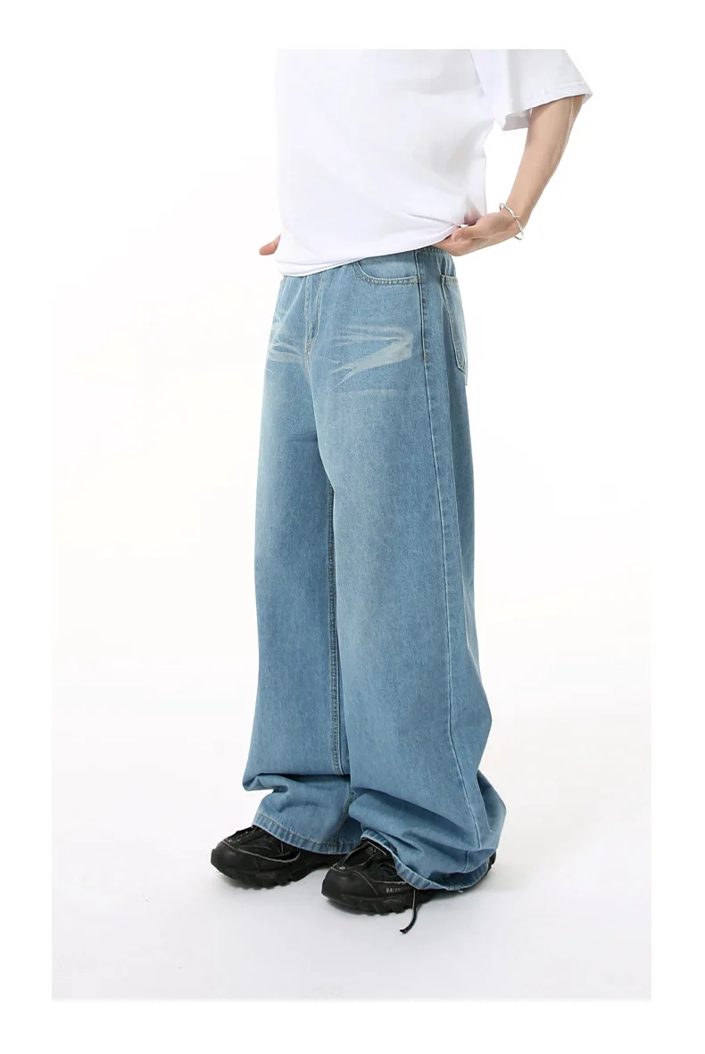 Men's Jeans New Korean Washed Stripe Wide Leg Style Drape Simple Fashion Menwear Simple Male Bottoms Summer 2025 9W1693