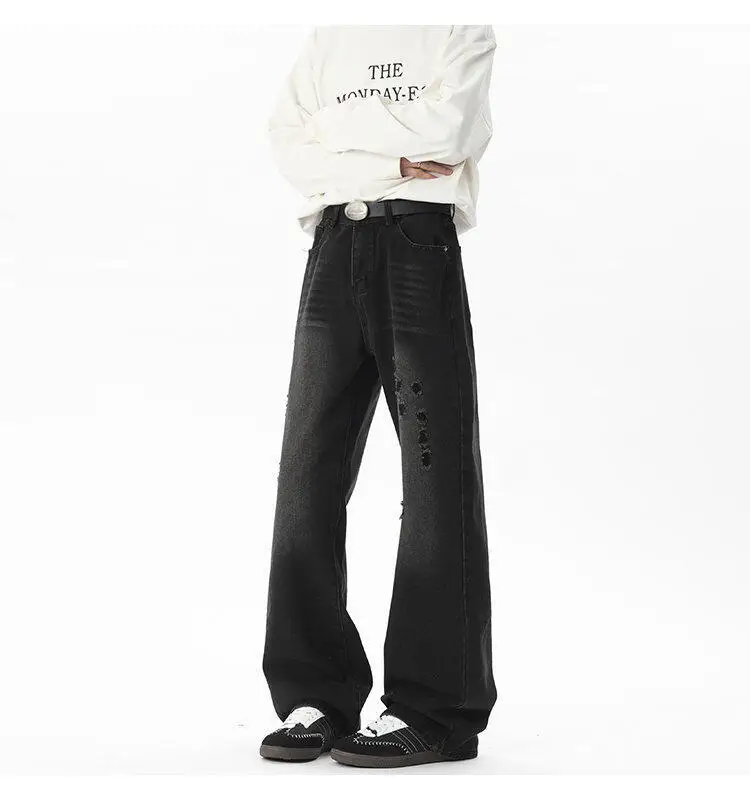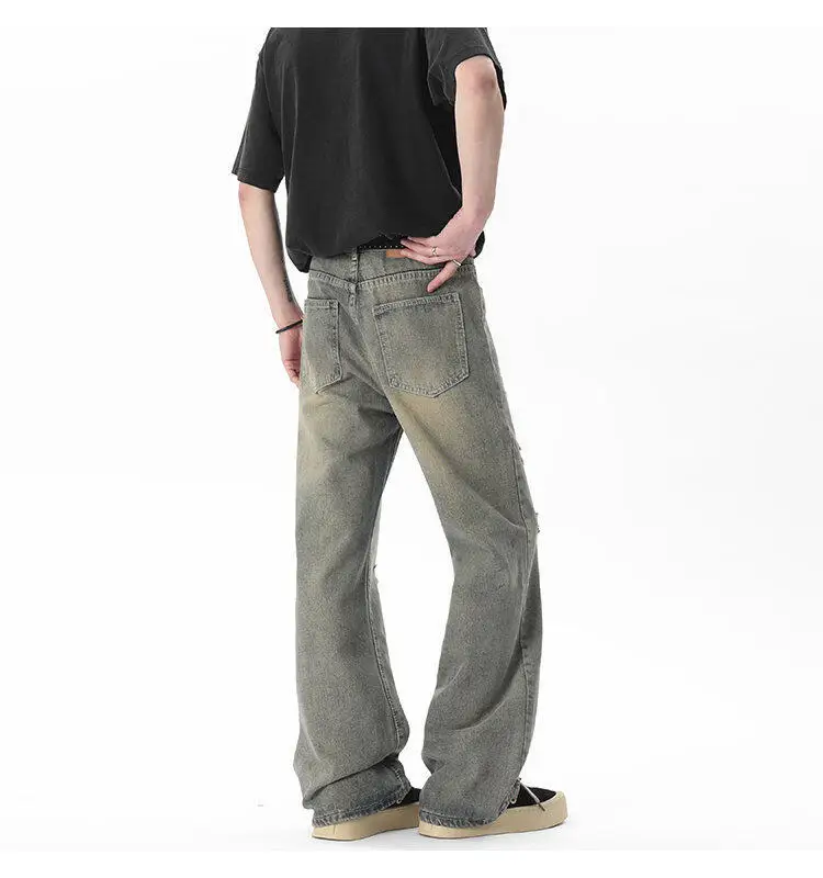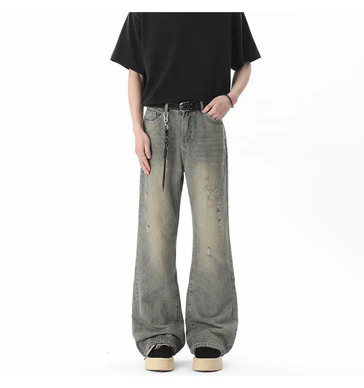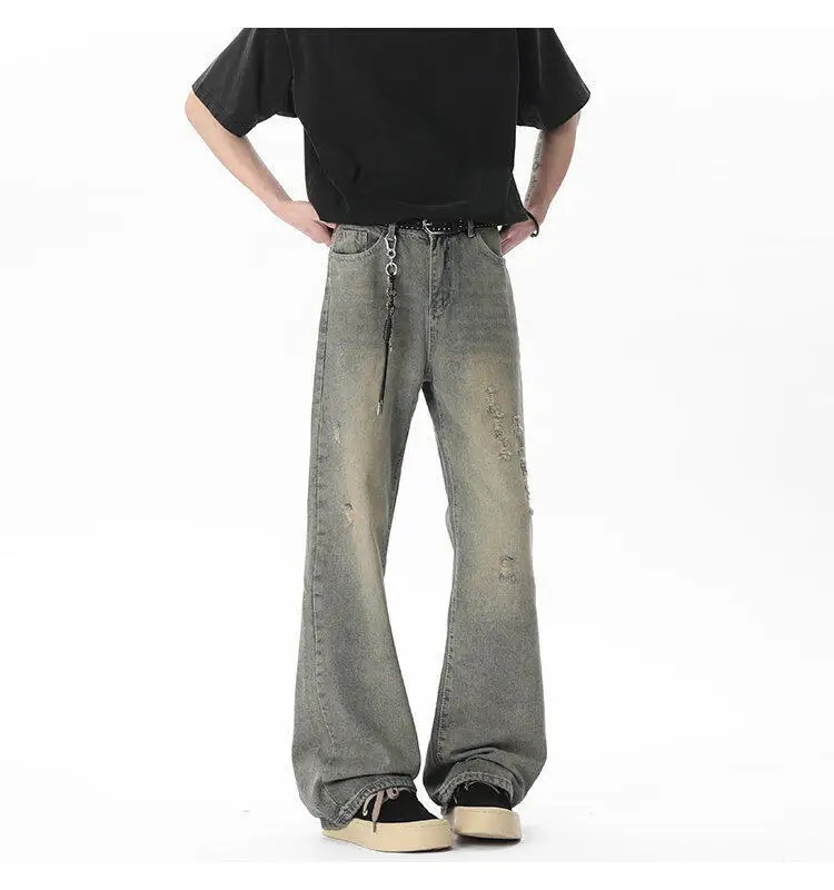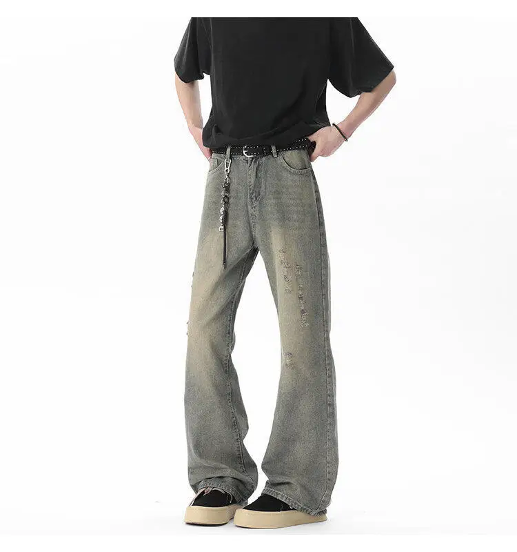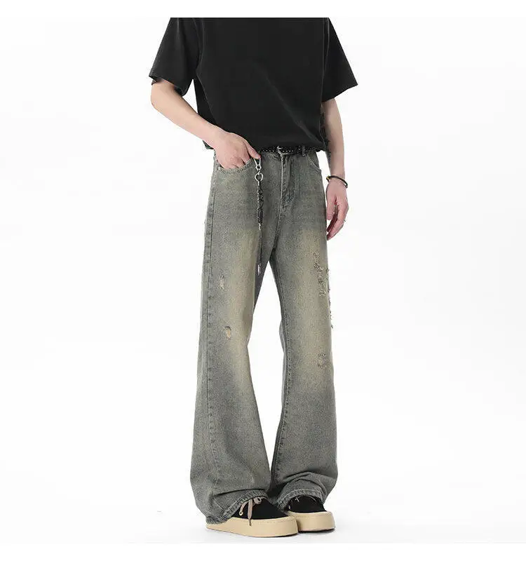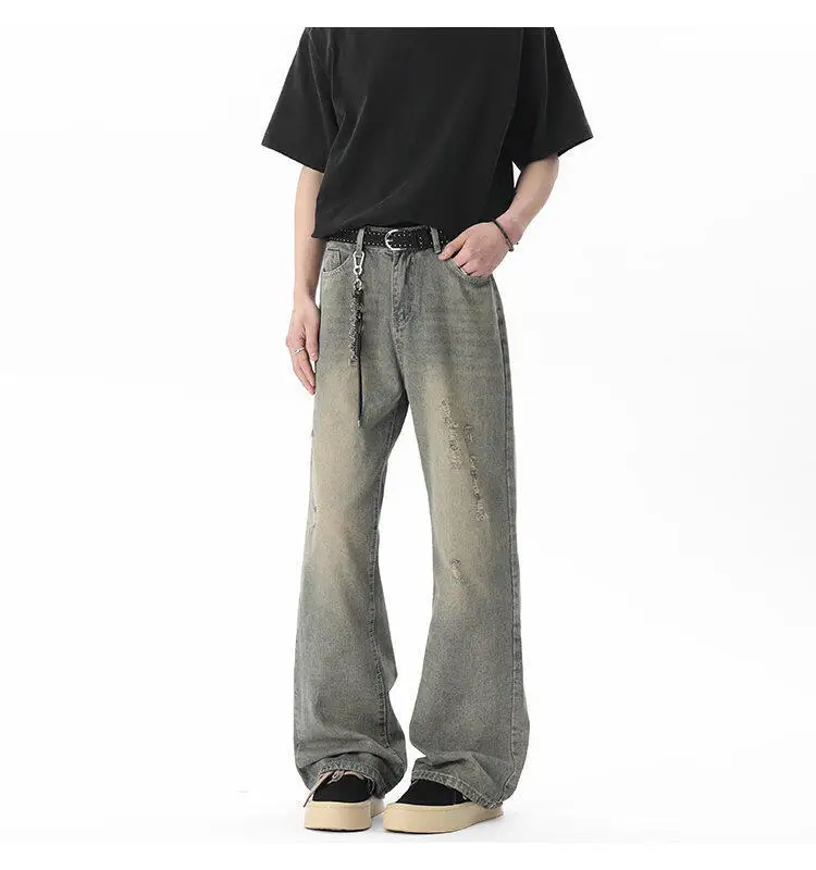 Men's Jeans New Summer American High Street Style Washed Micro Flared Trendy Gradient Color Simple Male Clothing 9W1807