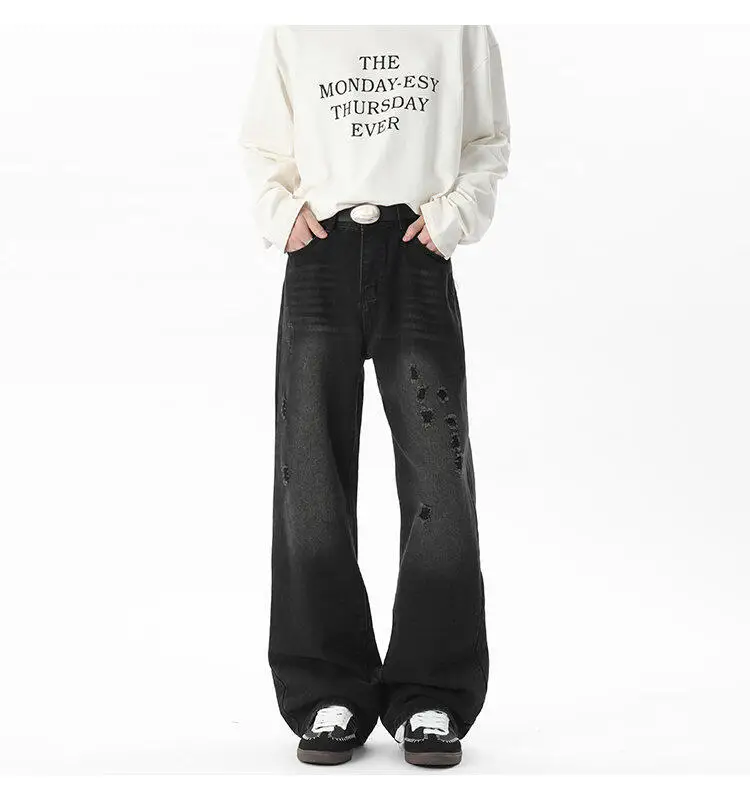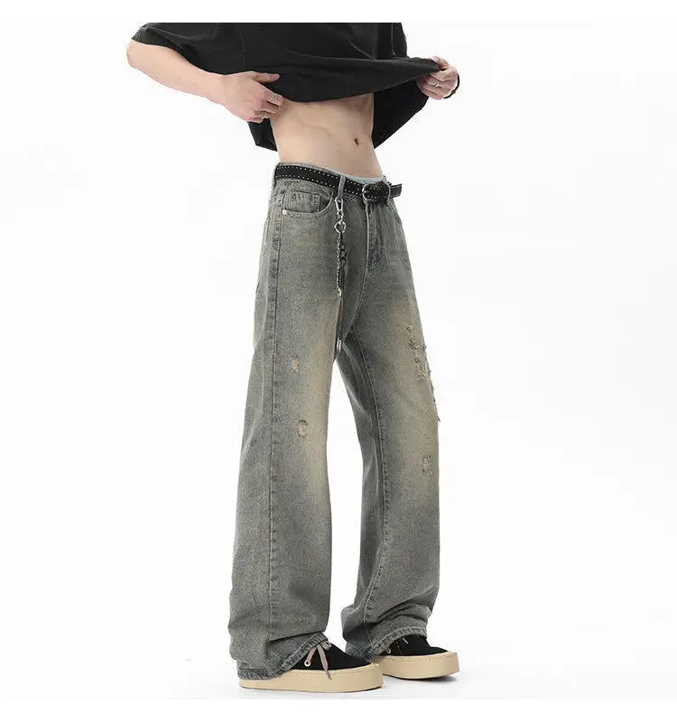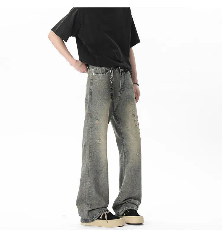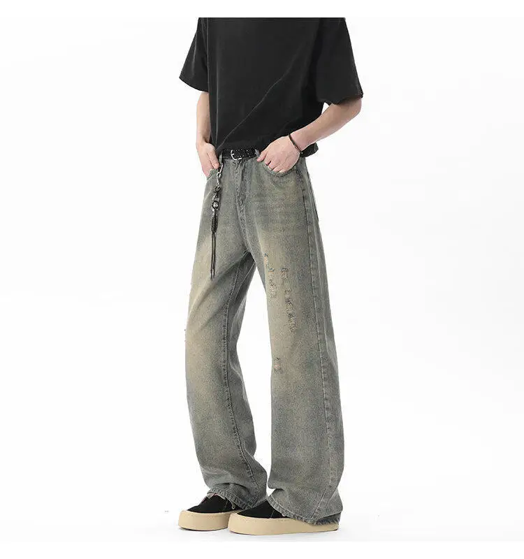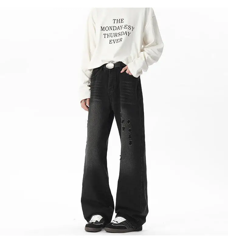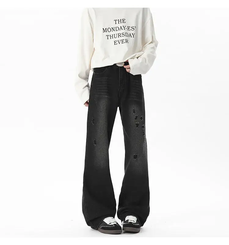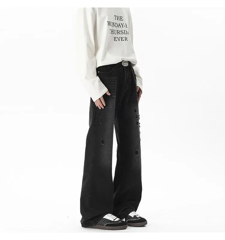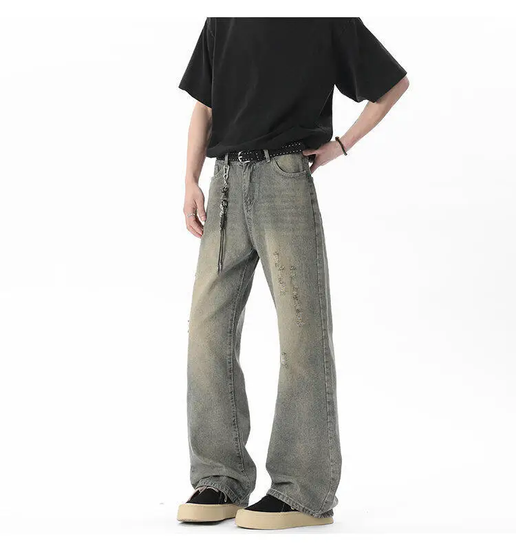 Men's Jeans New Summer American High Street Style Washed Micro Flared Trendy Gradient Color Simple Male Clothing 9W1807