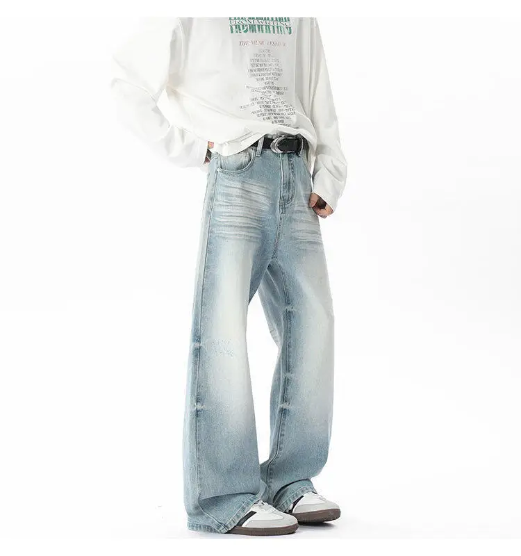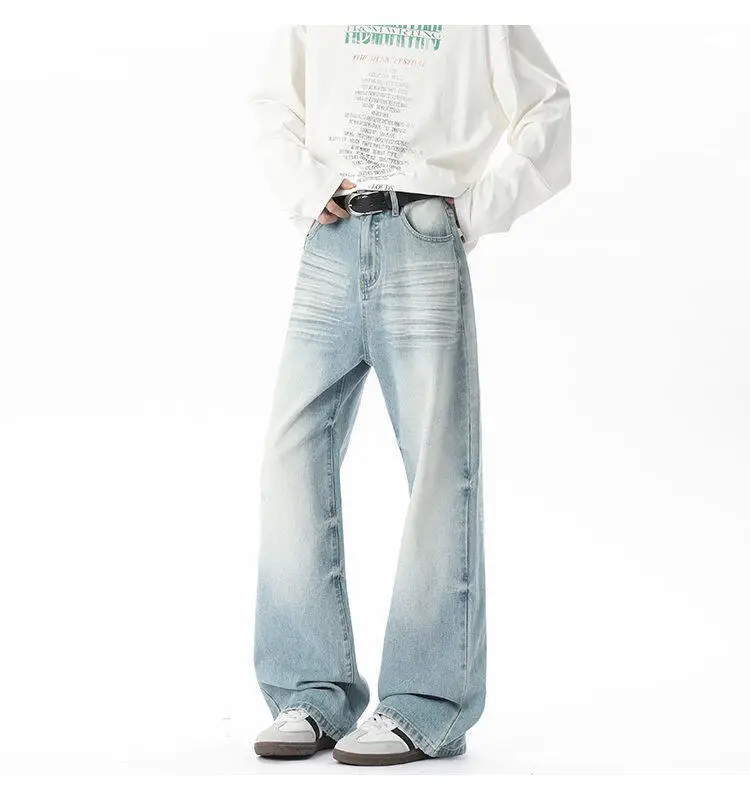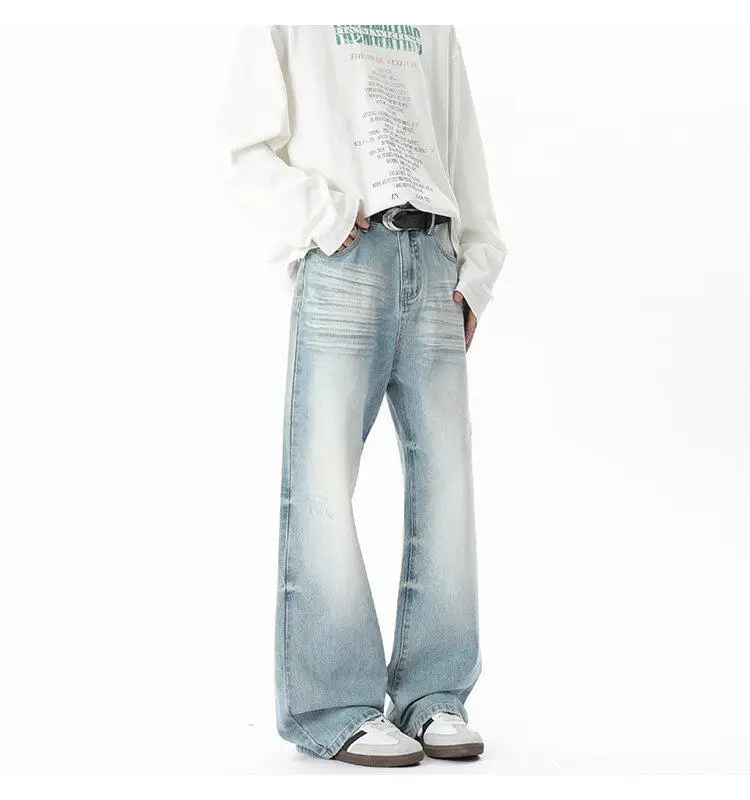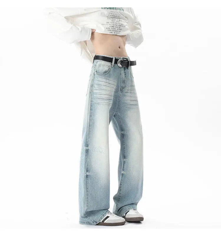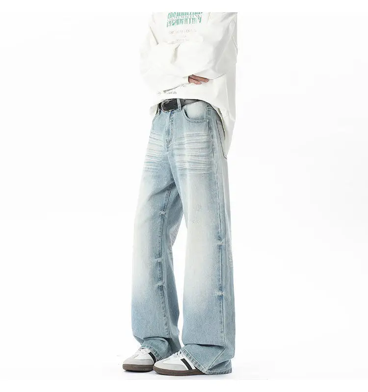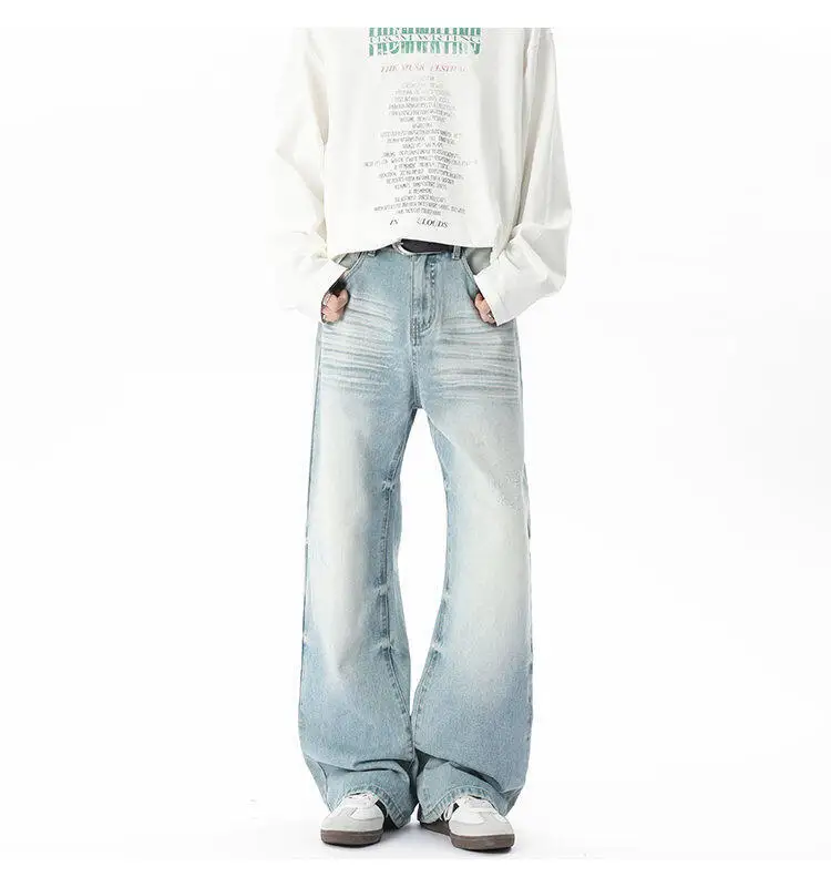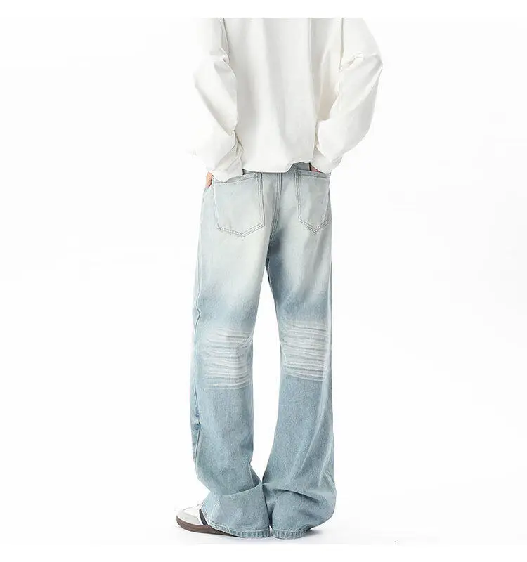 Men's Jeans New Summer American Style Tie Flower Cat Beard Stylish Straight Leg Denim Pants Male Casual Trousers 9W1809