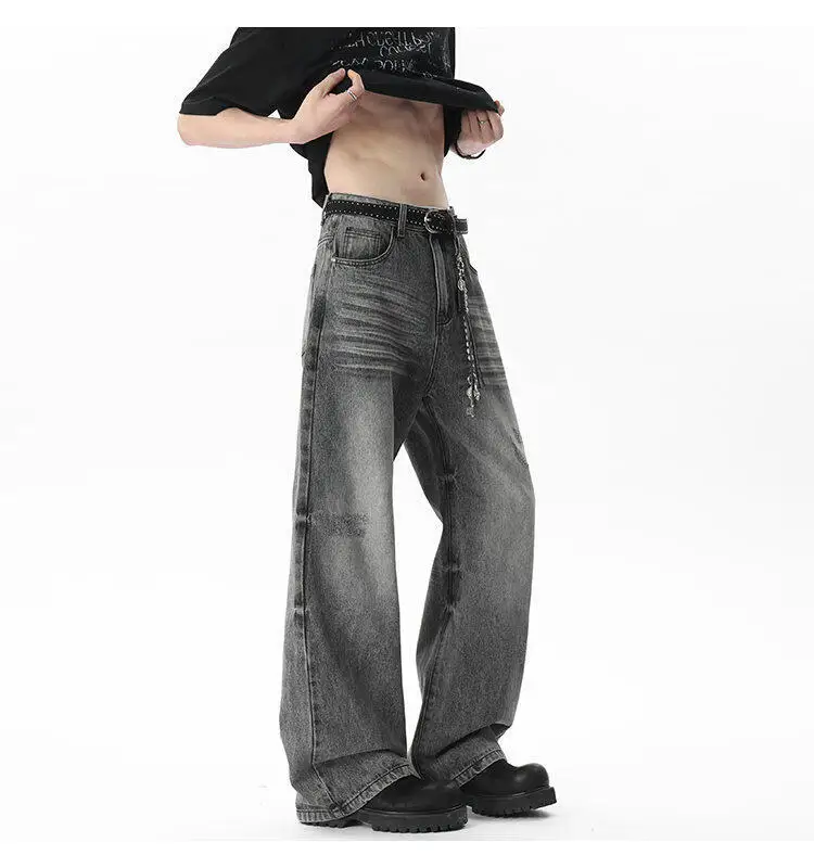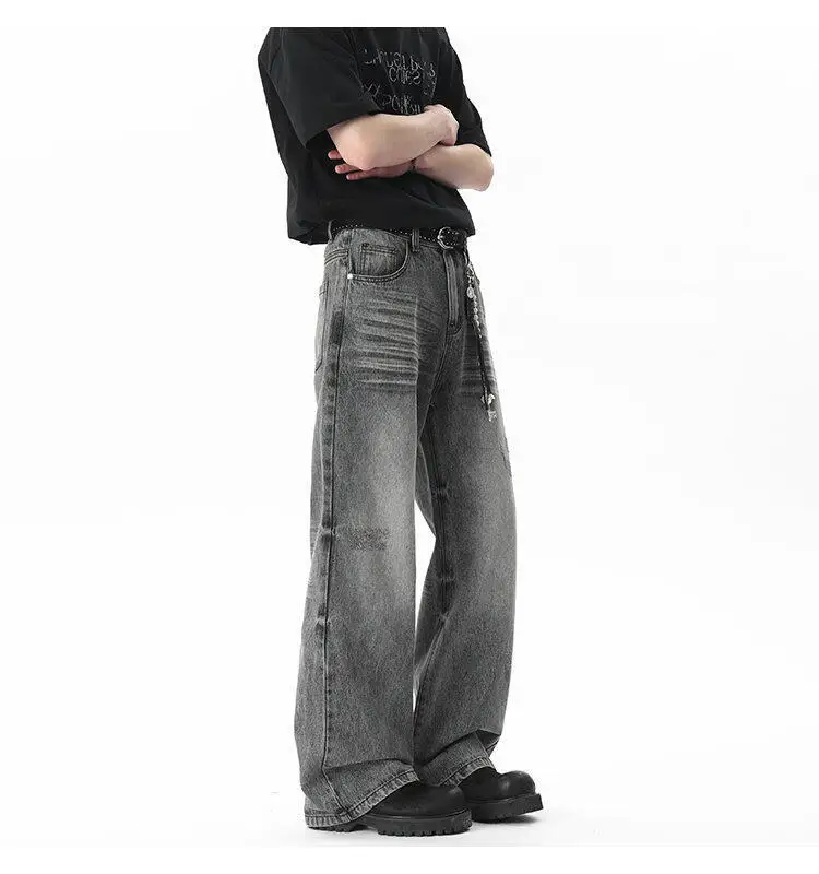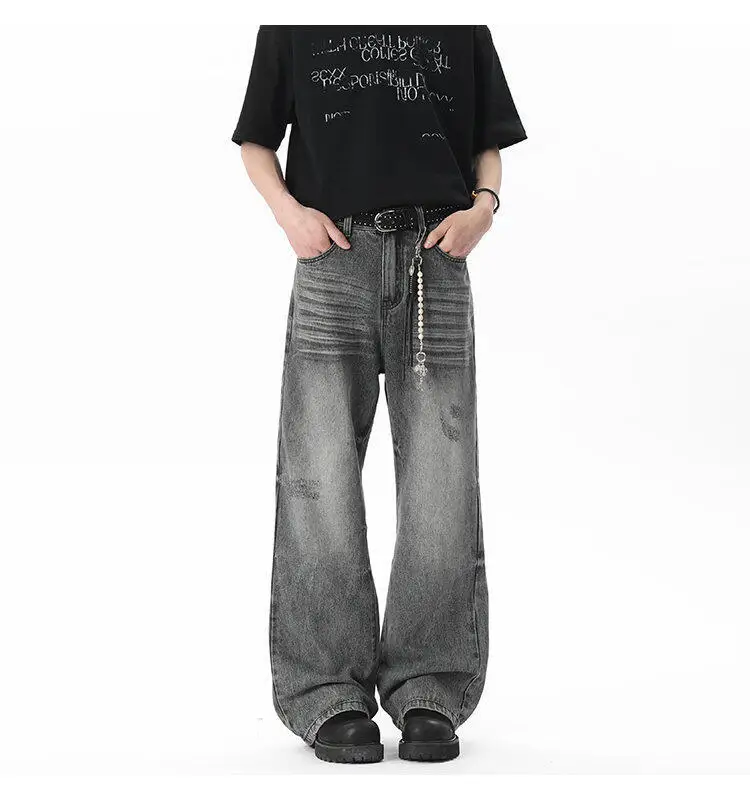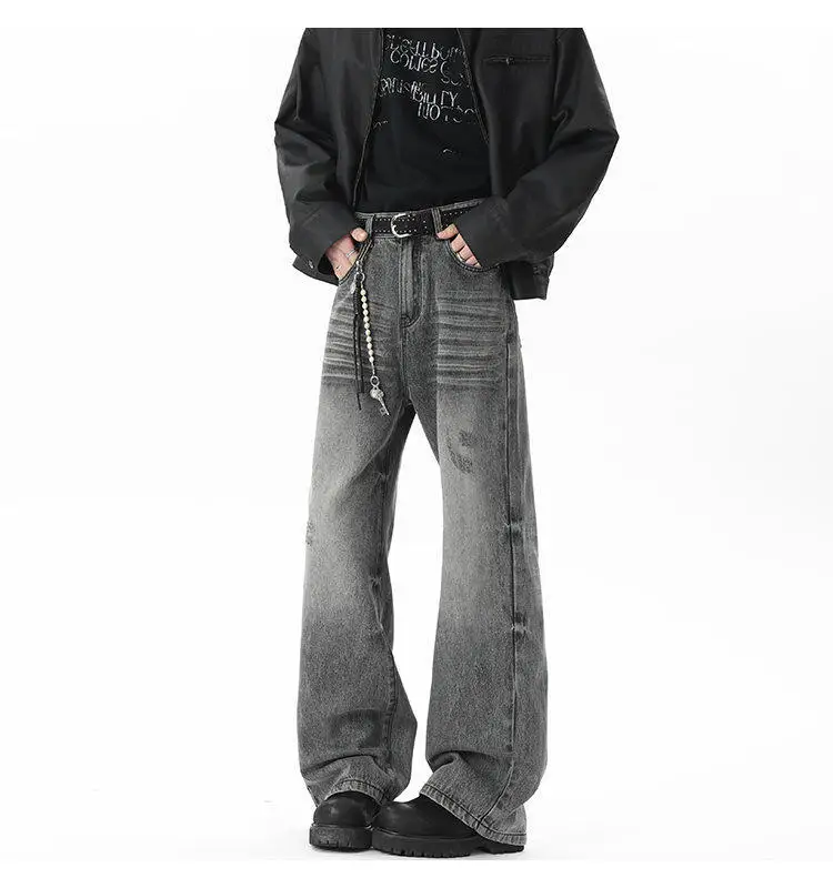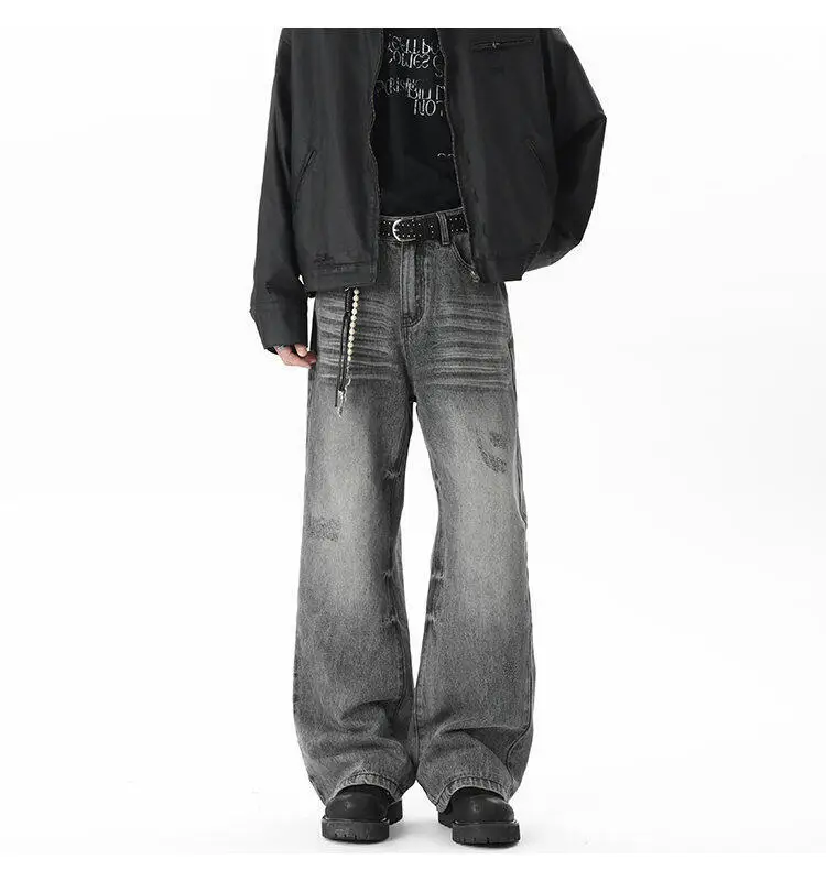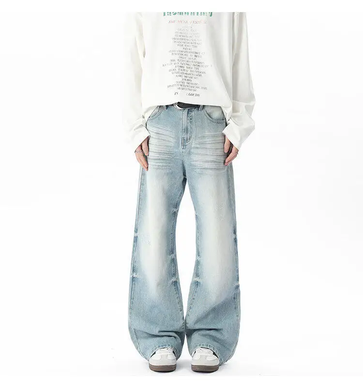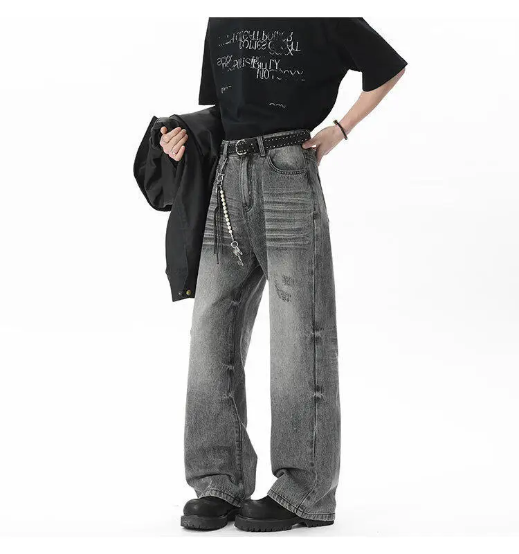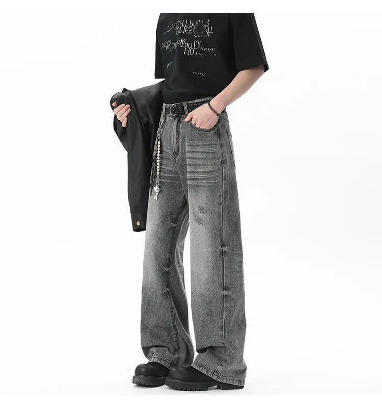 Men's Jeans New Summer American Style Tie Flower Cat Beard Stylish Straight Leg Denim Pants Male Casual Trousers 9W1809