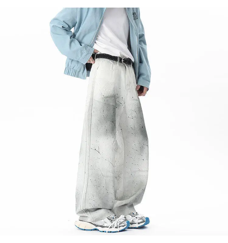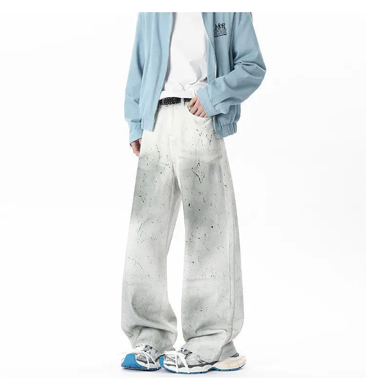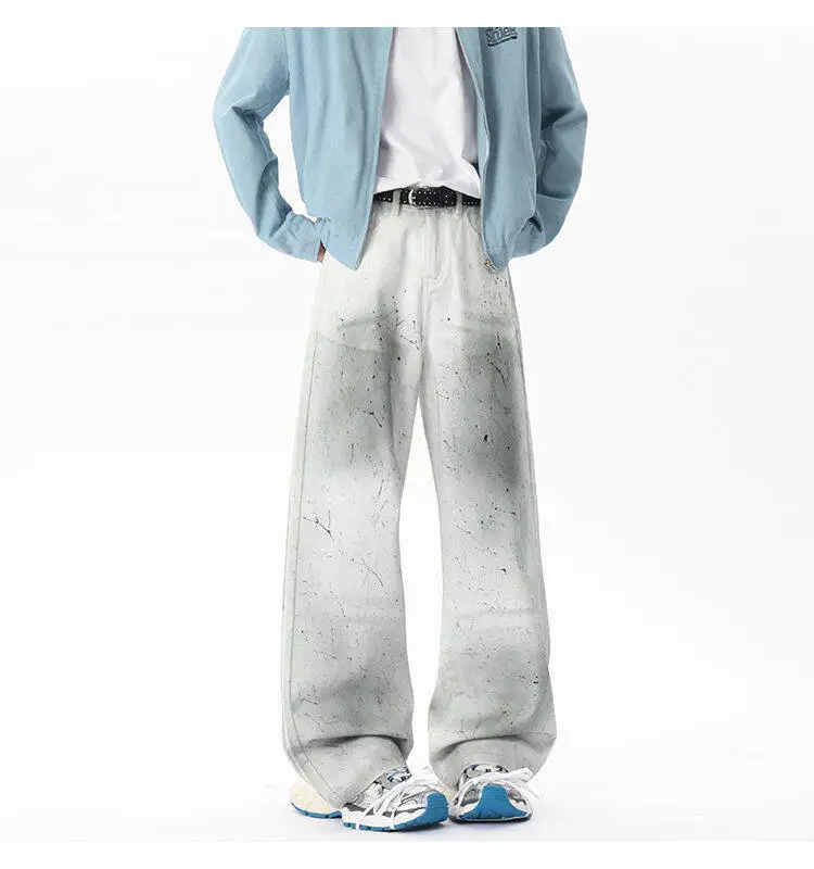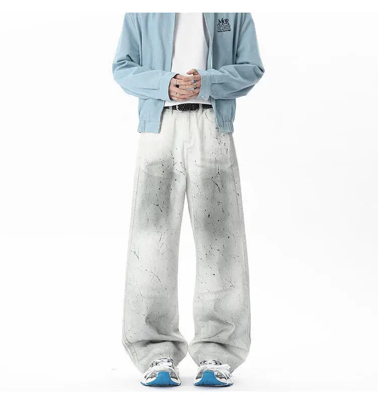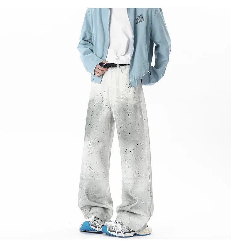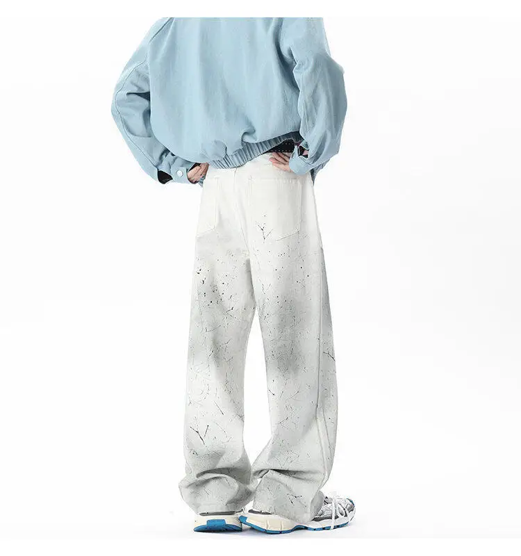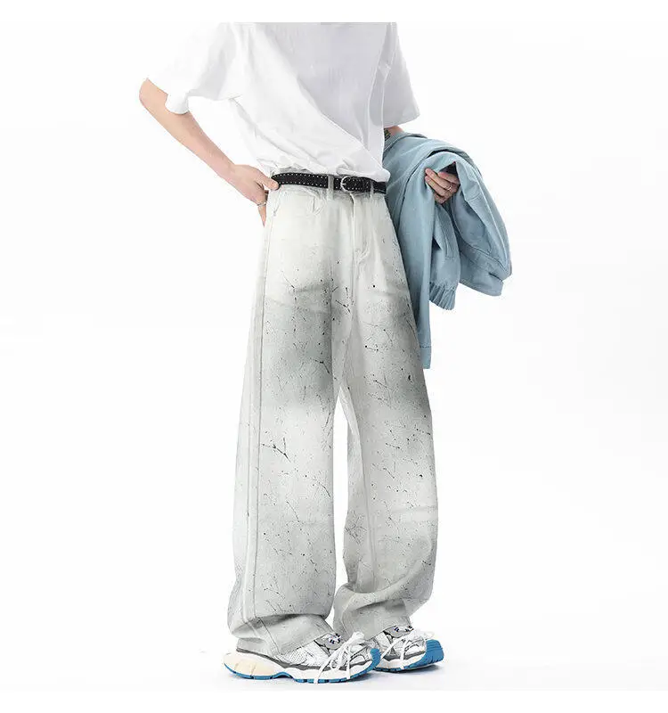 Men's Jeans New Summer Korean Tie-dyed Paint Dot Splash Ink White Casual Handsome Straight Leg Male Bottoms 9W1675
