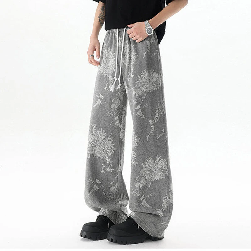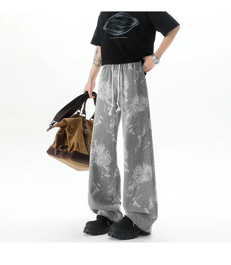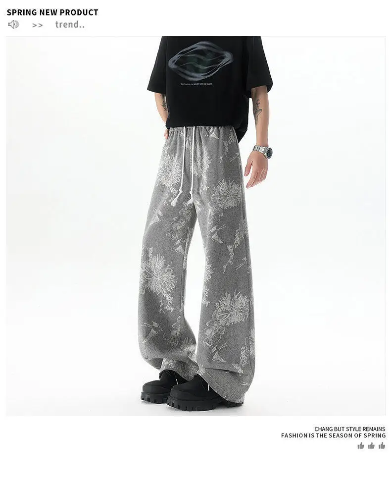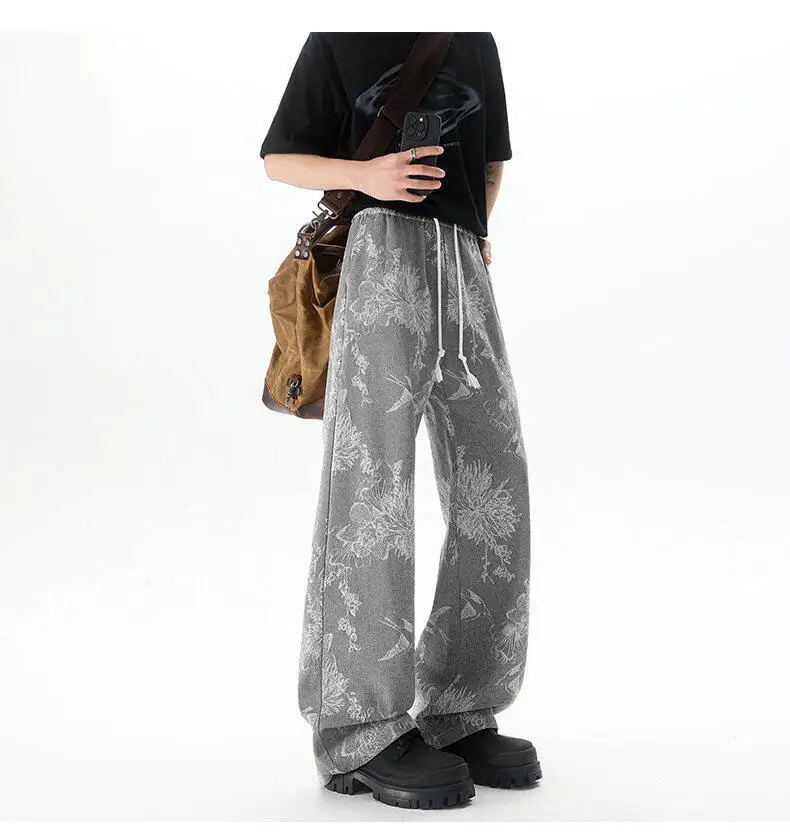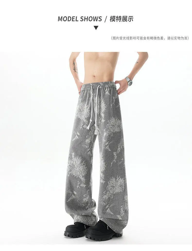 Men's Jeans New Summer New Korean Tide Flower Printed Design Loose Personalized Trendy Male Elastic Waist Trousers 9W1643