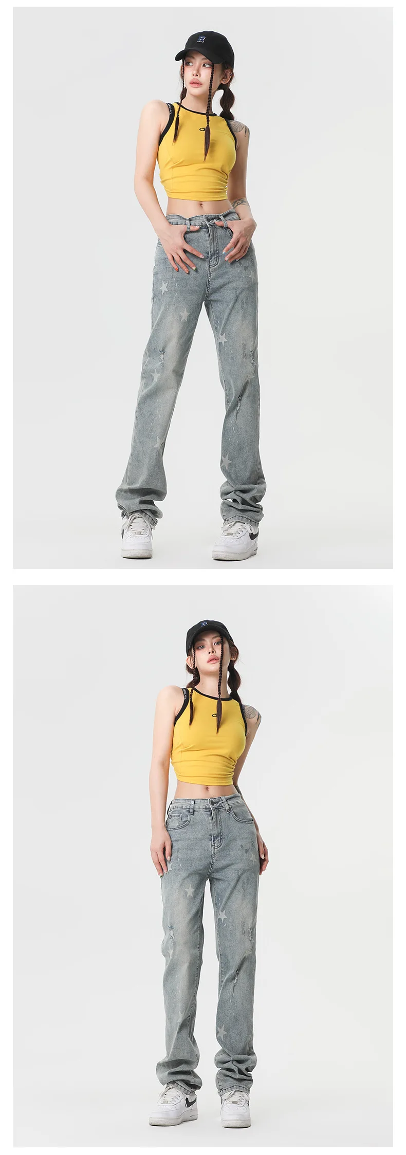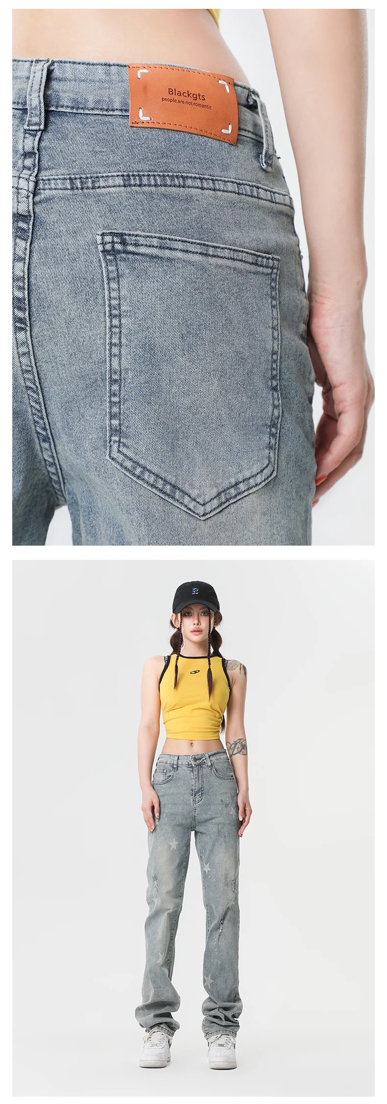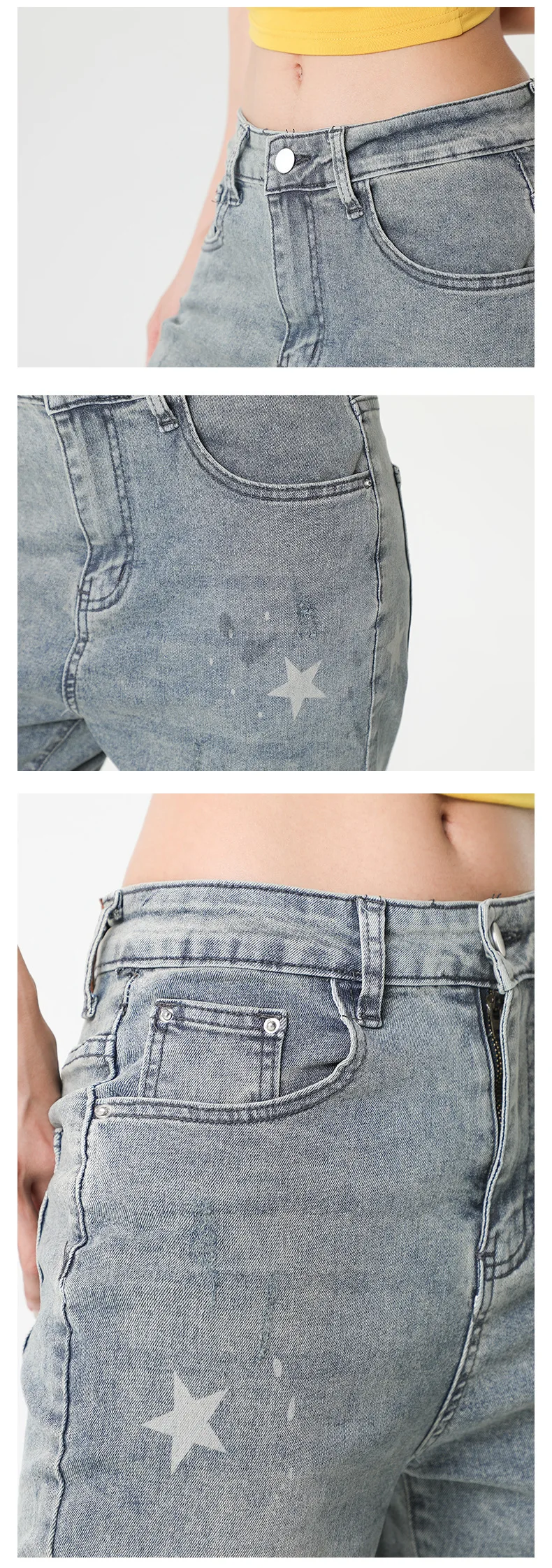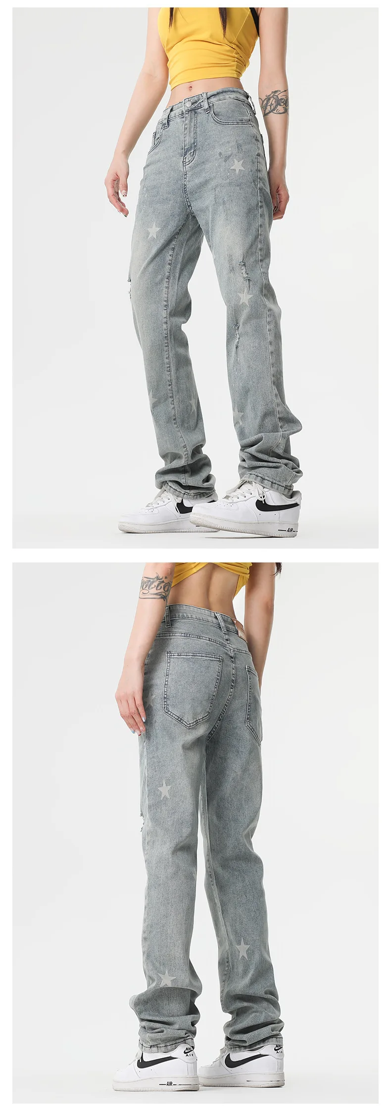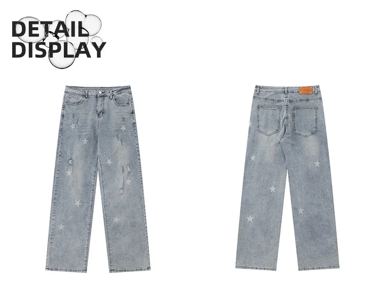 Men's Jeans Star Printing Design New American Style Straight Wide Leg Stylish Male Casual Summer Clothing 2025 9W1964