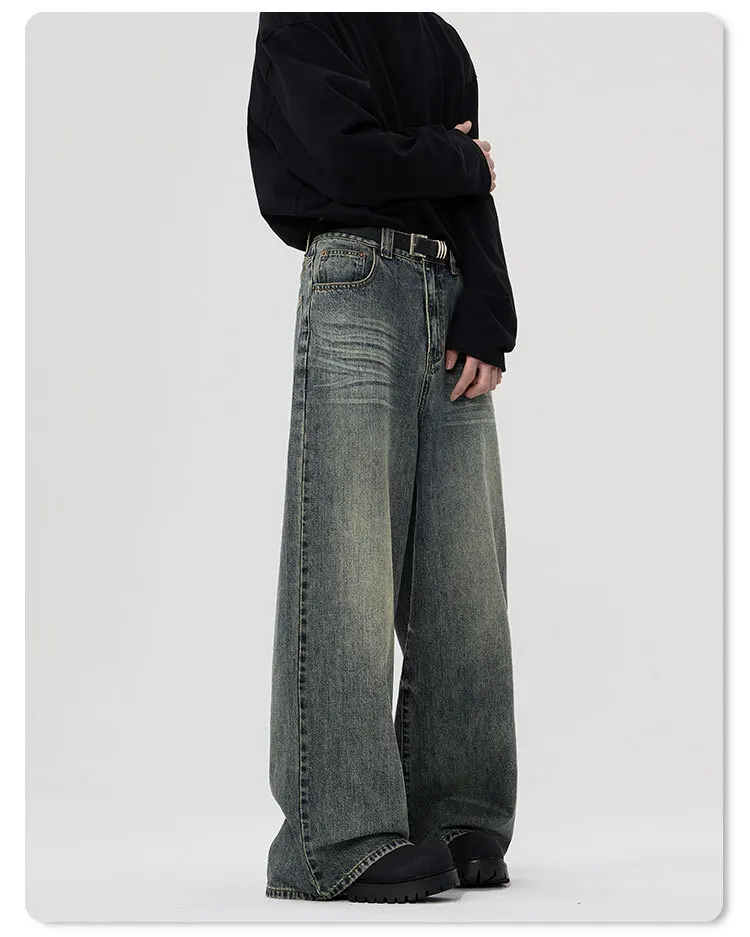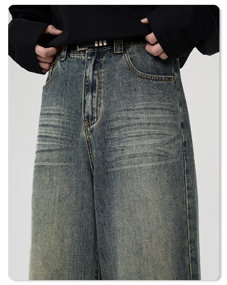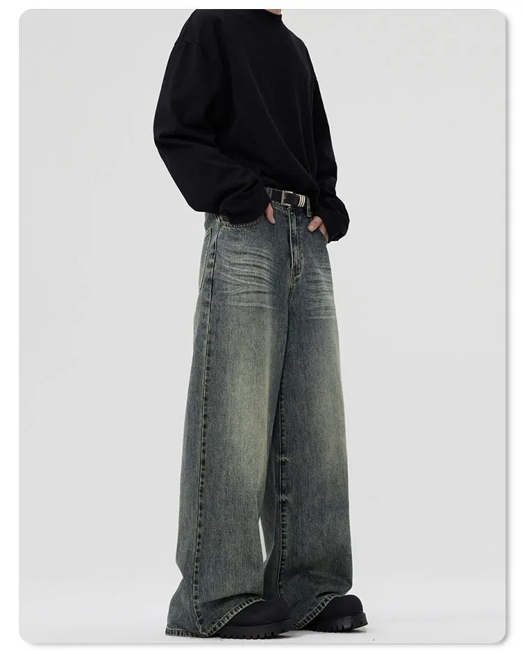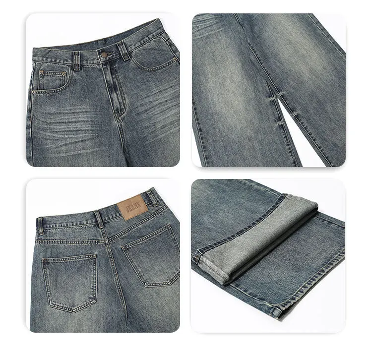 Men's Jeans Straight Leg Denim Pants New American High Street Losse Design Male Summer Trousers Casual Tide 2025 9W1553