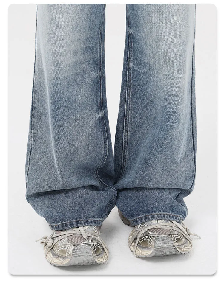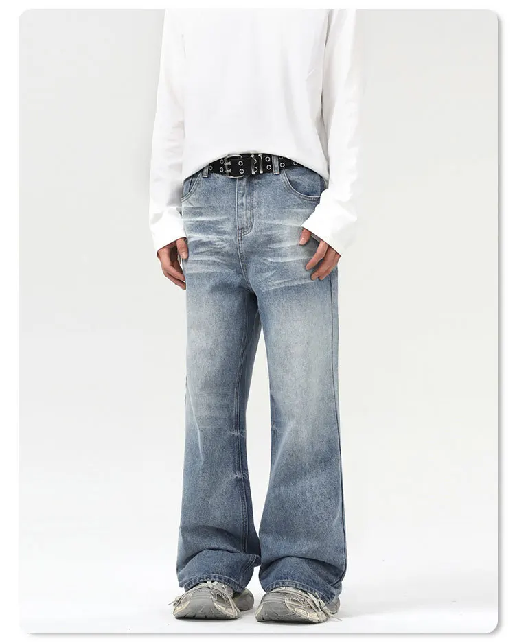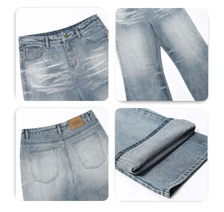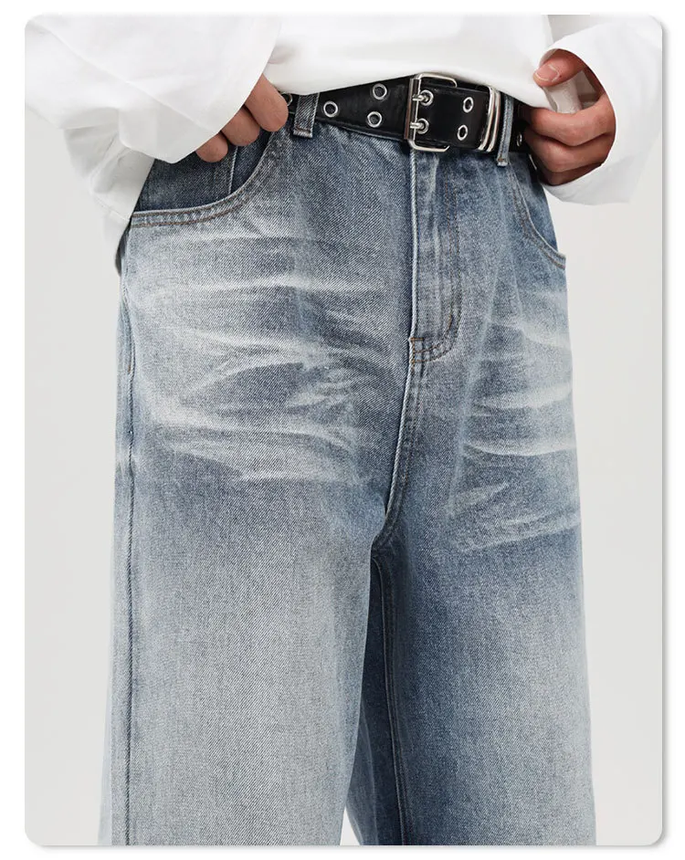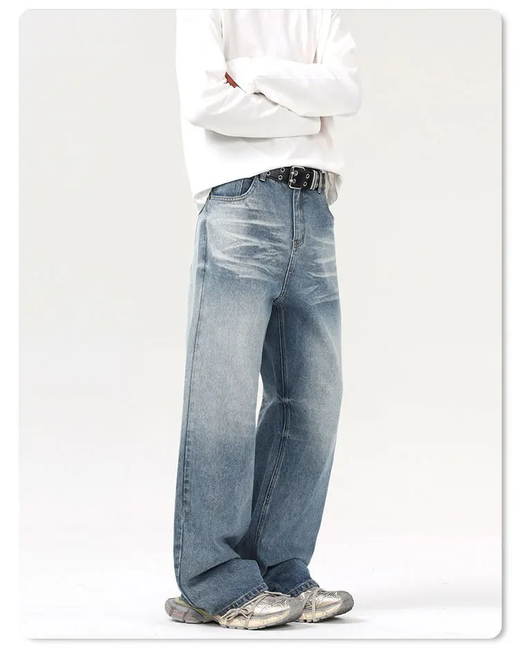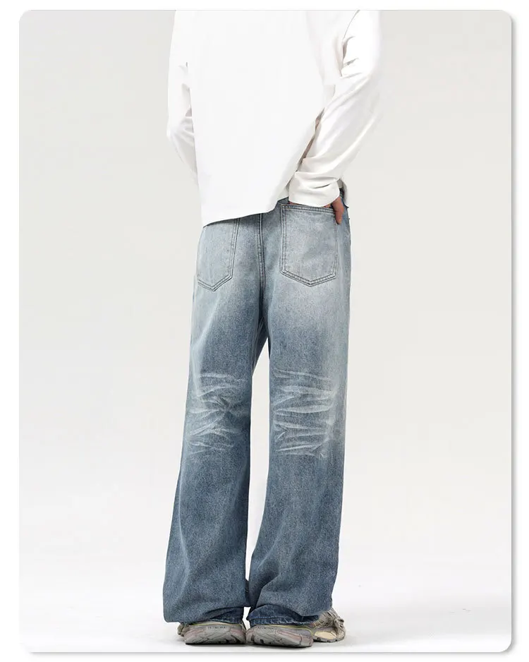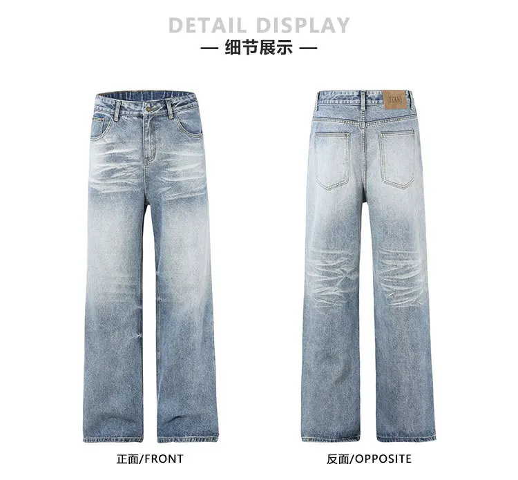 Men's Jeans Washed Denim Pants New American High Street Messy Cat Whiskers Stylish Baggystraight Style Trousers 9W1550