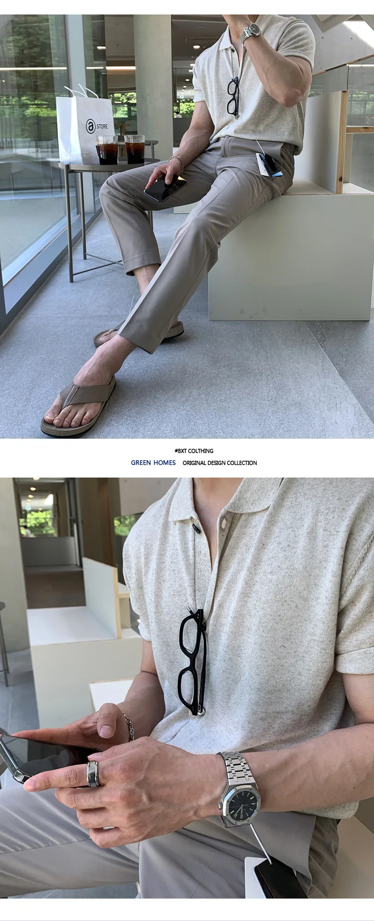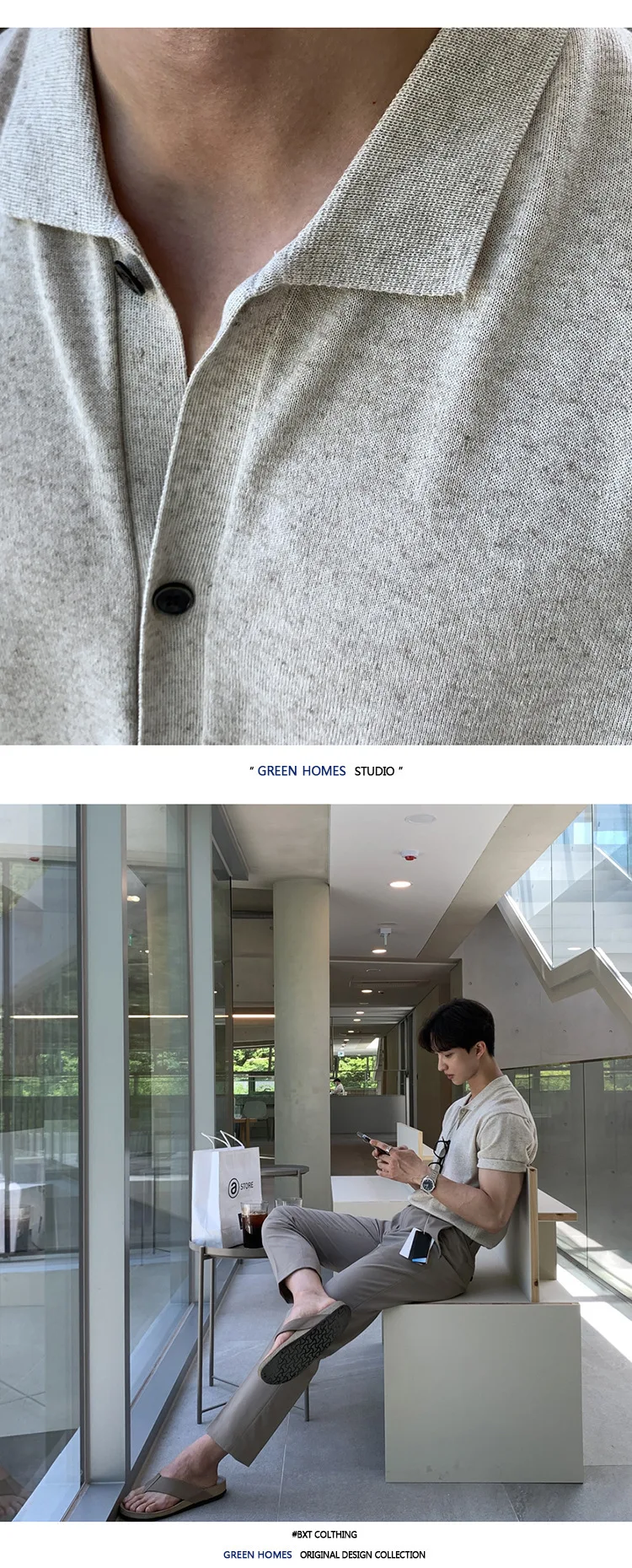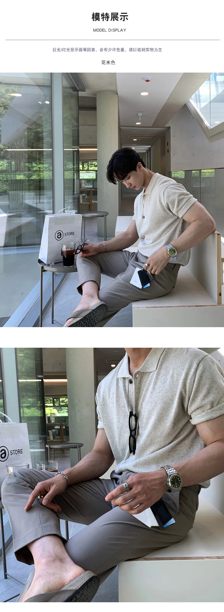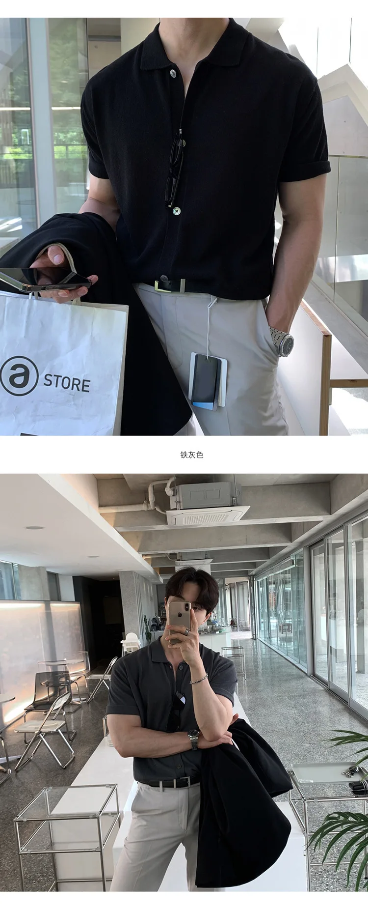 Men's Knitted Short Sleeve T-shirt Youth Handsome Turn-down Neck T-shirts New Korean Summer Loose Top Trendy 2025 9W1359