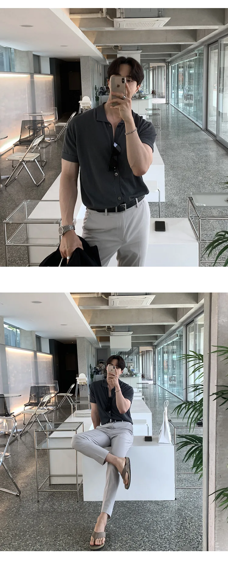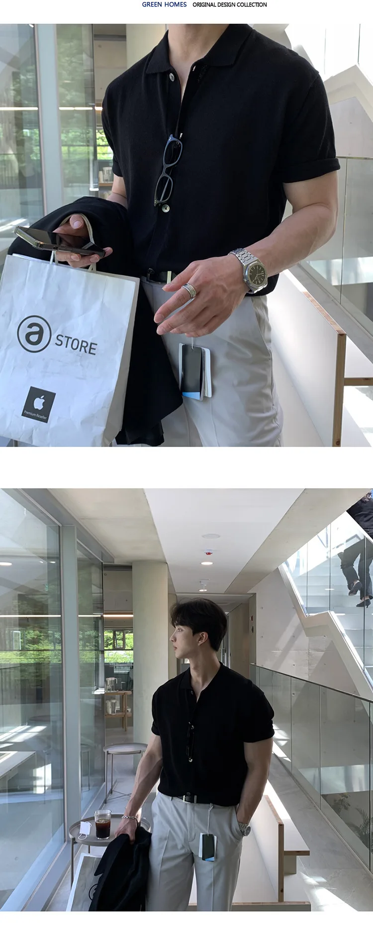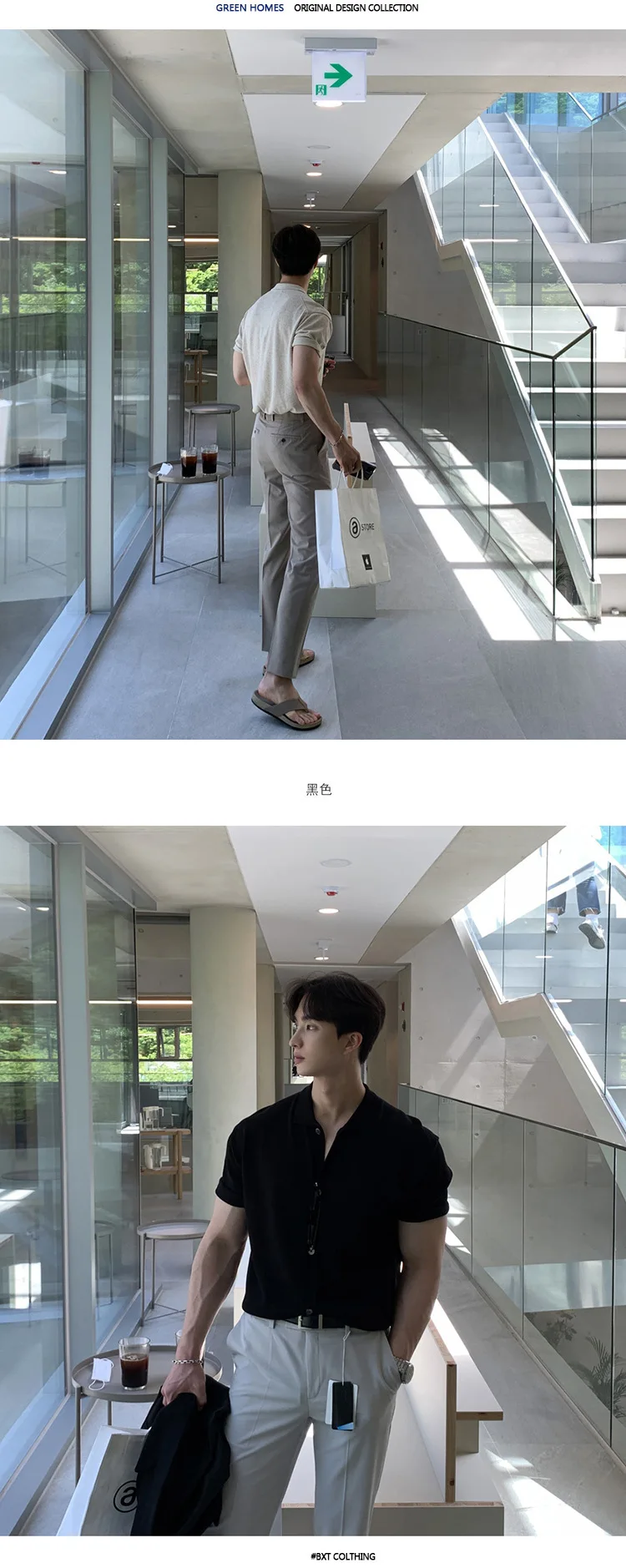 Men's Knitted Short Sleeve T-shirt Youth Handsome Turn-down Neck T-shirts New Korean Summer Loose Top Trendy 2025 9W1359