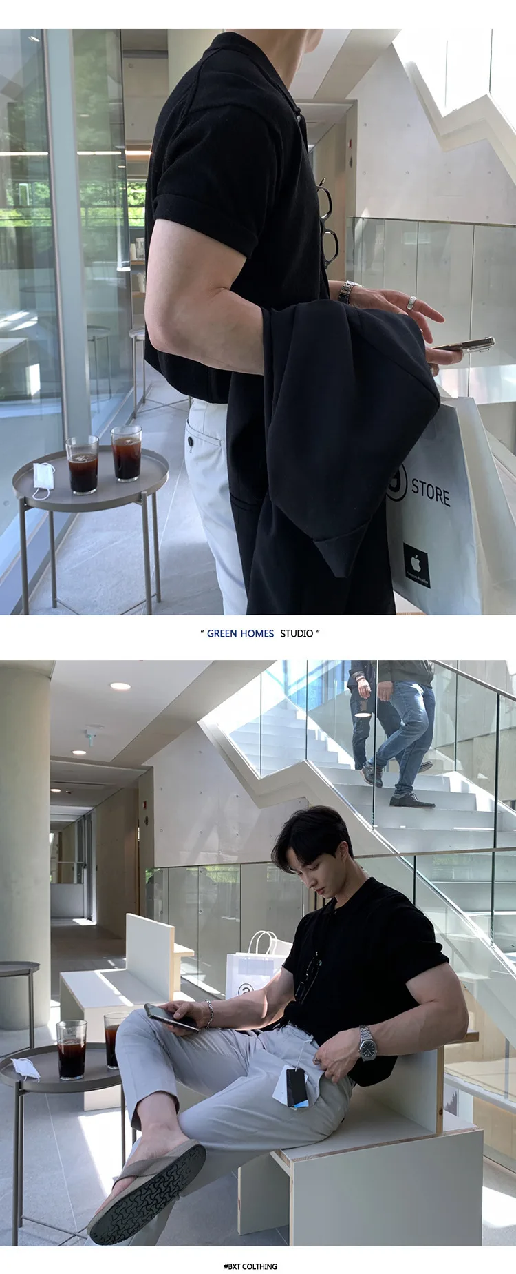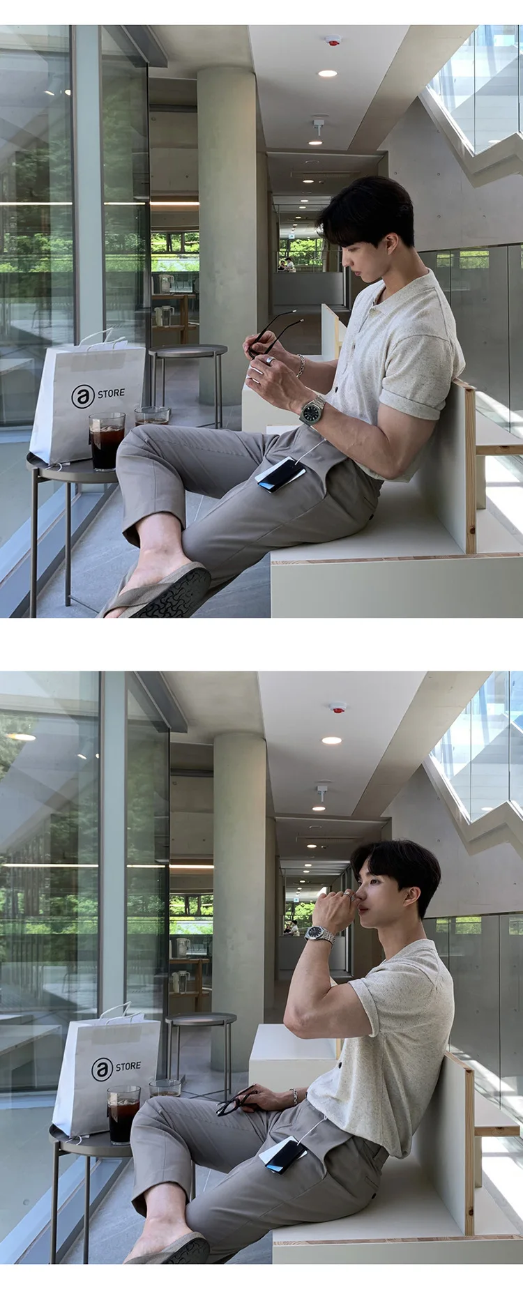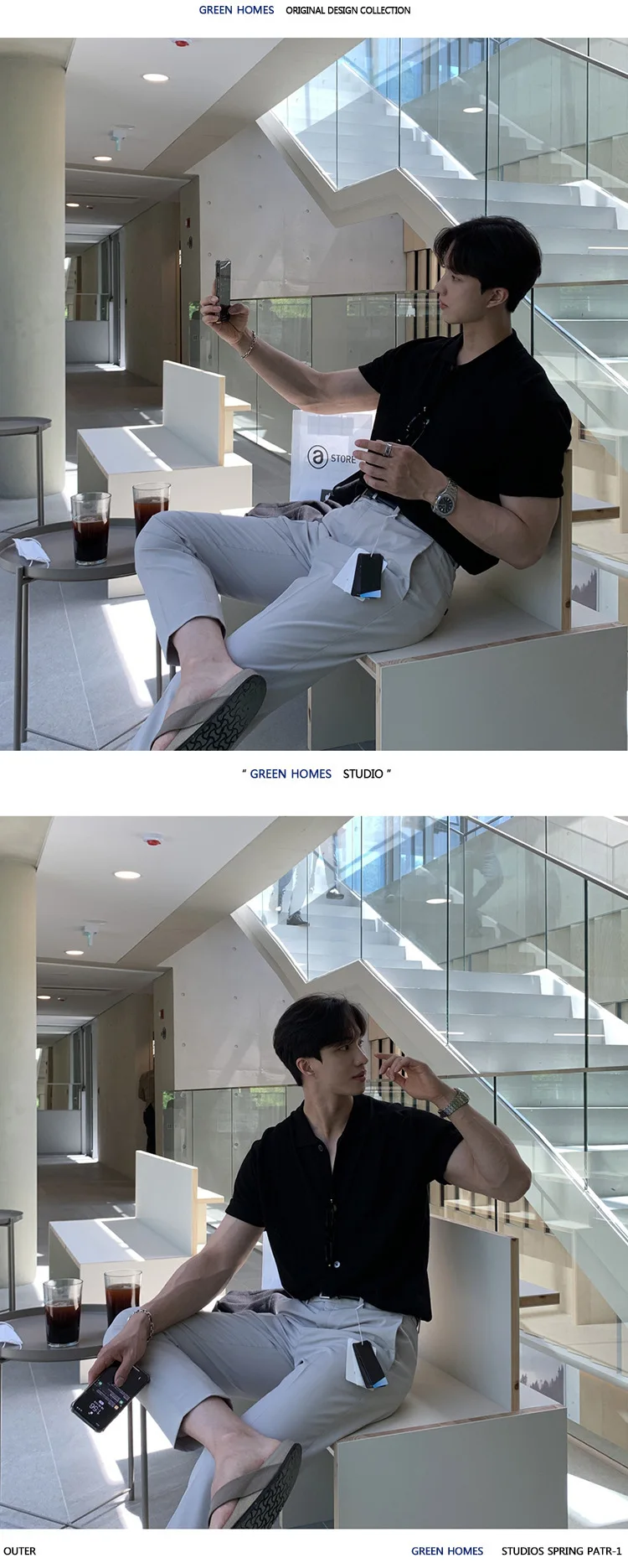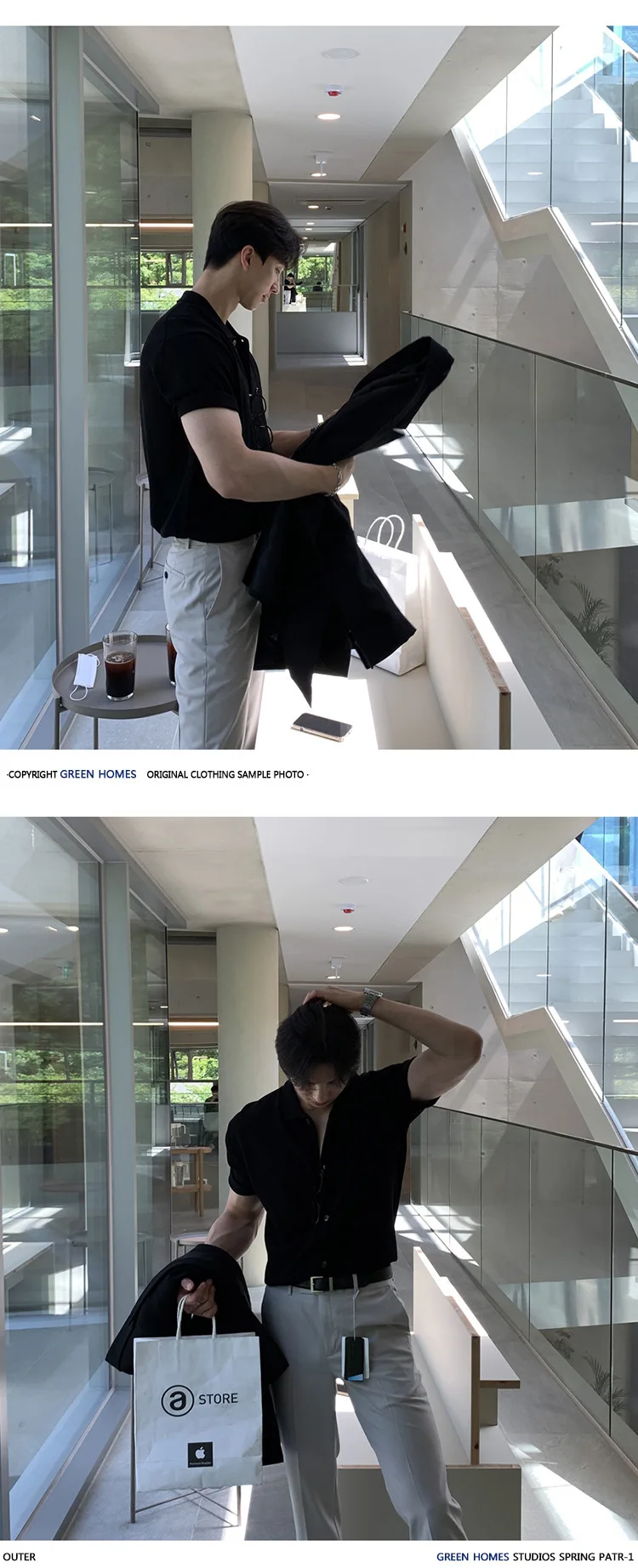 Men's Knitted Short Sleeve T-shirt Youth Handsome Turn-down Neck T-shirts New Korean Summer Loose Top Trendy 2025 9W1359
