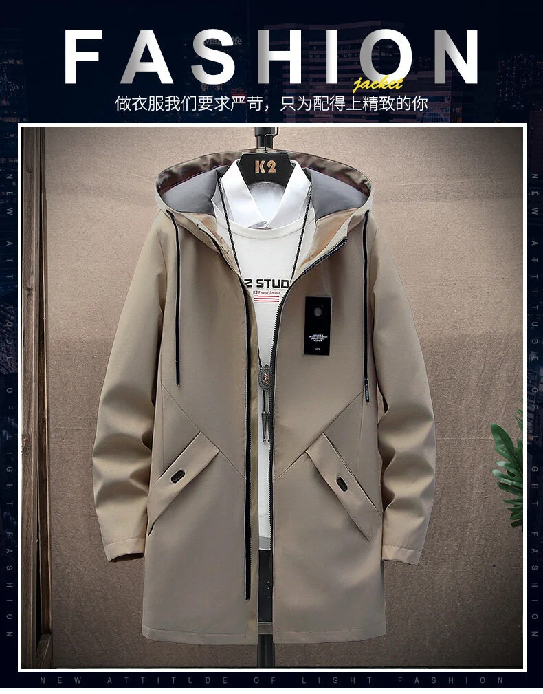 mens long jackets Spring Autumn Hooded windbreaker men Overcoat hip hop Solid Slim coats Hot Sale Casual man jacket New