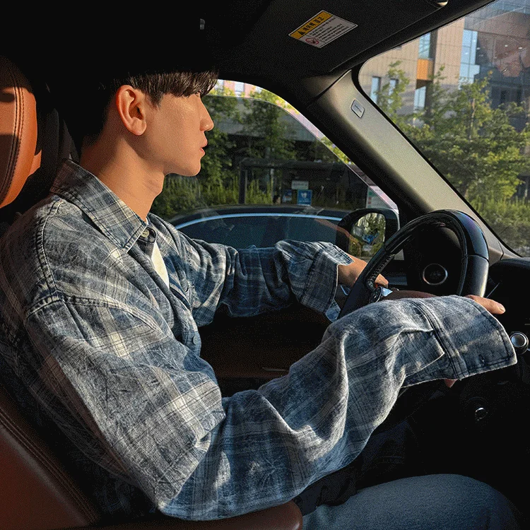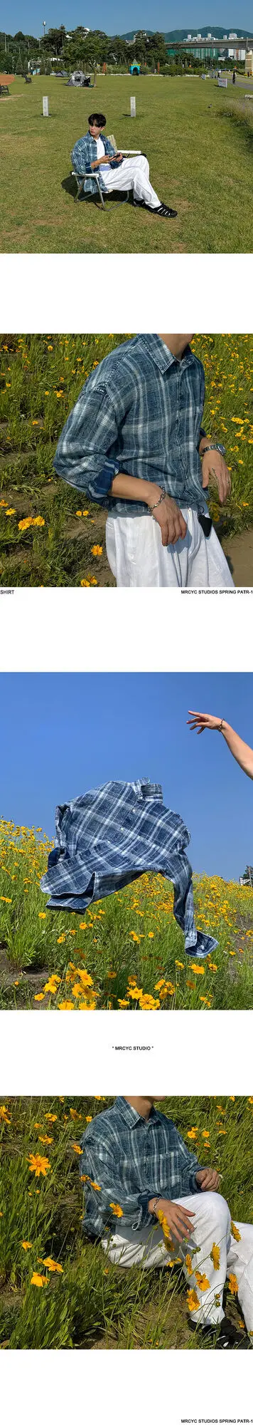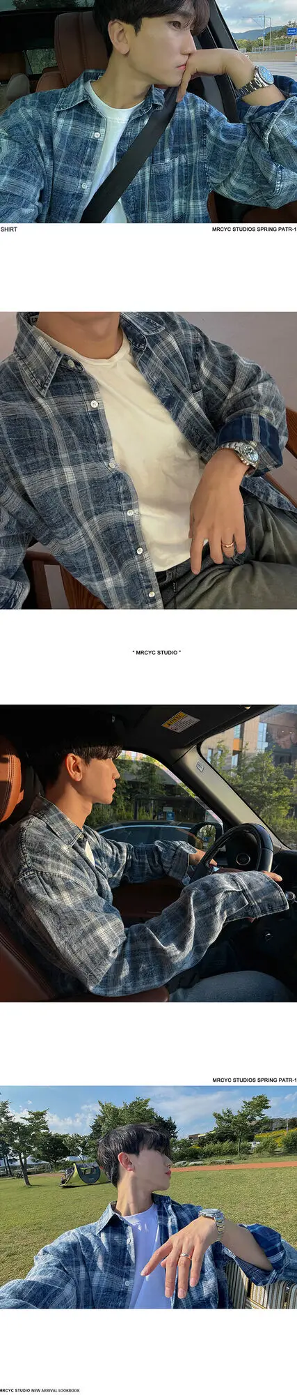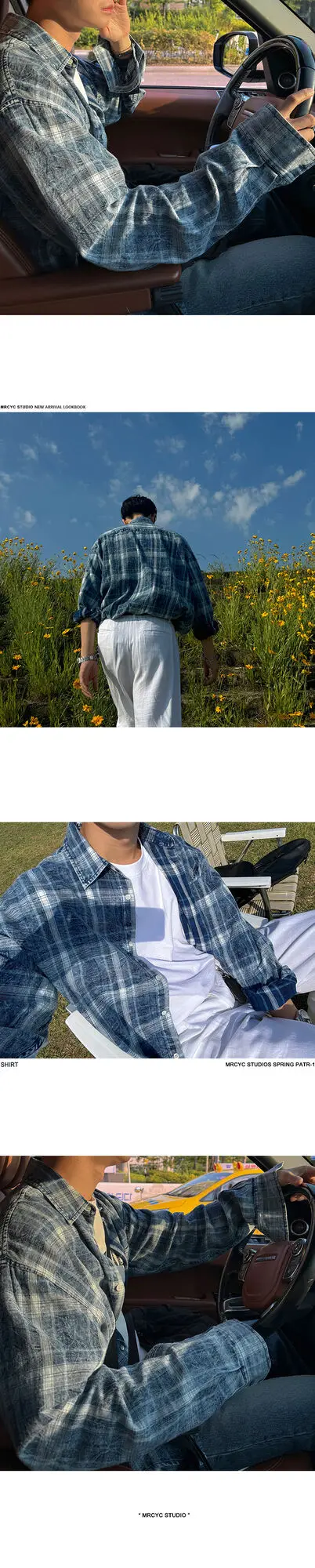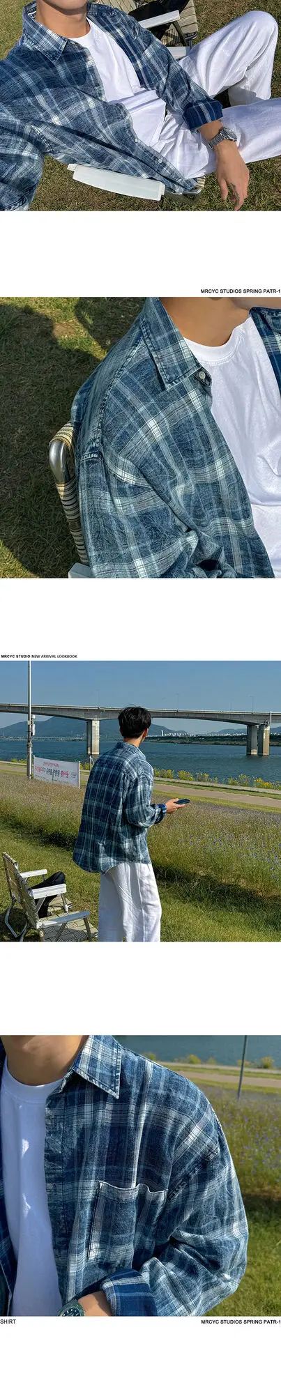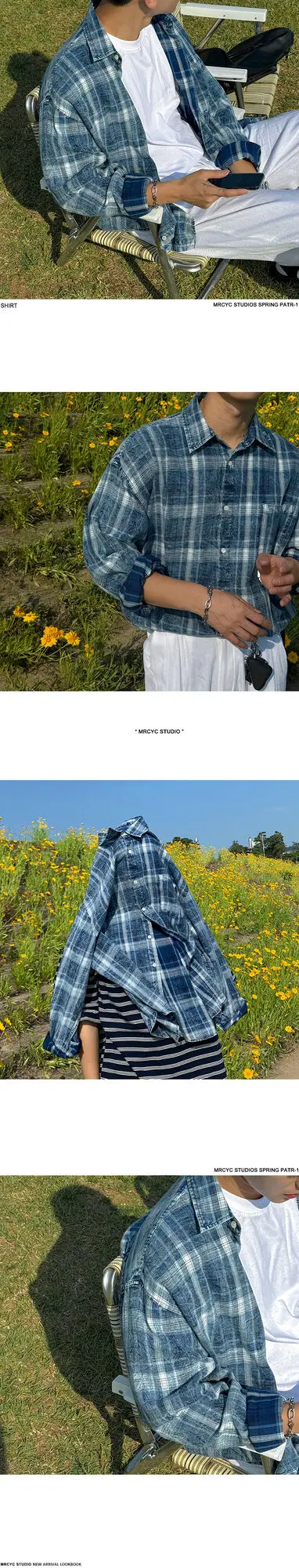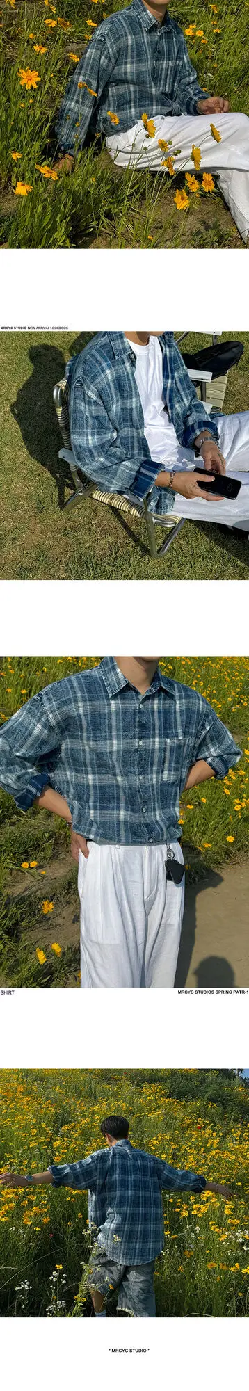 Men's Long Sleeve Shirts Plaid Male Spring Loose Single Breasted Casual Top Korean Trendy Lapel Clothing Tide 9W1486