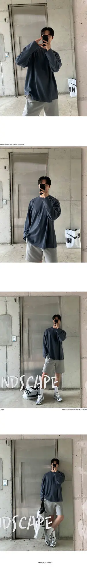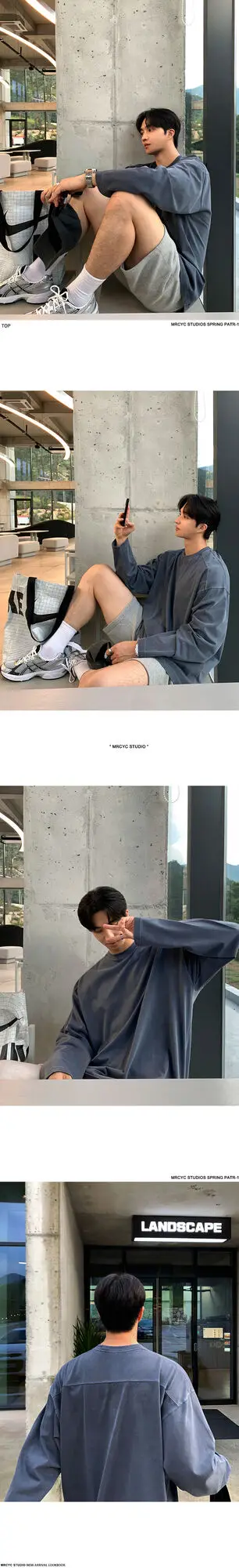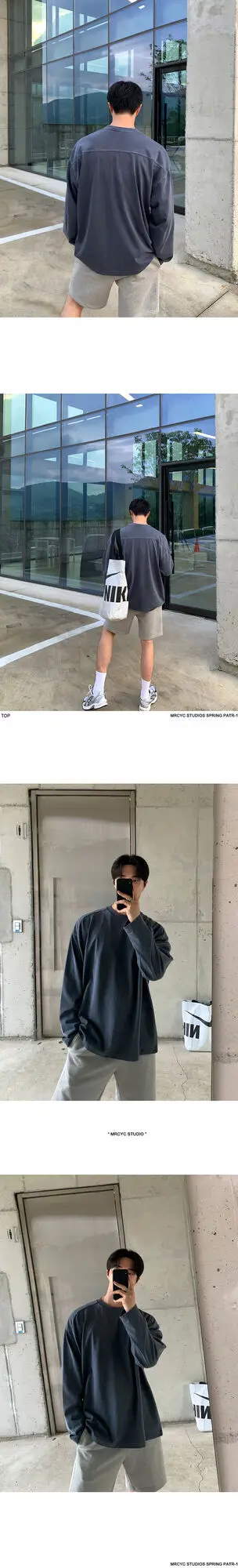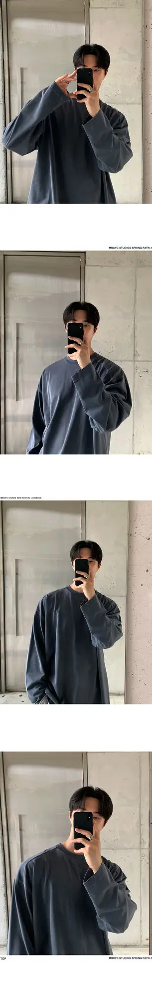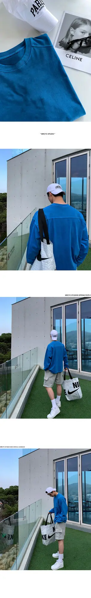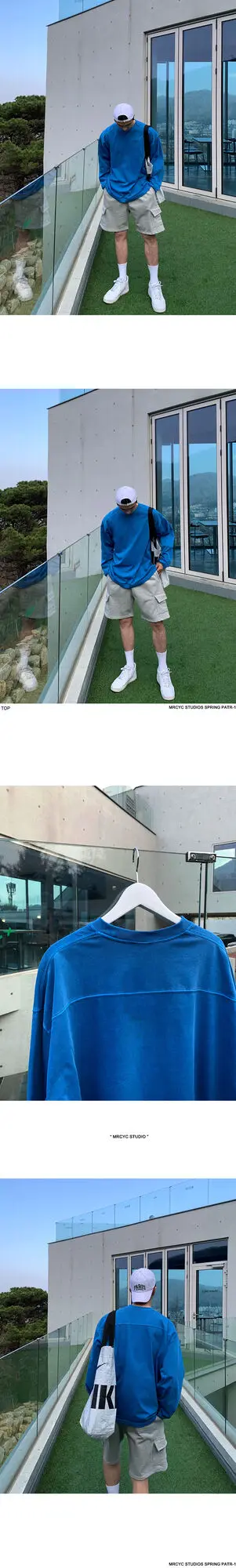 Men's Long Sleeve T-shirts Simple Casual Pullover Stylish Male Spring Loose Solid Color New Korean Trendy Round Neck 9W1455
