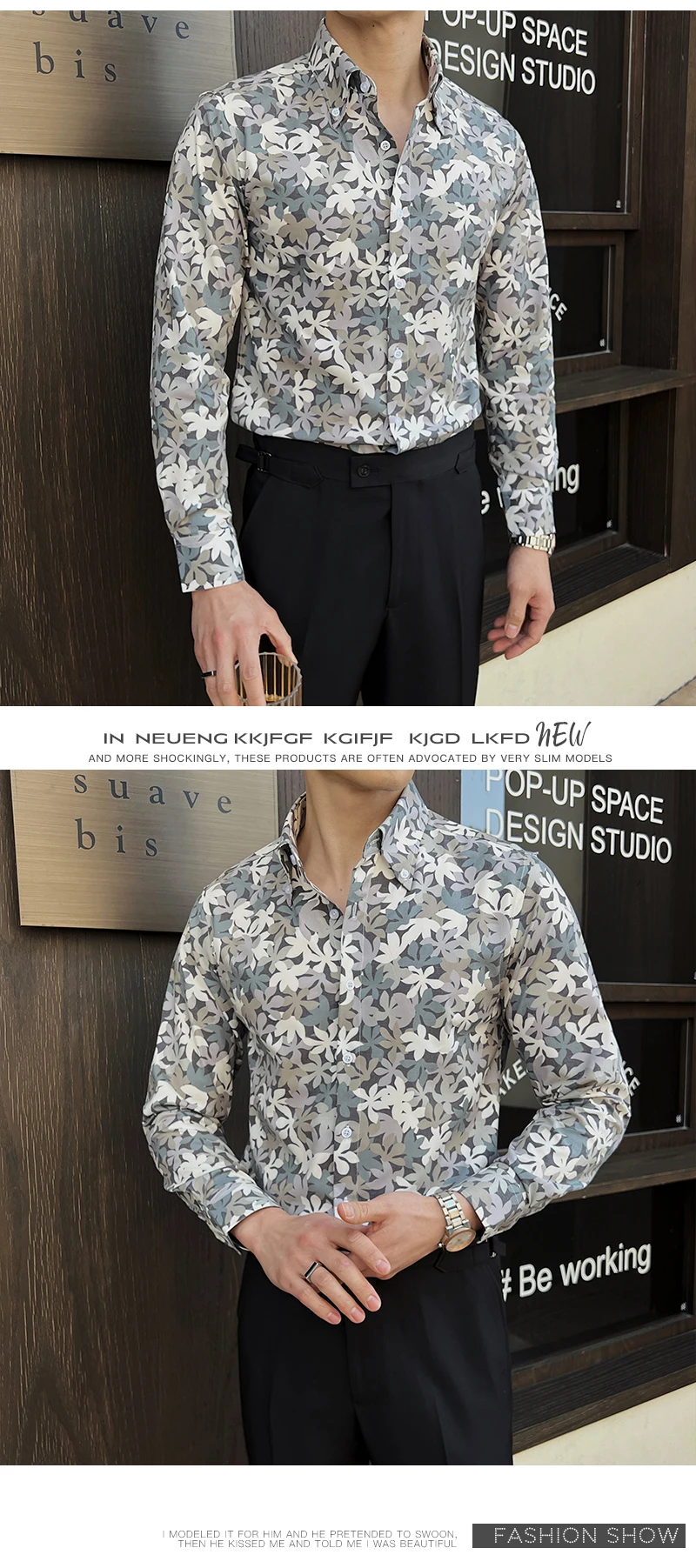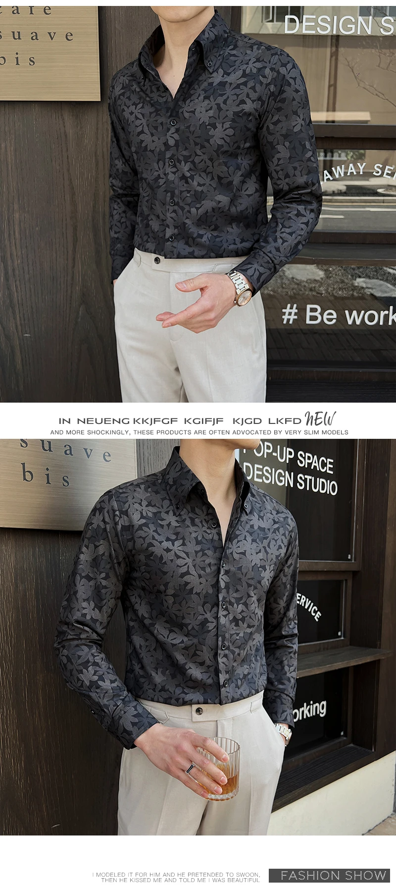 Men's Long Sleeved Shirt New Korean Printed Stylish Turn-down Collar Casual Design Single Breasted Male Clothing 9W1648