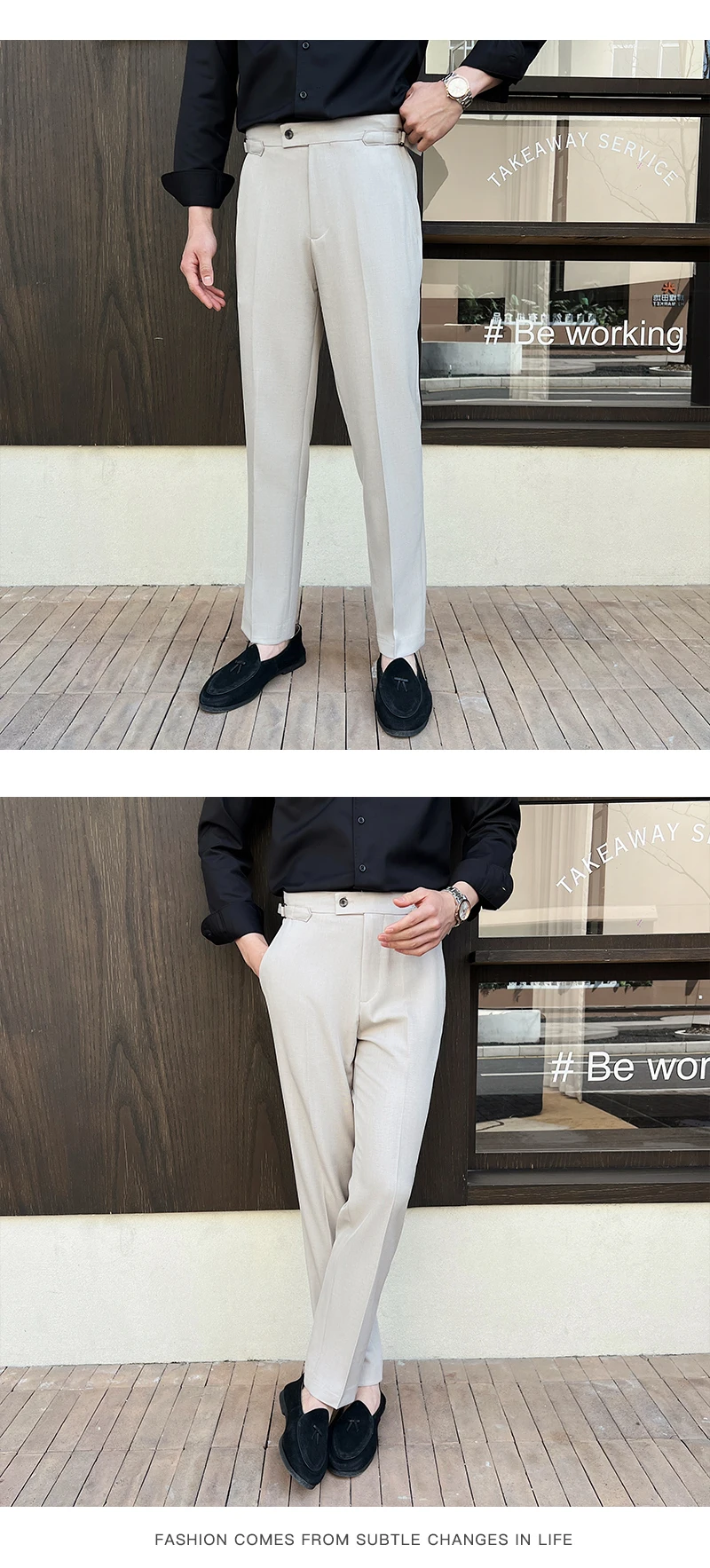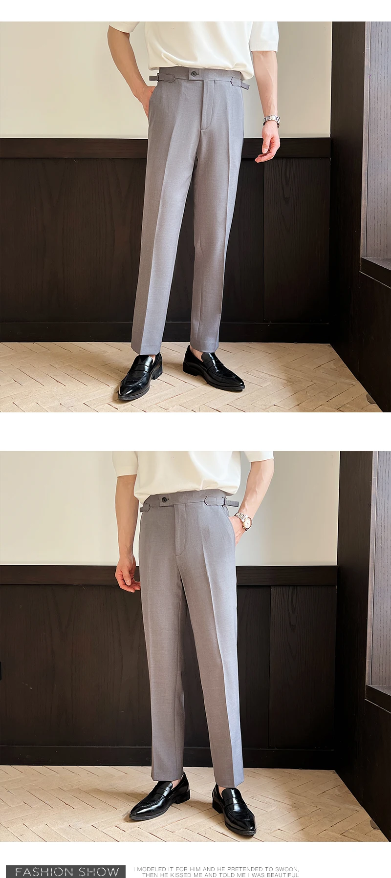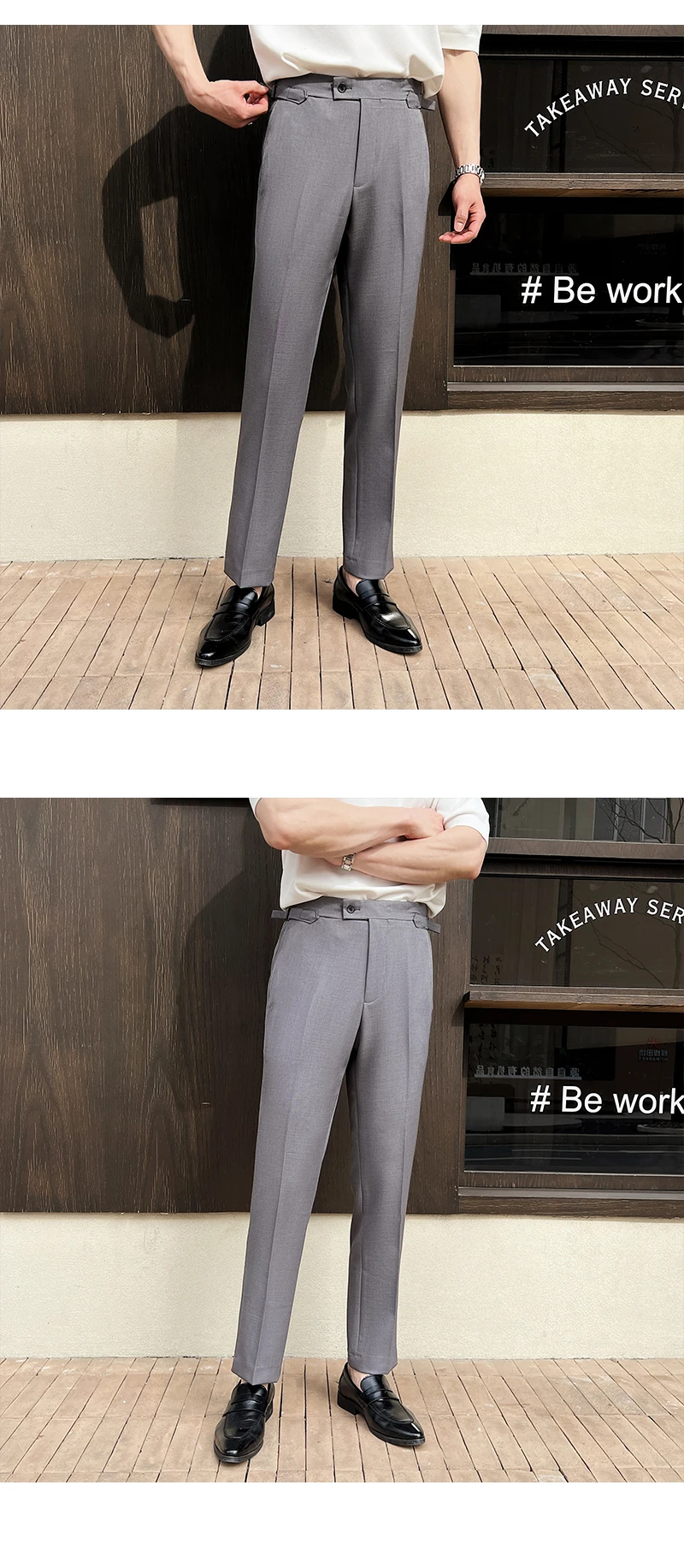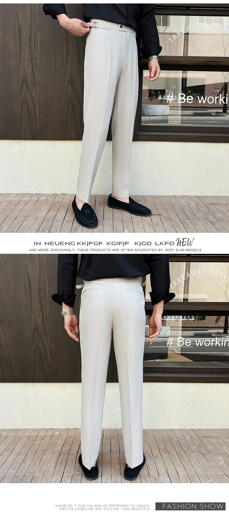 Men's New Casual Men Suit Pants Solid Color Design Groomsman's Trousers Straight Leg Male Bottoms Spring 2025 9W1572