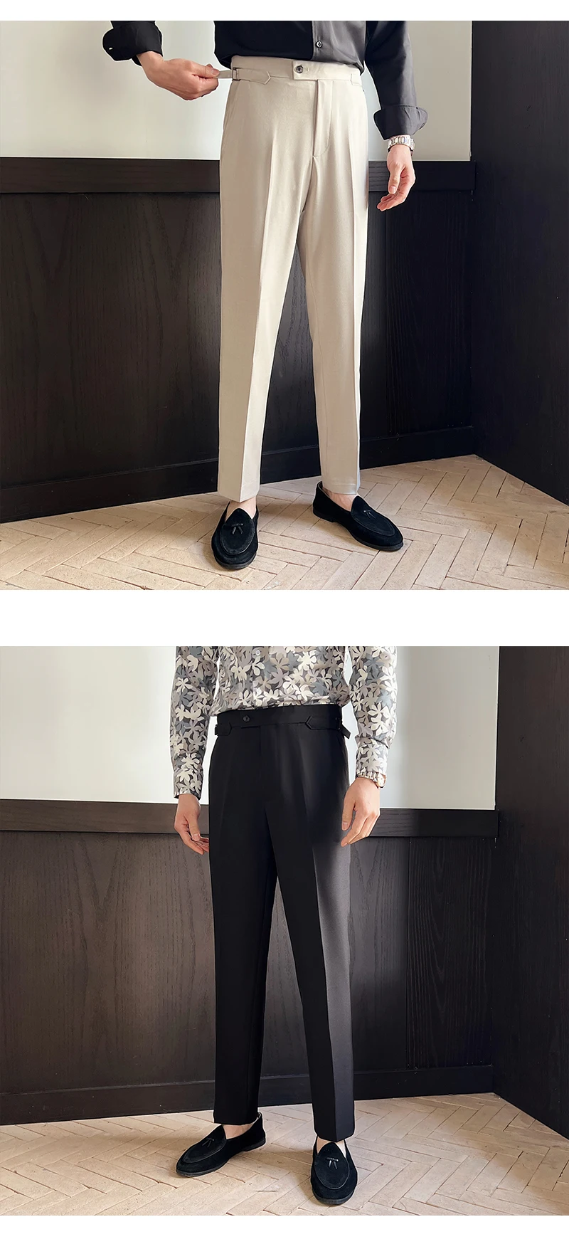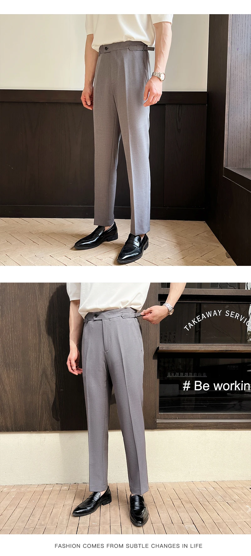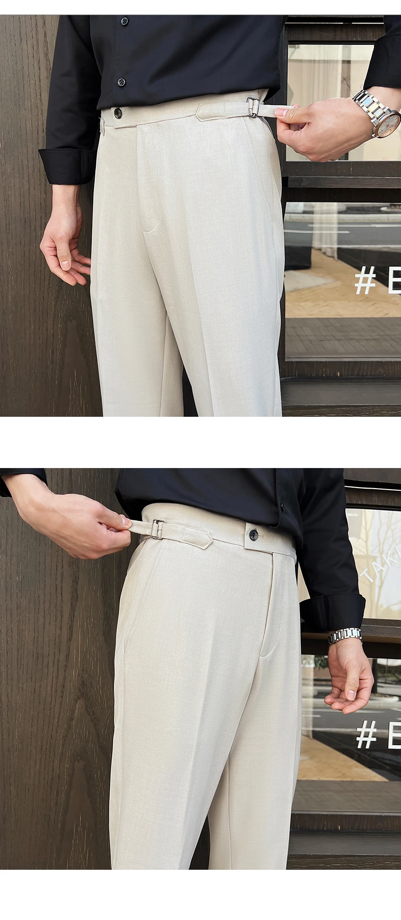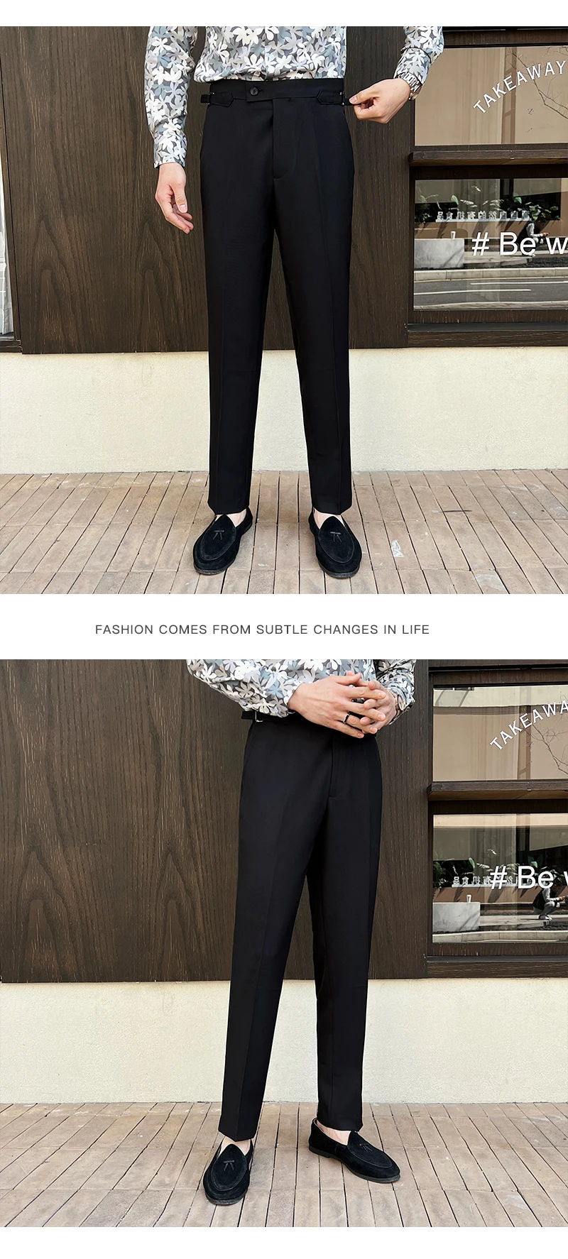 Men's New Casual Men Suit Pants Solid Color Design Groomsman's Trousers Straight Leg Male Bottoms Spring 2025 9W1572