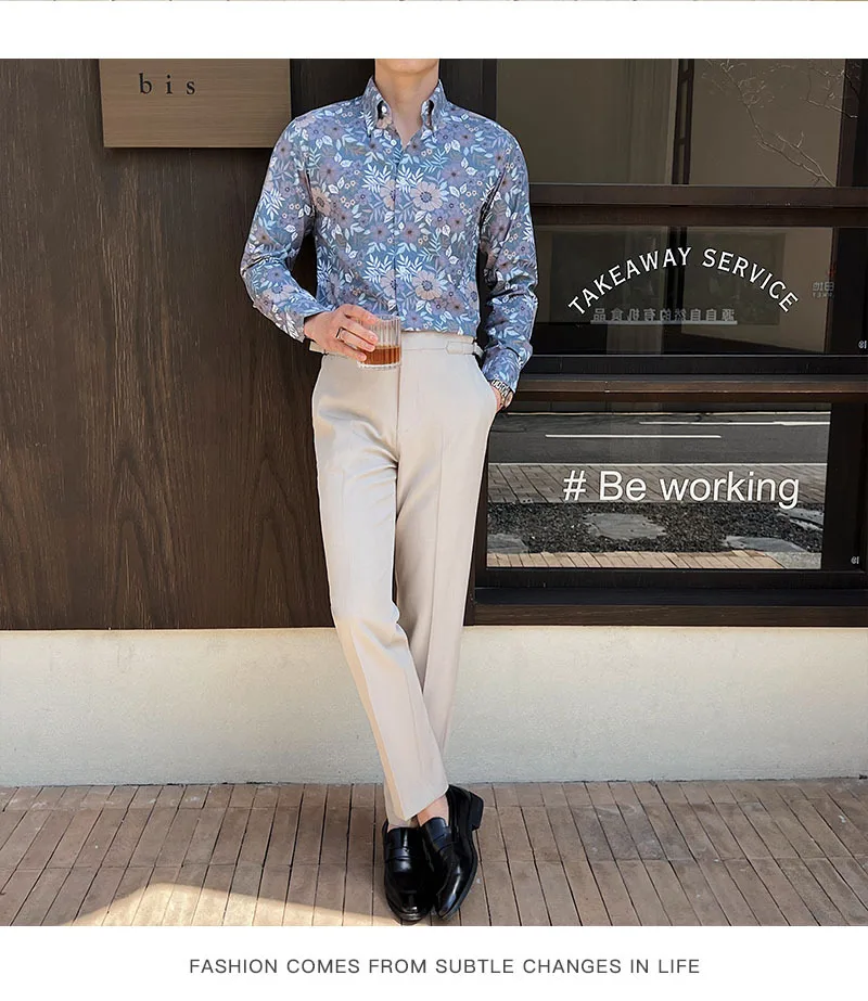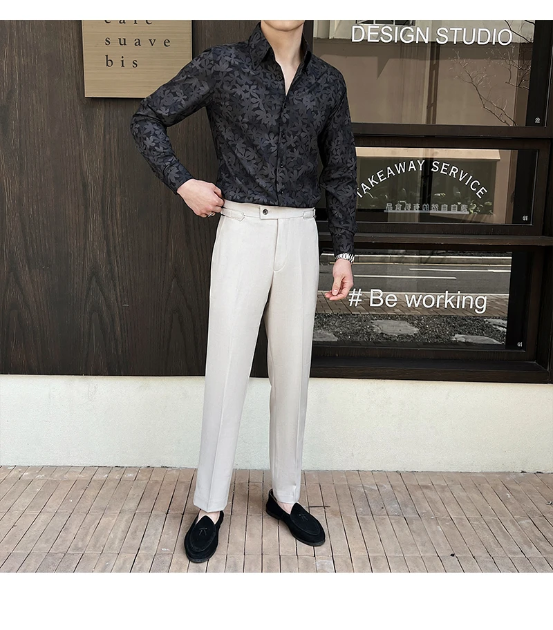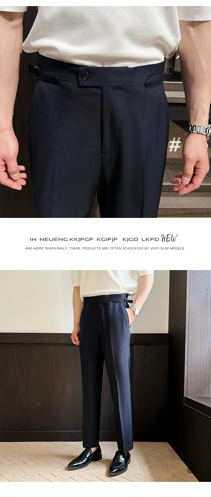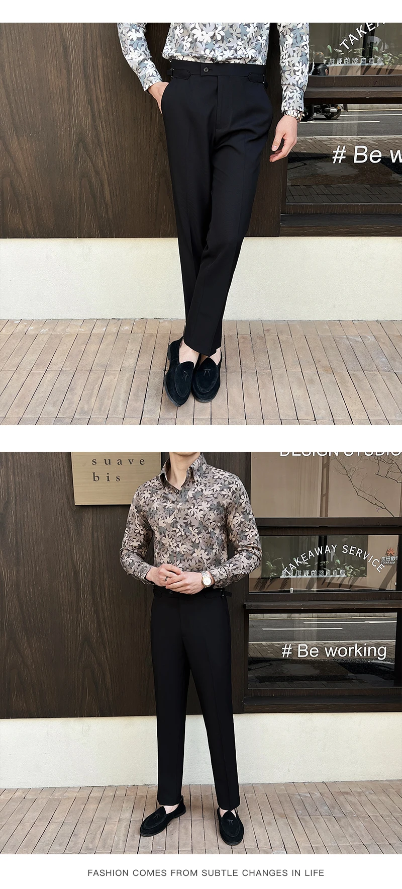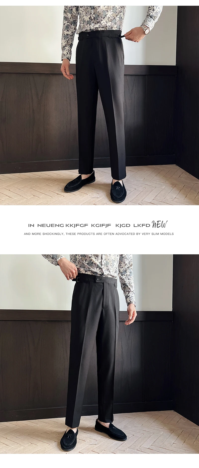 Men's New Casual Men Suit Pants Solid Color Design Groomsman's Trousers Straight Leg Male Bottoms Spring 2025 9W1572
