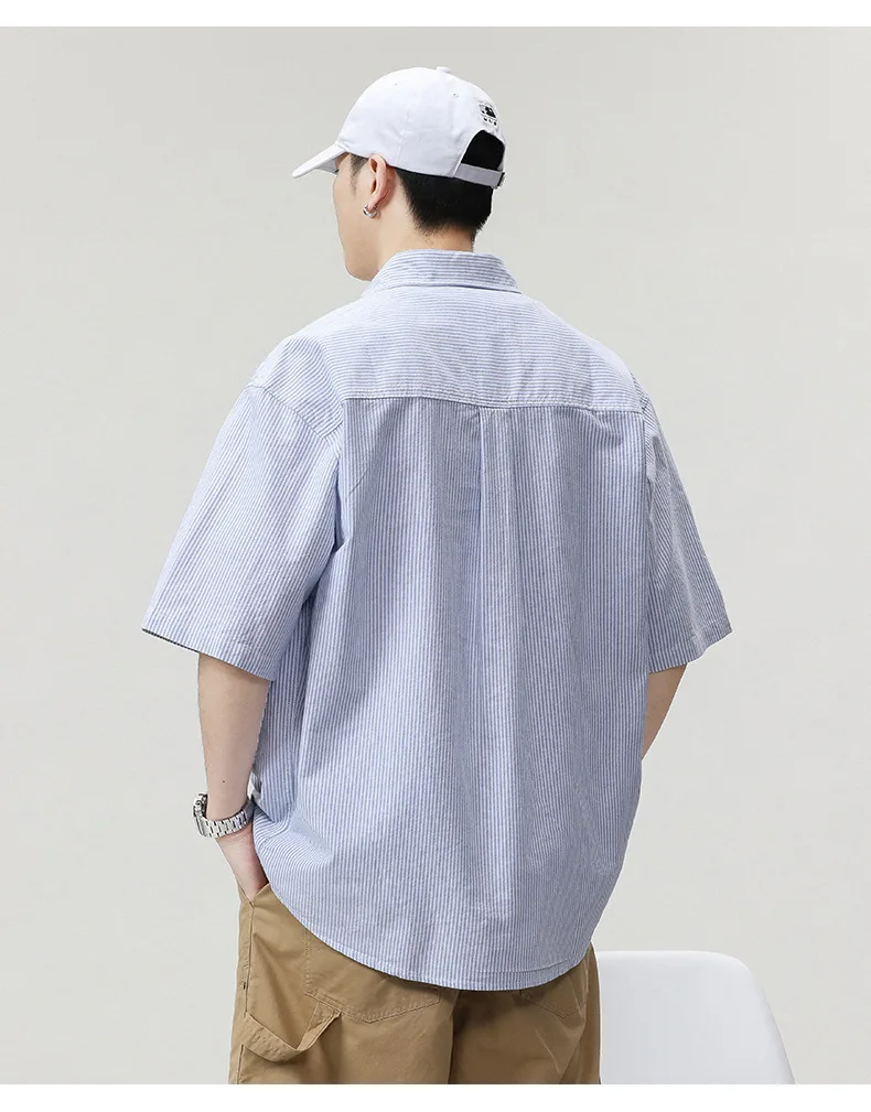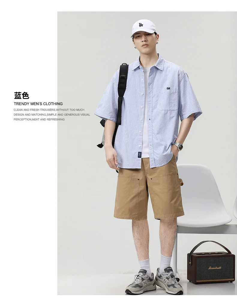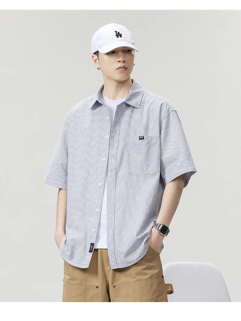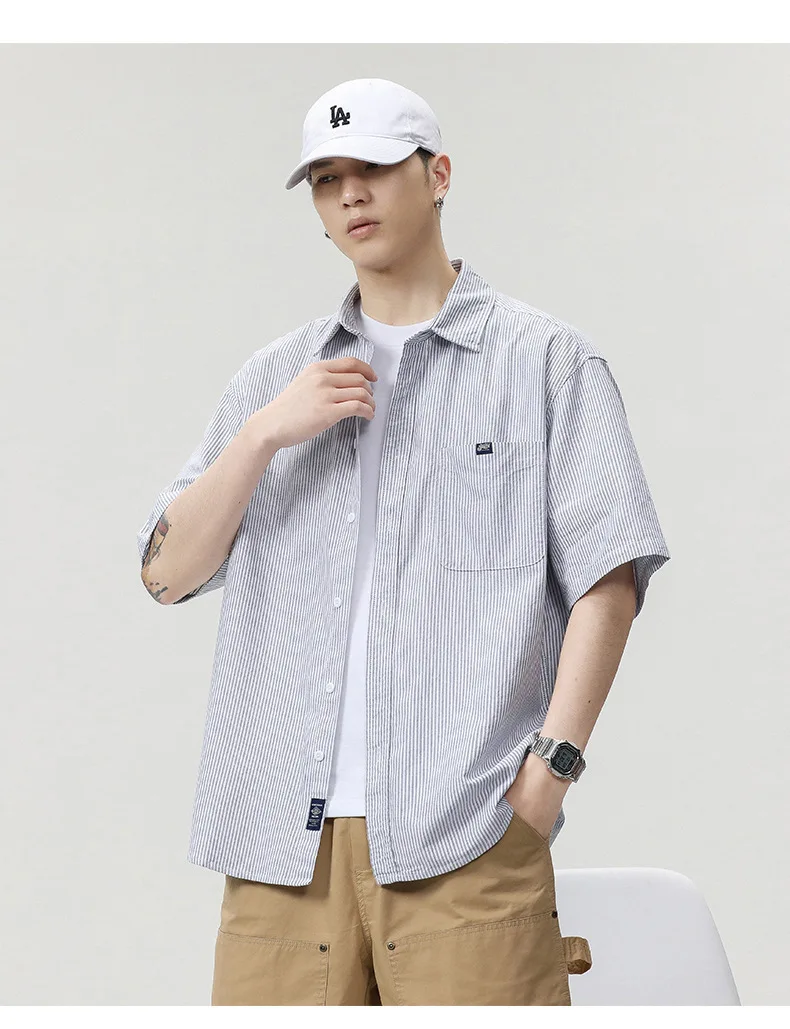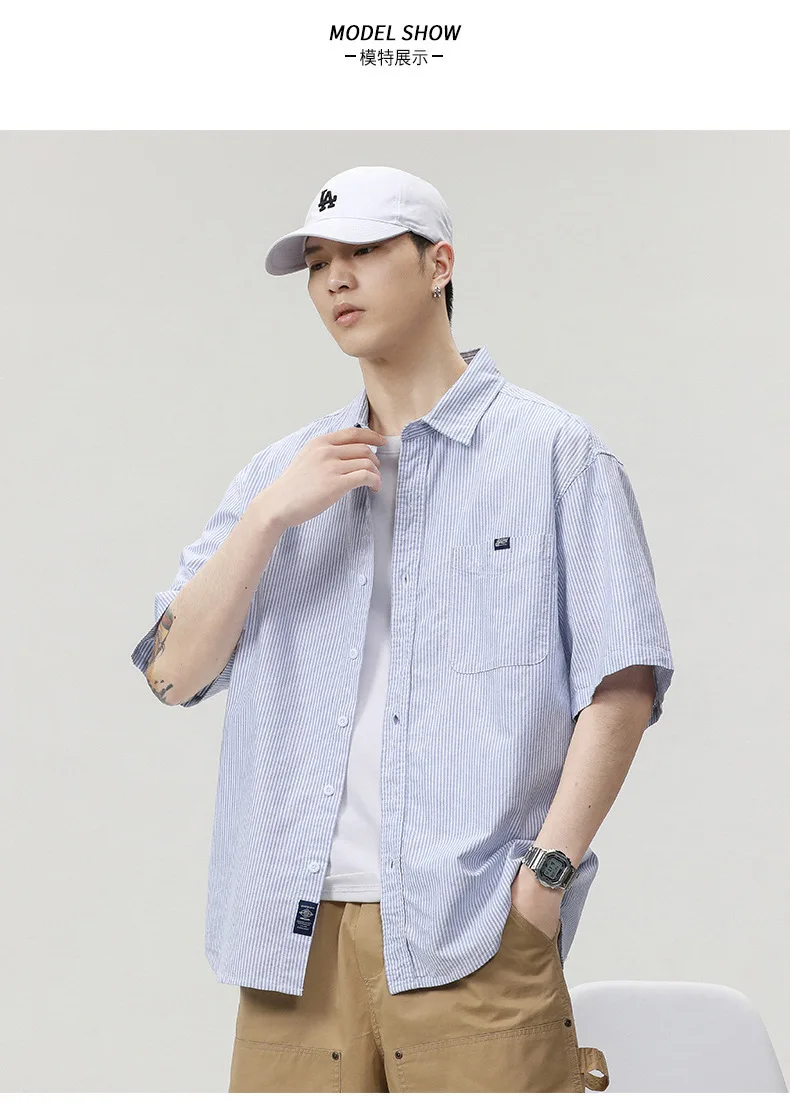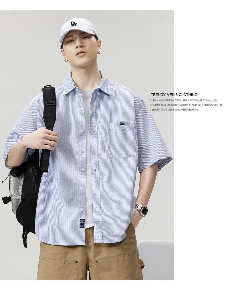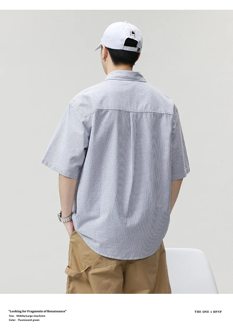 Men's Shirt Striped Turn-down Collar Thin Style Casual Lapel Shirts New Trendy Summer Japanese Style Male Top 9W1314