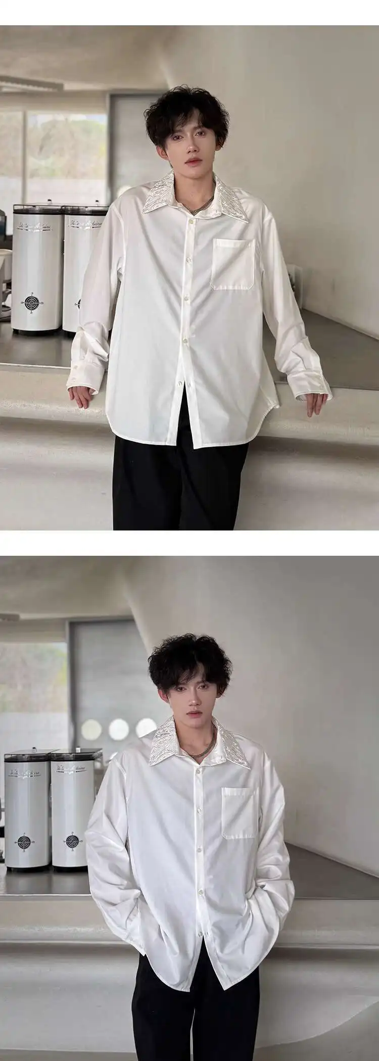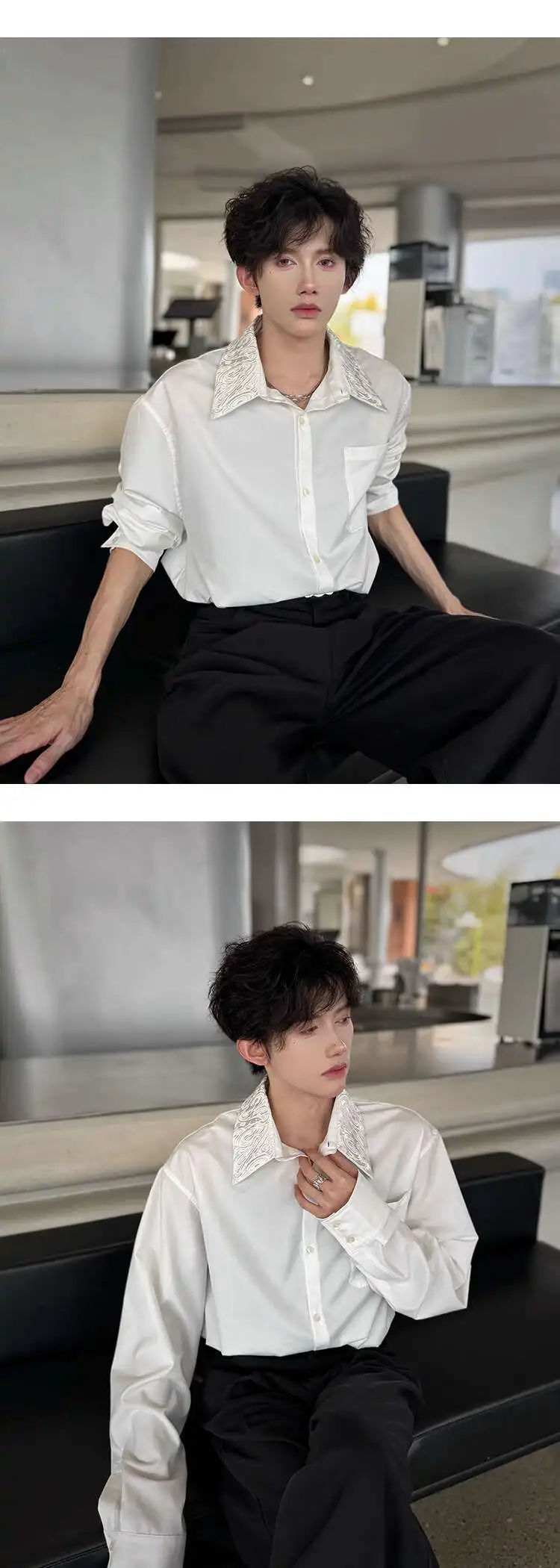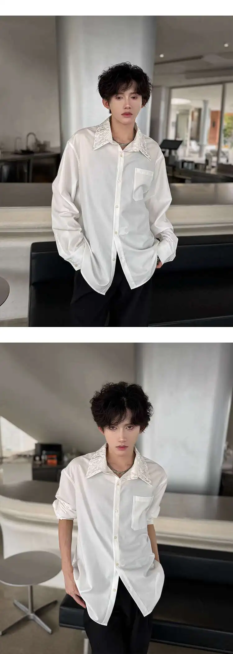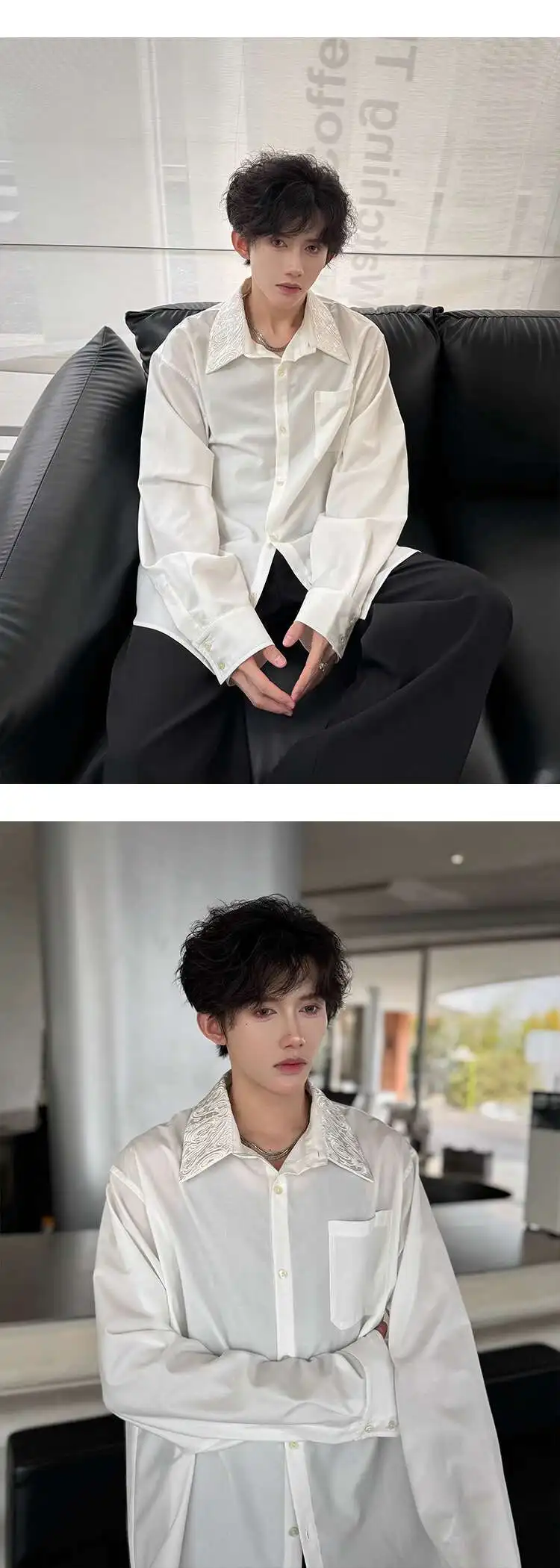 Men's Shirts Long Sleeve New Summer Embroidered Design Turn-down Collar Personalized Male Korean Style Clothing 9W1755