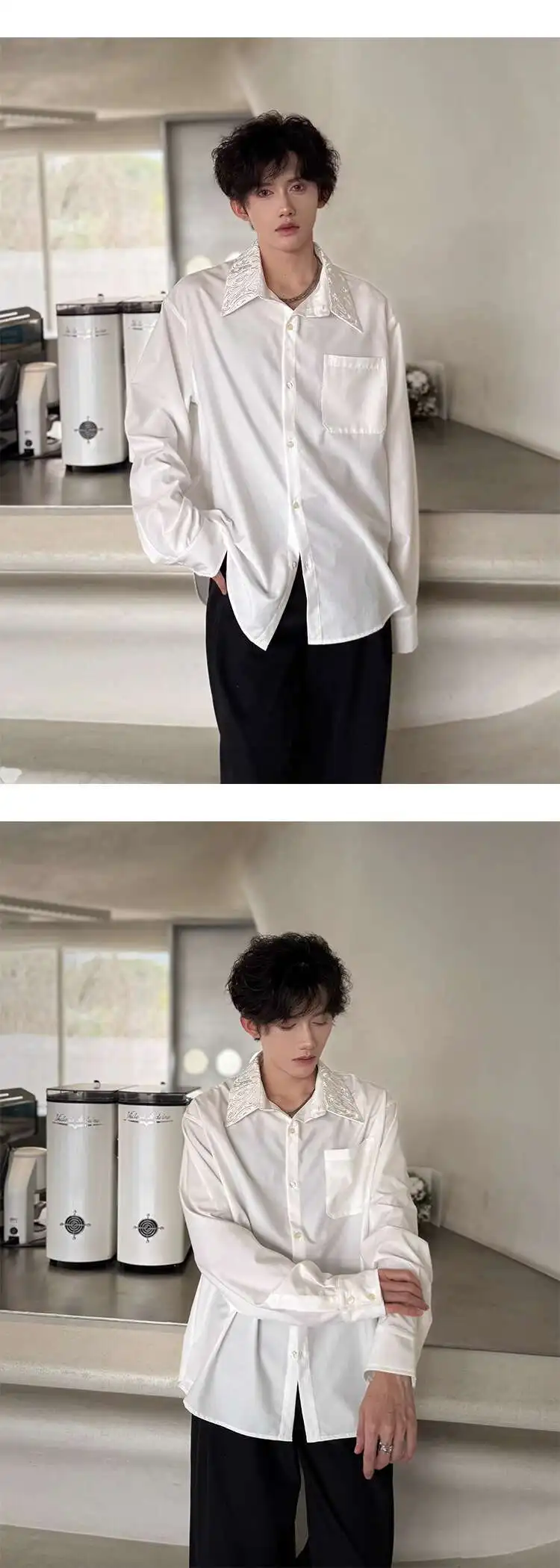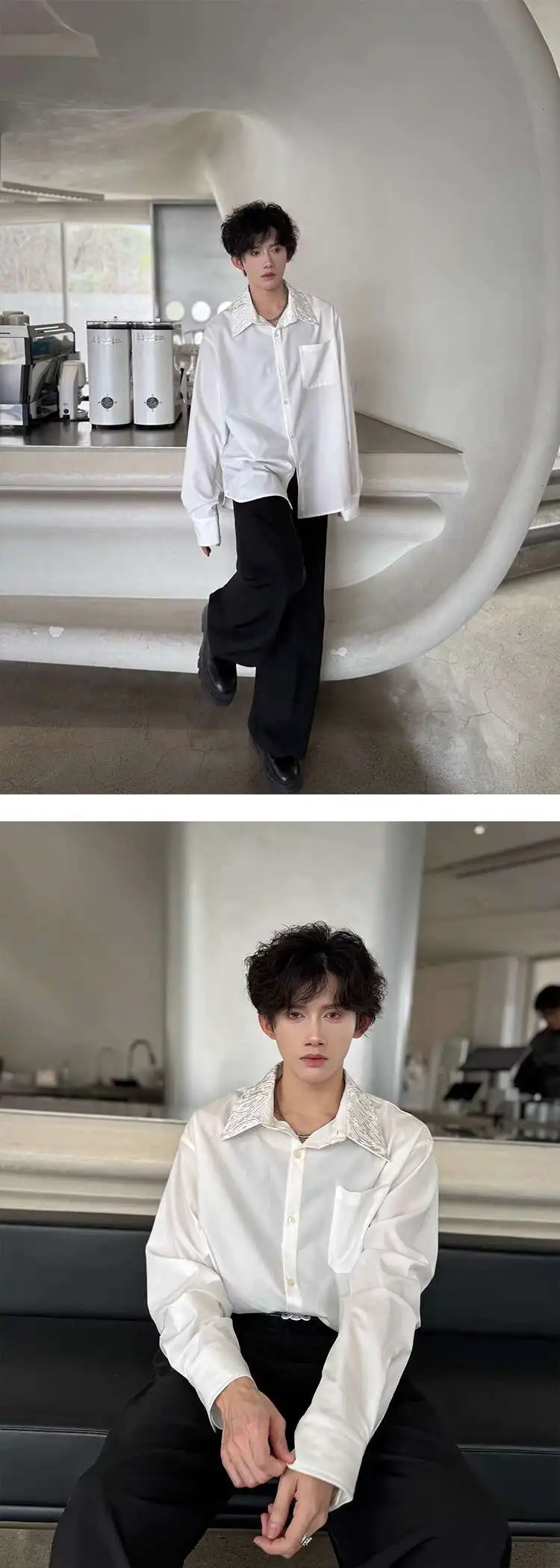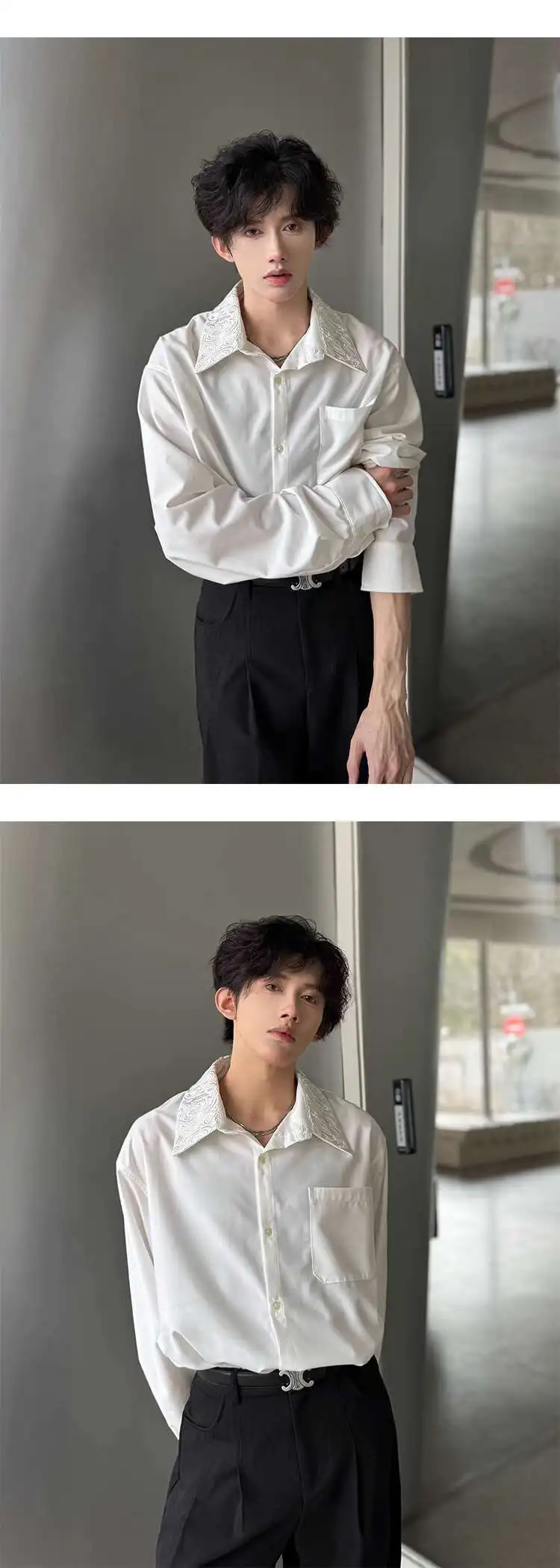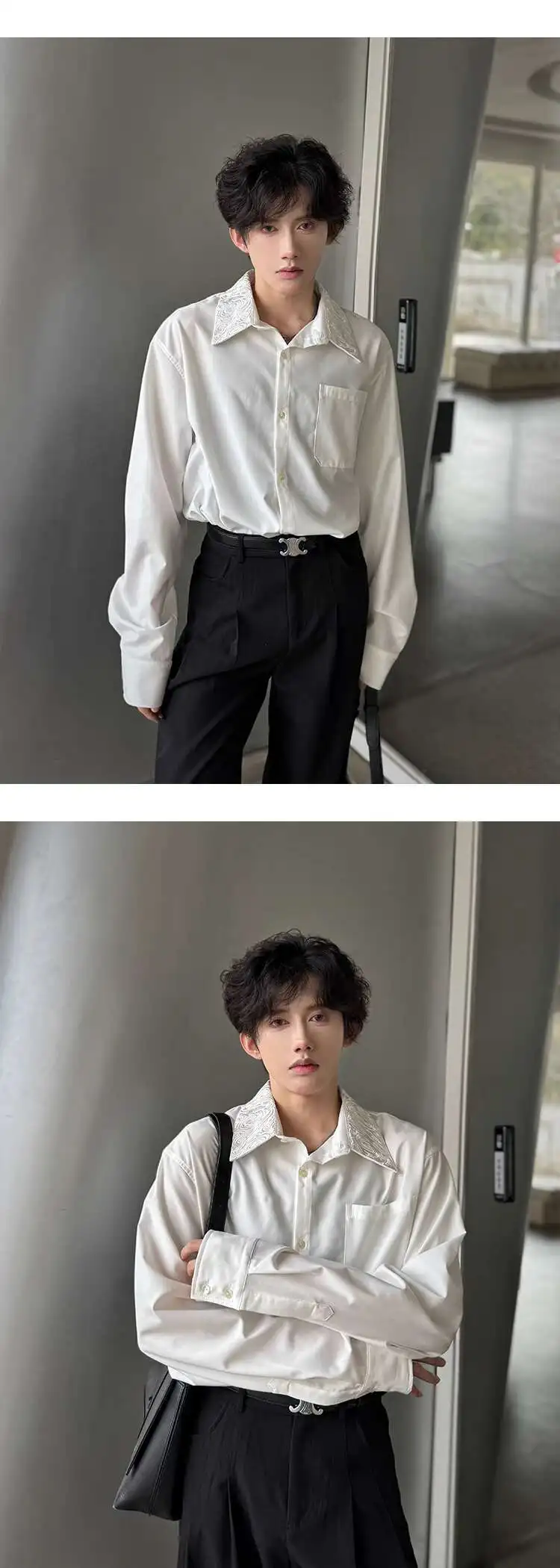 Men's Shirts Long Sleeve New Summer Embroidered Design Turn-down Collar Personalized Male Korean Style Clothing 9W1755