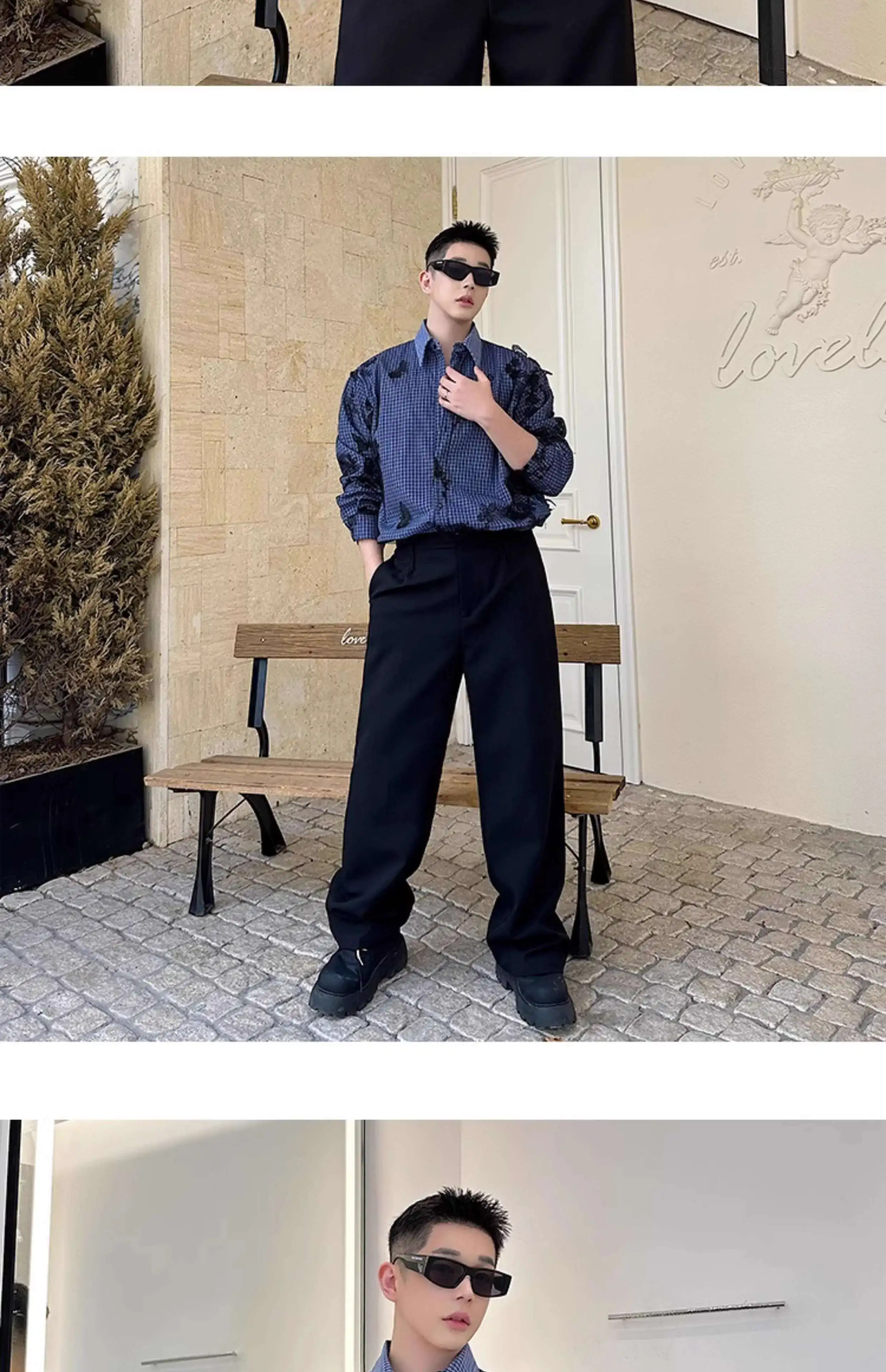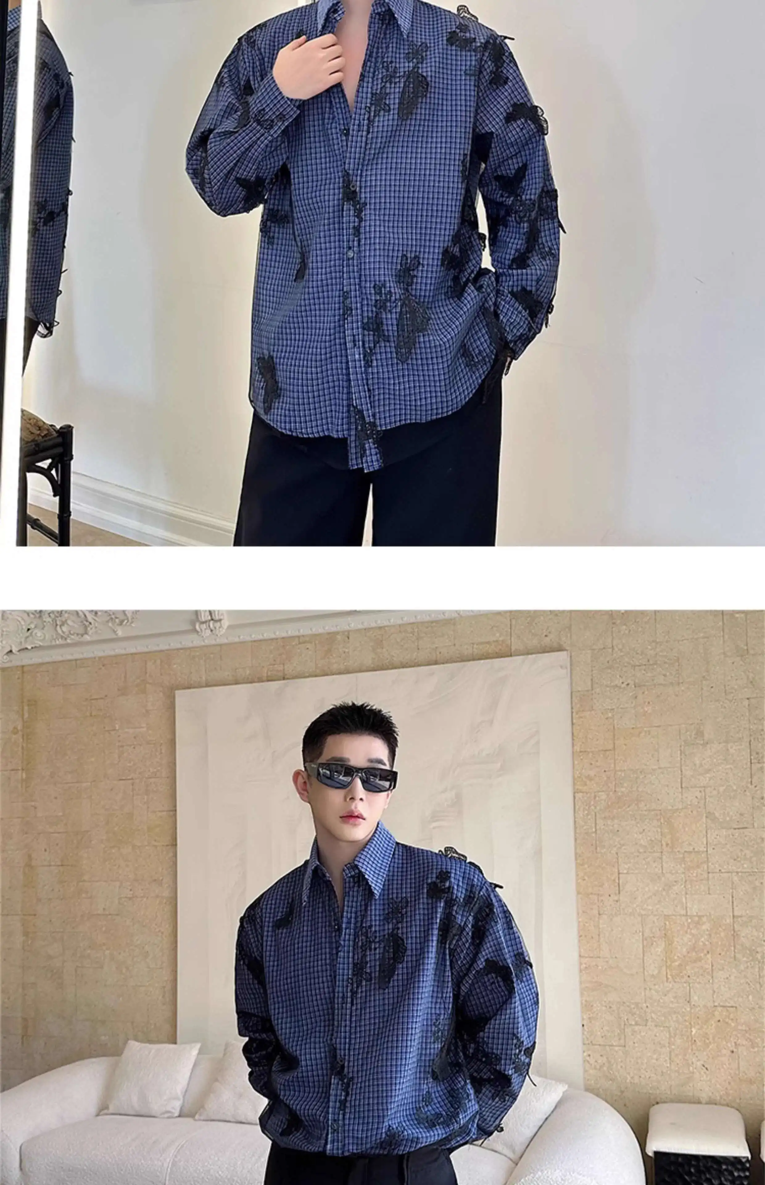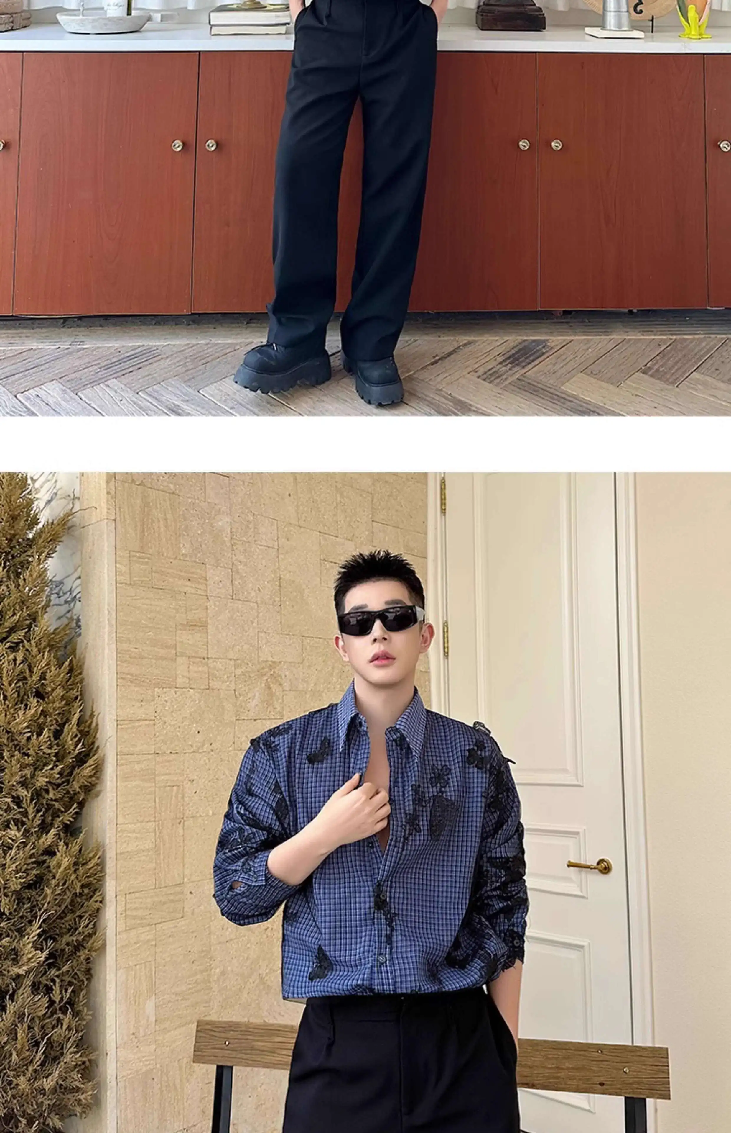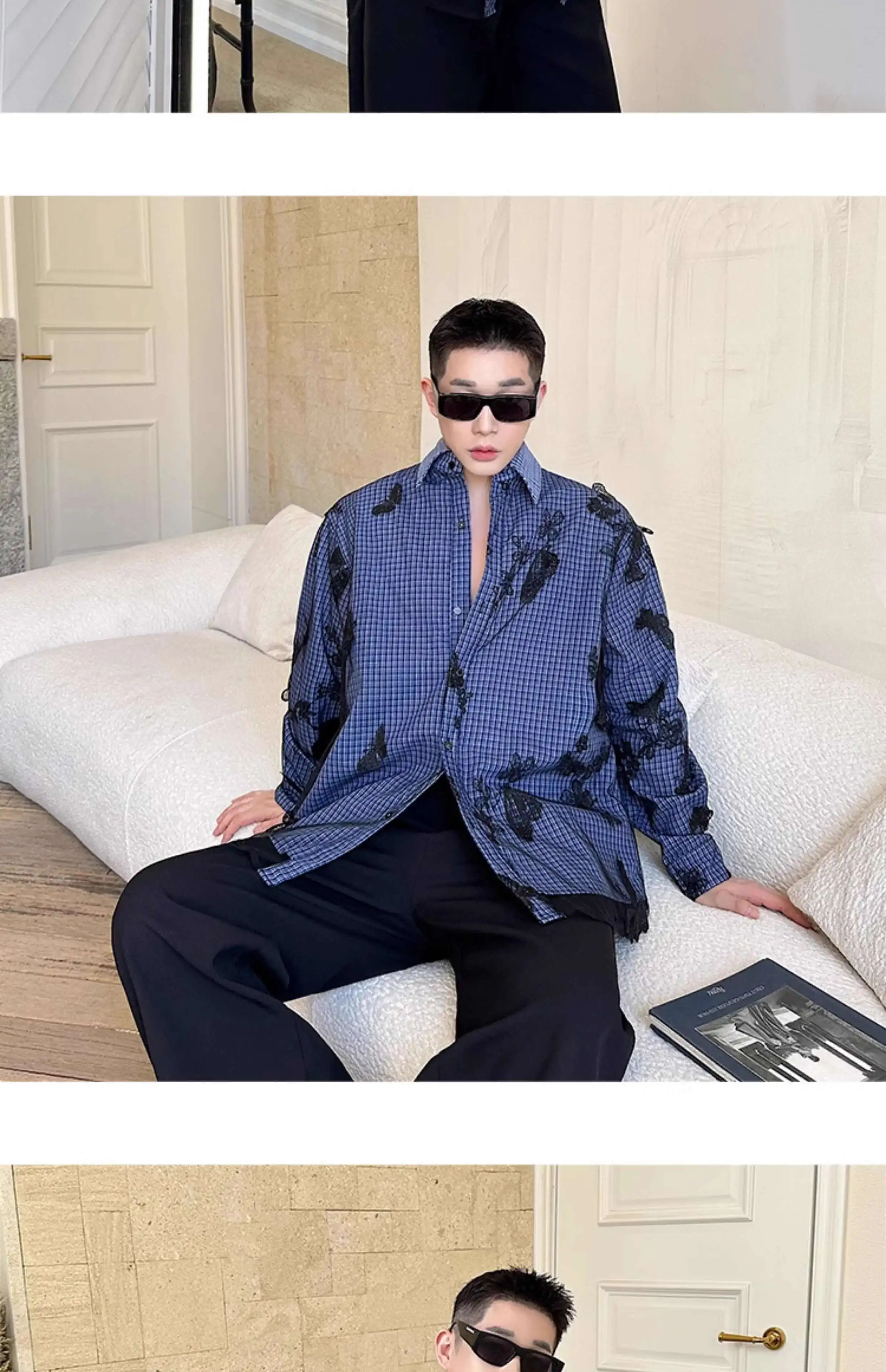 Men's Shirts Long Sleeve Two-piece Butterfly Mesh Design Threedimensional Butterfly Decoration Male Top Summer 9W1877