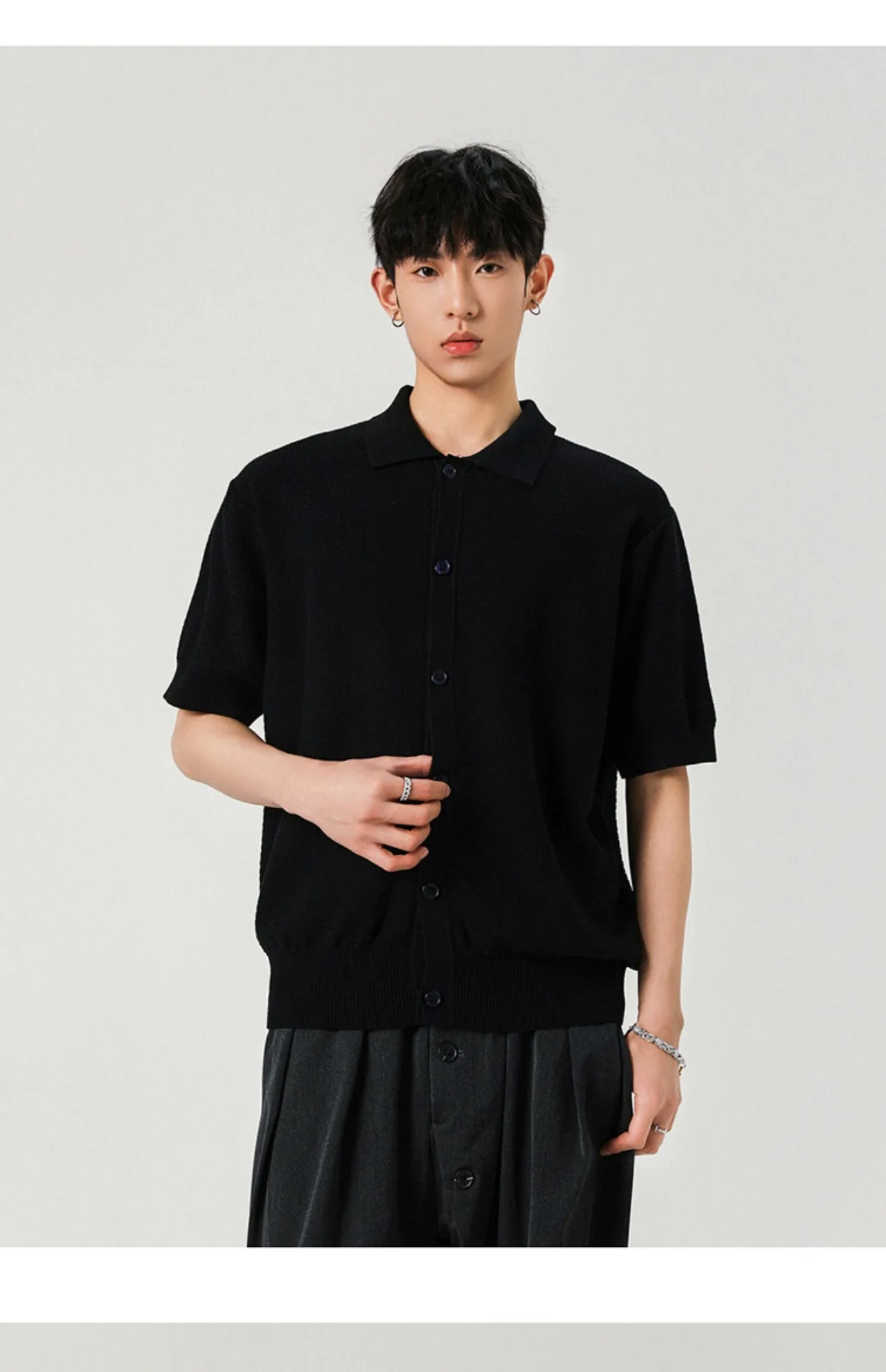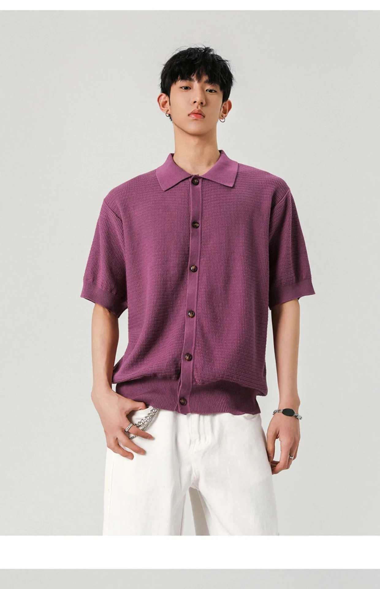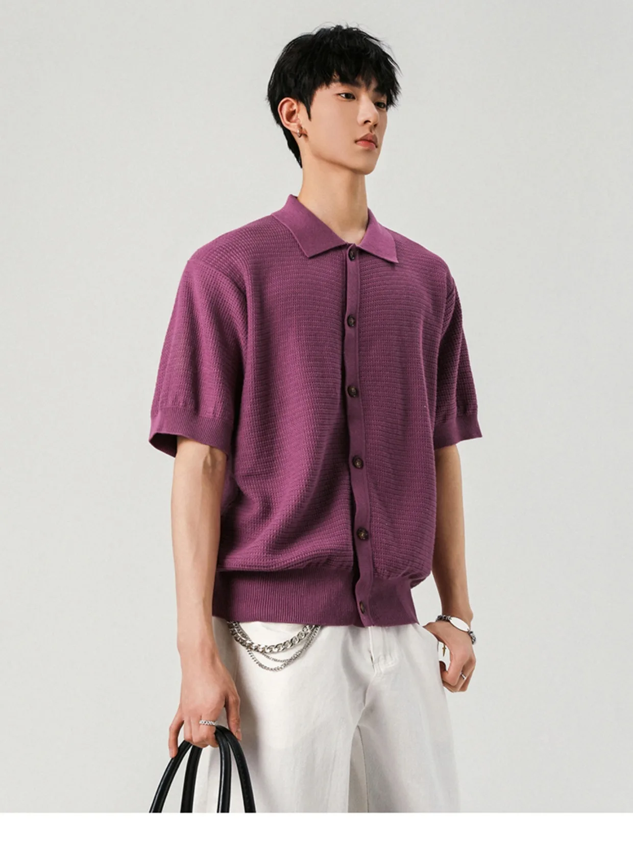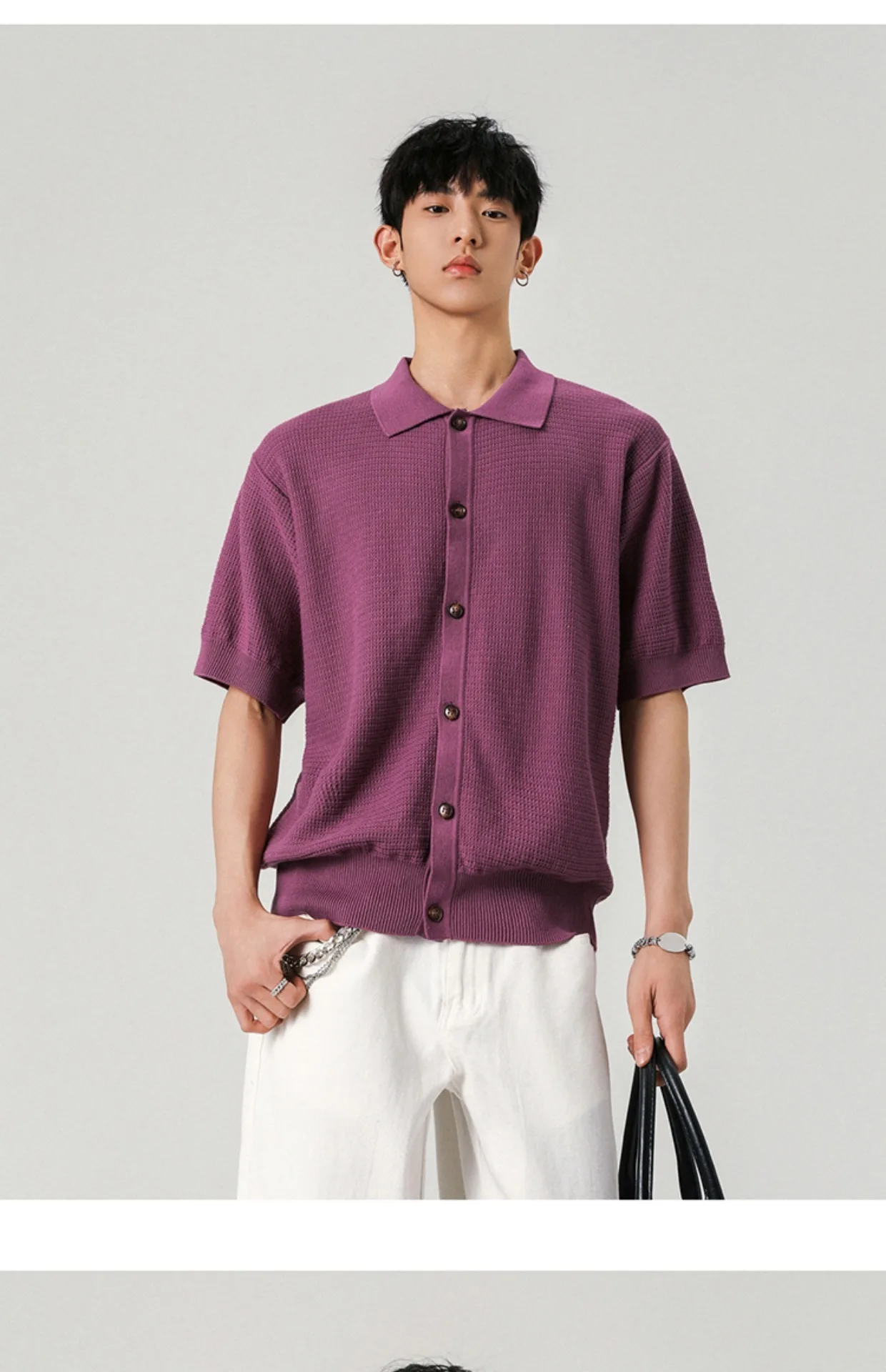 Men's Shirts New Kroean Turn-down Collar Button Tide Open Single Breasted Solid Color Short Sleeve Shirt Spring 2025 9W1384