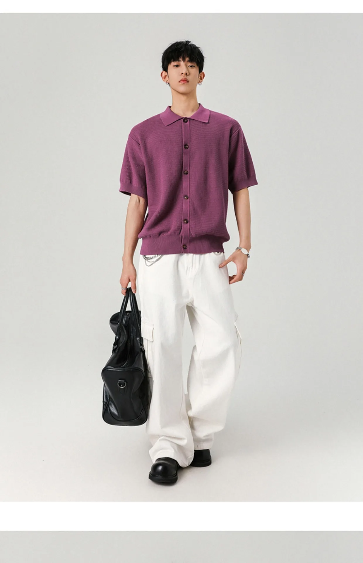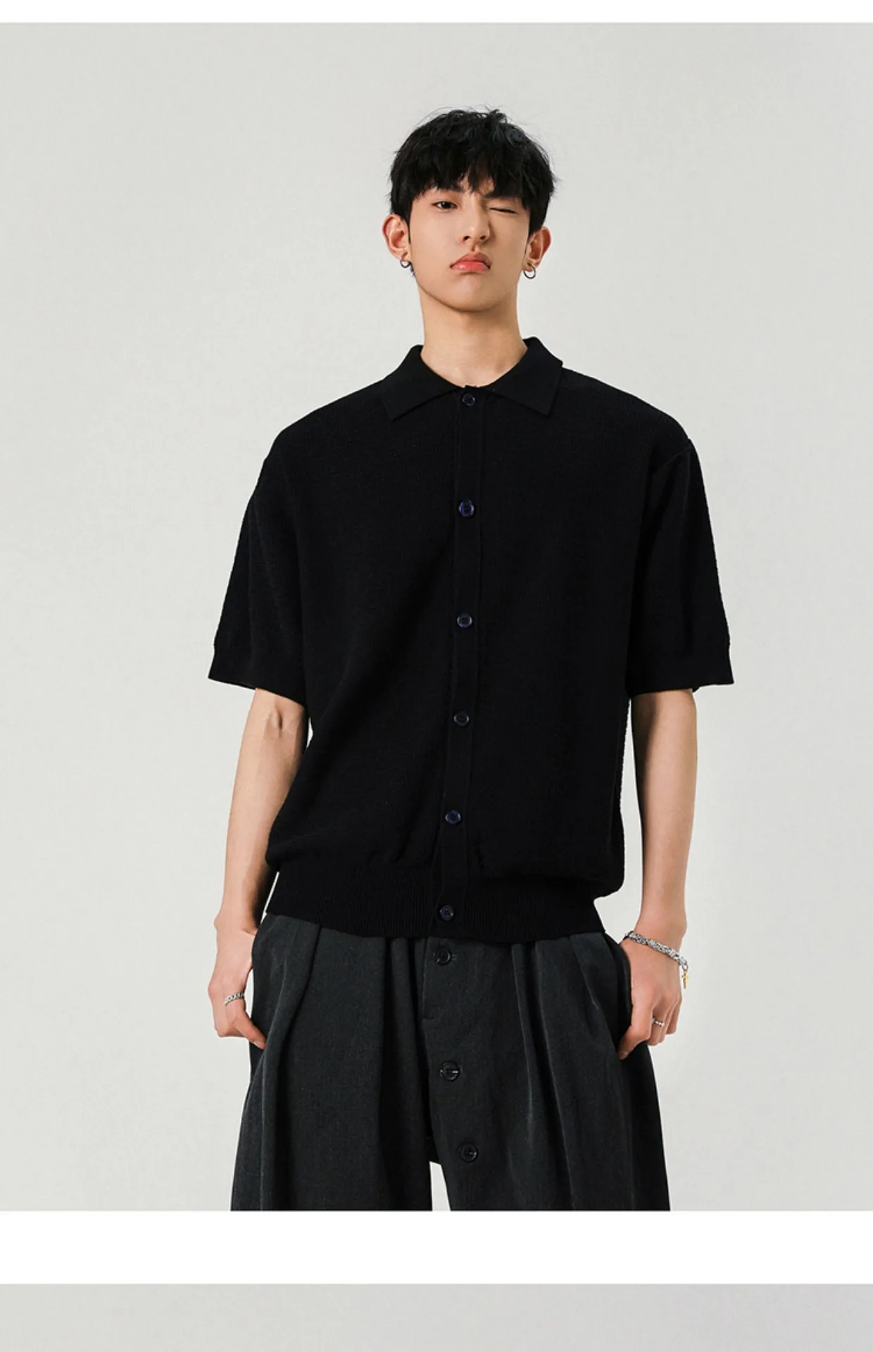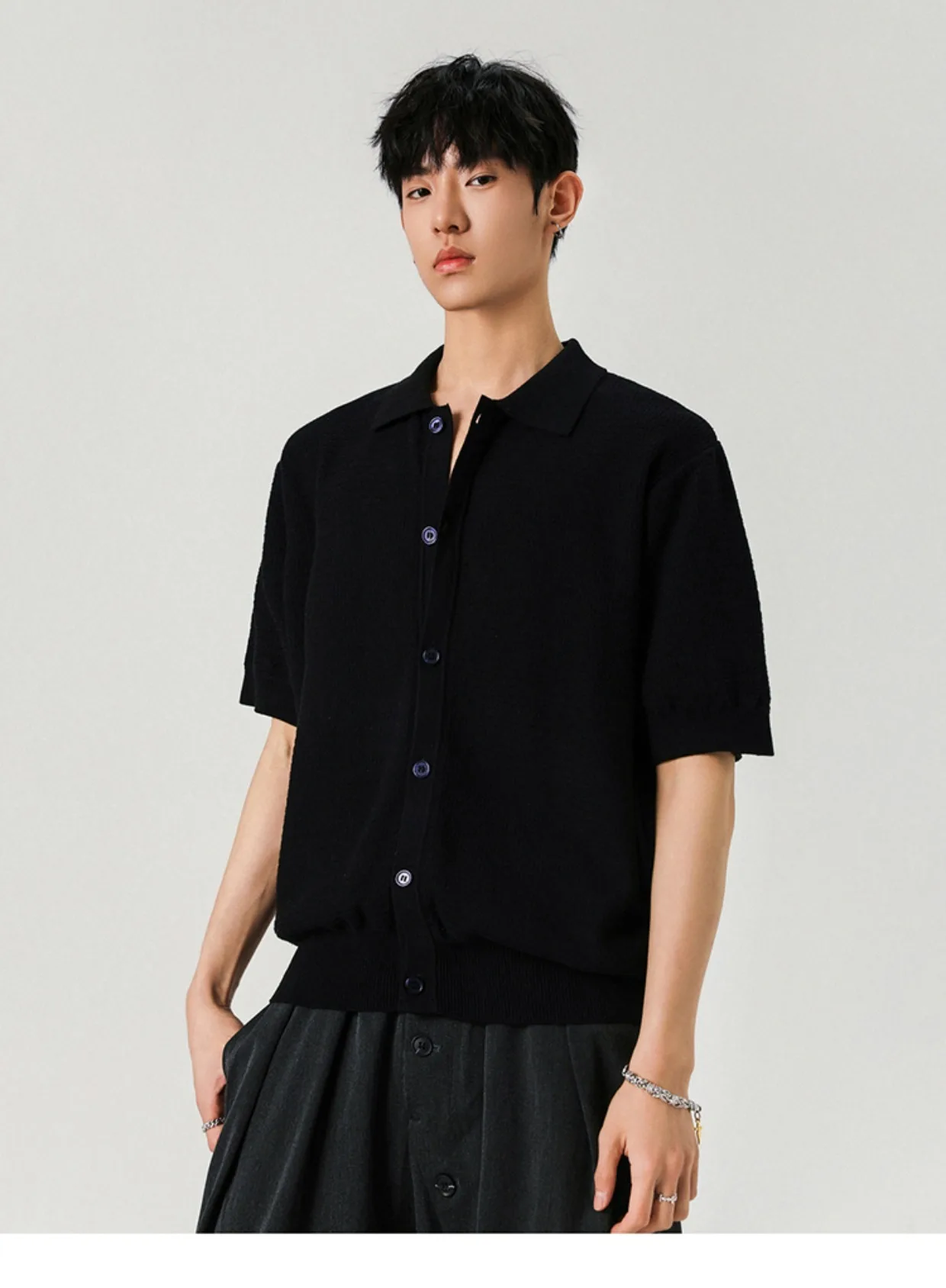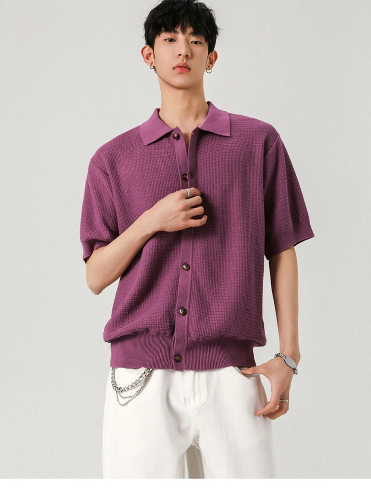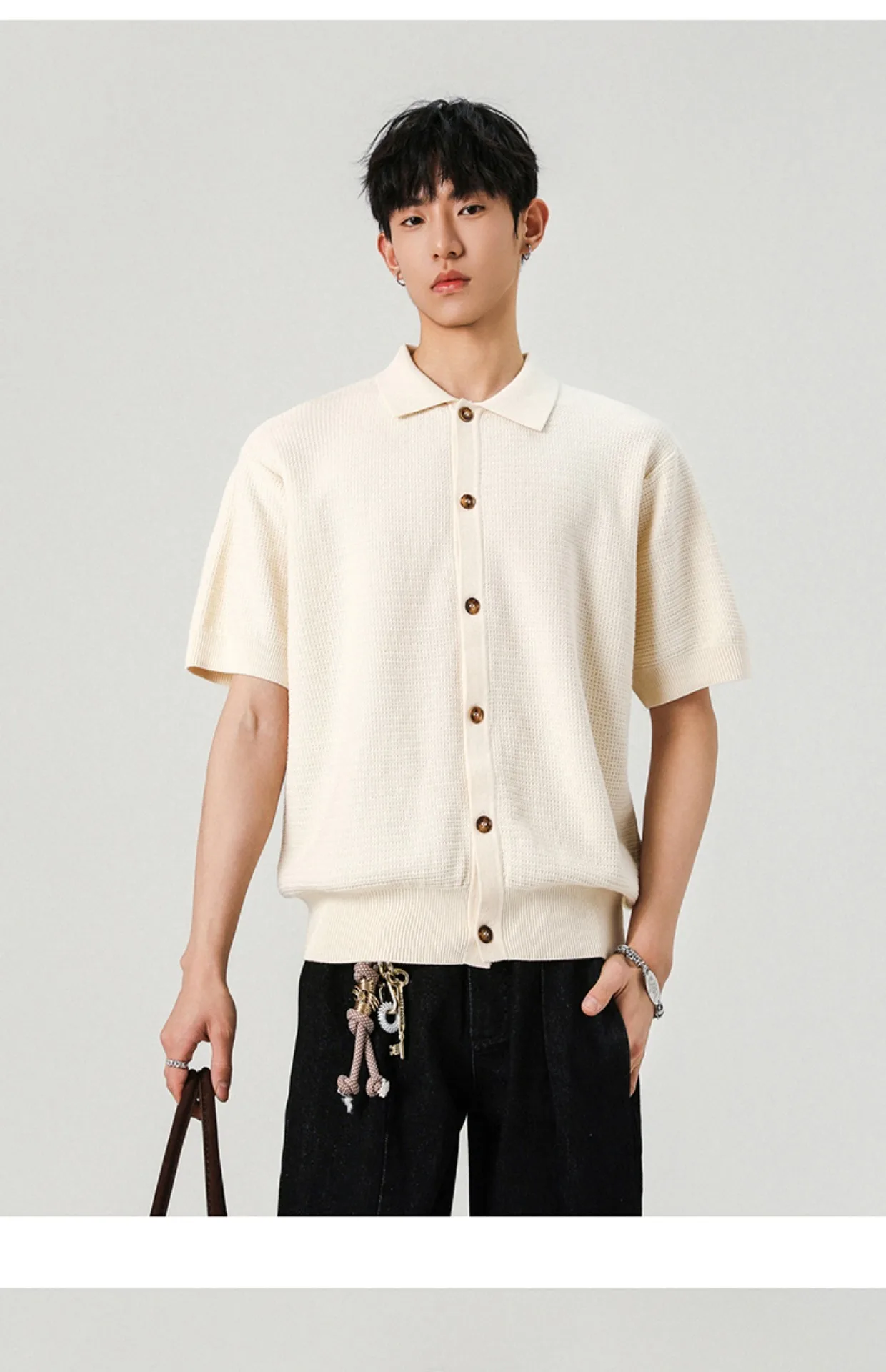 Men's Shirts New Kroean Turn-down Collar Button Tide Open Single Breasted Solid Color Short Sleeve Shirt Spring 2025 9W1384