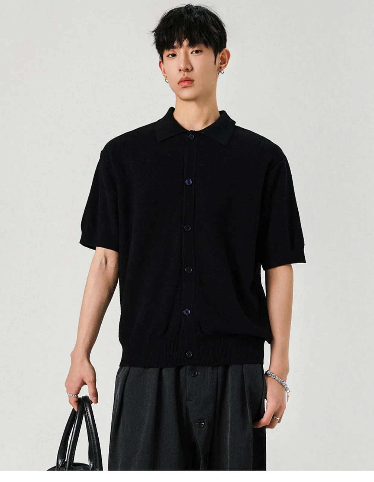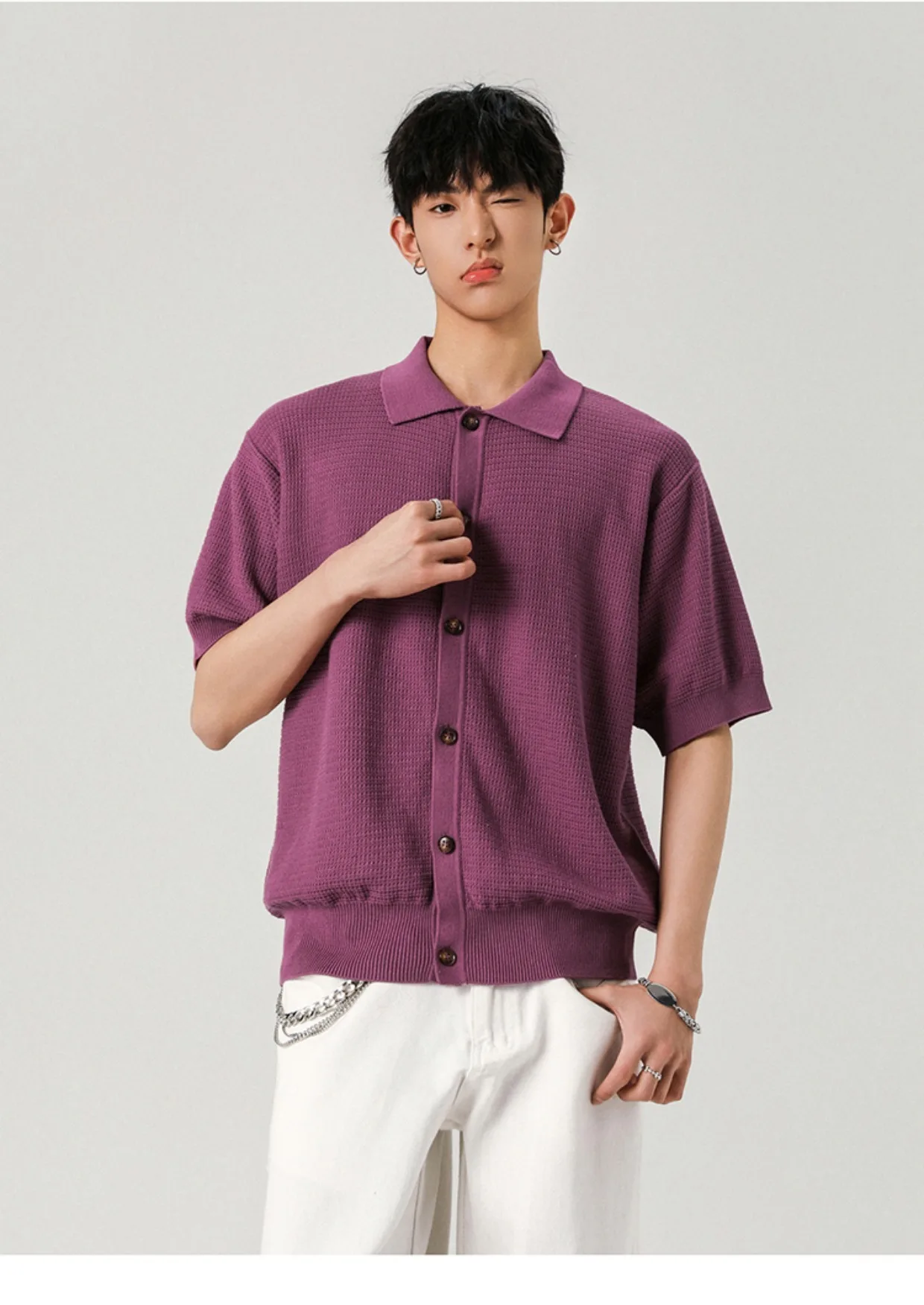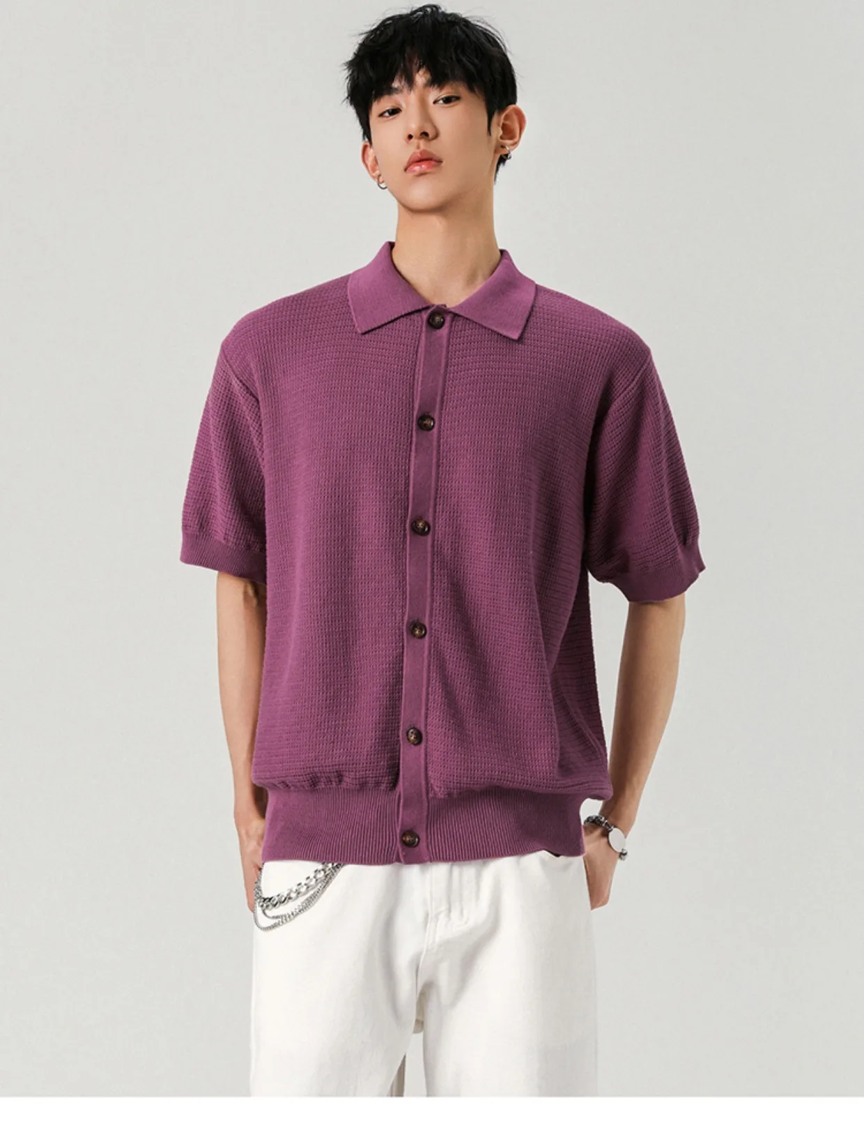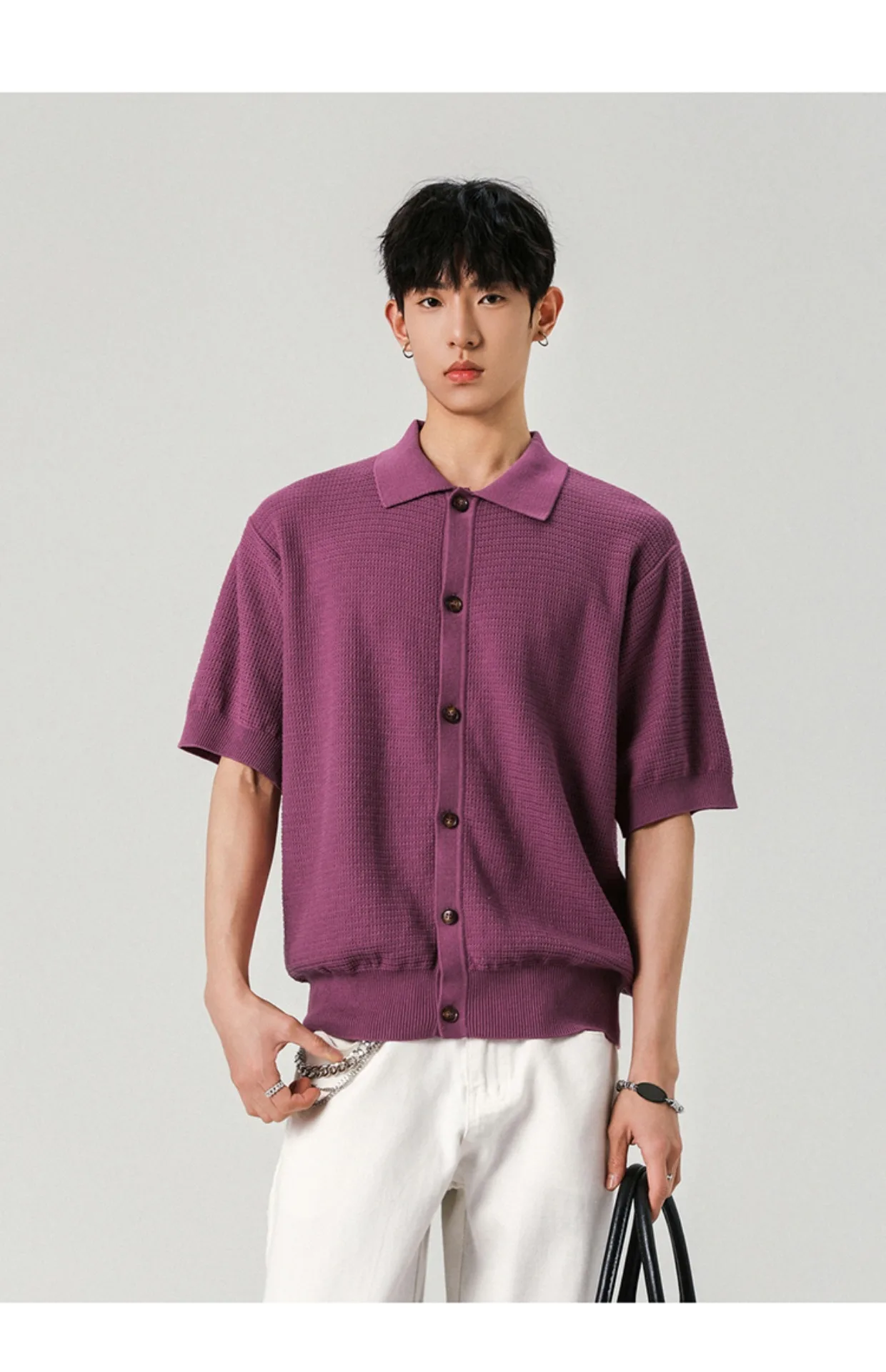 Men's Shirts New Kroean Turn-down Collar Button Tide Open Single Breasted Solid Color Short Sleeve Shirt Spring 2025 9W1384