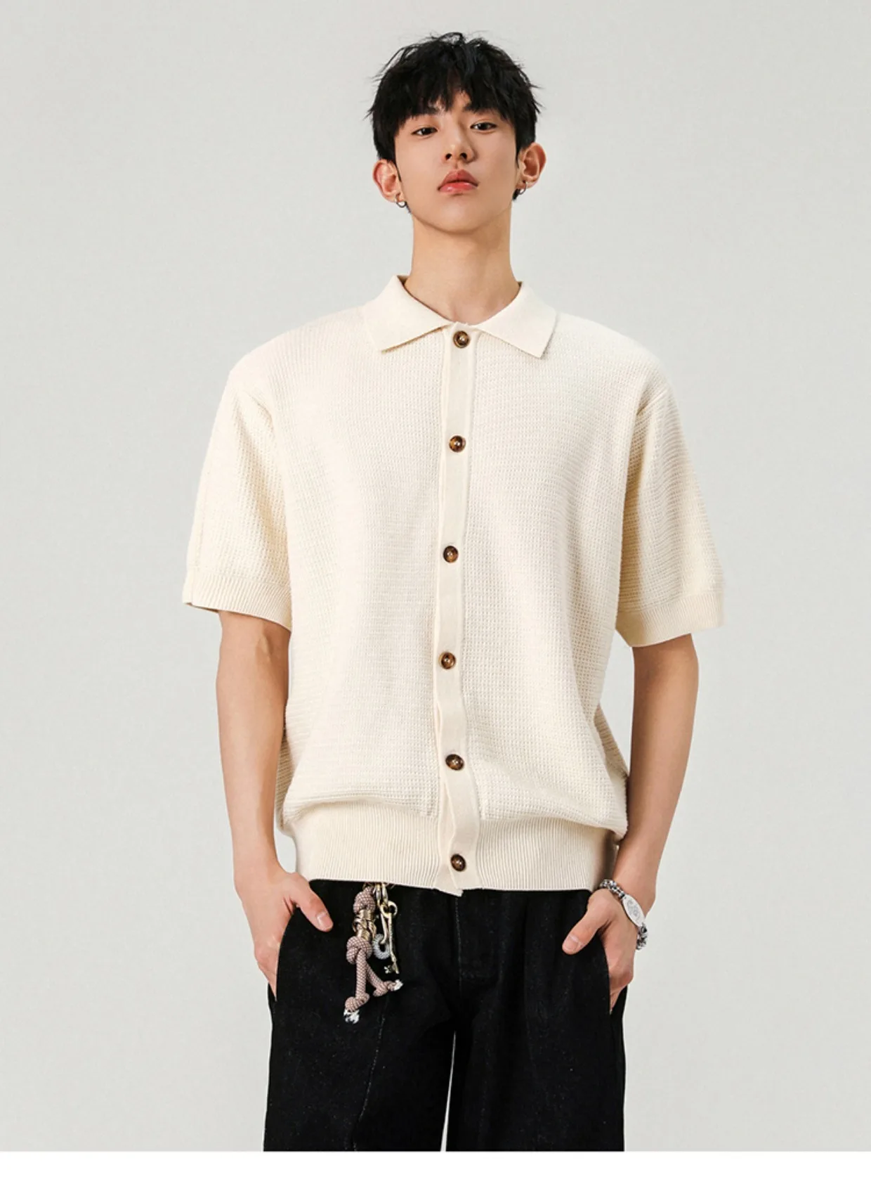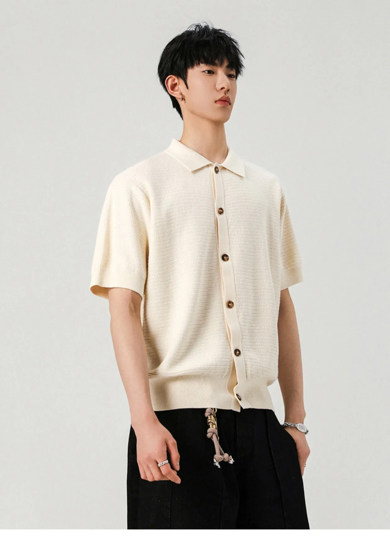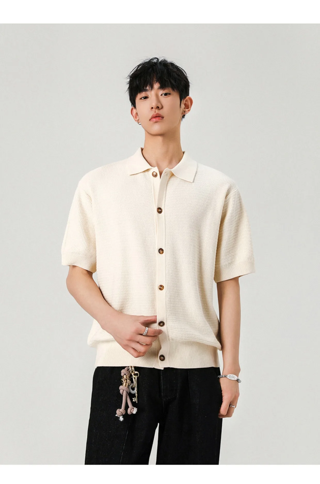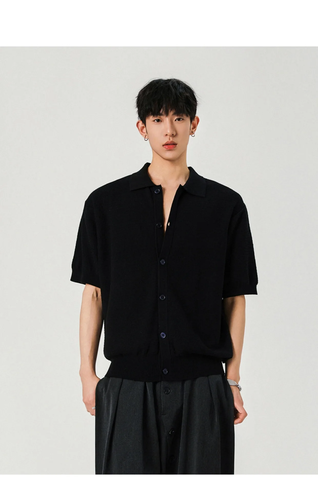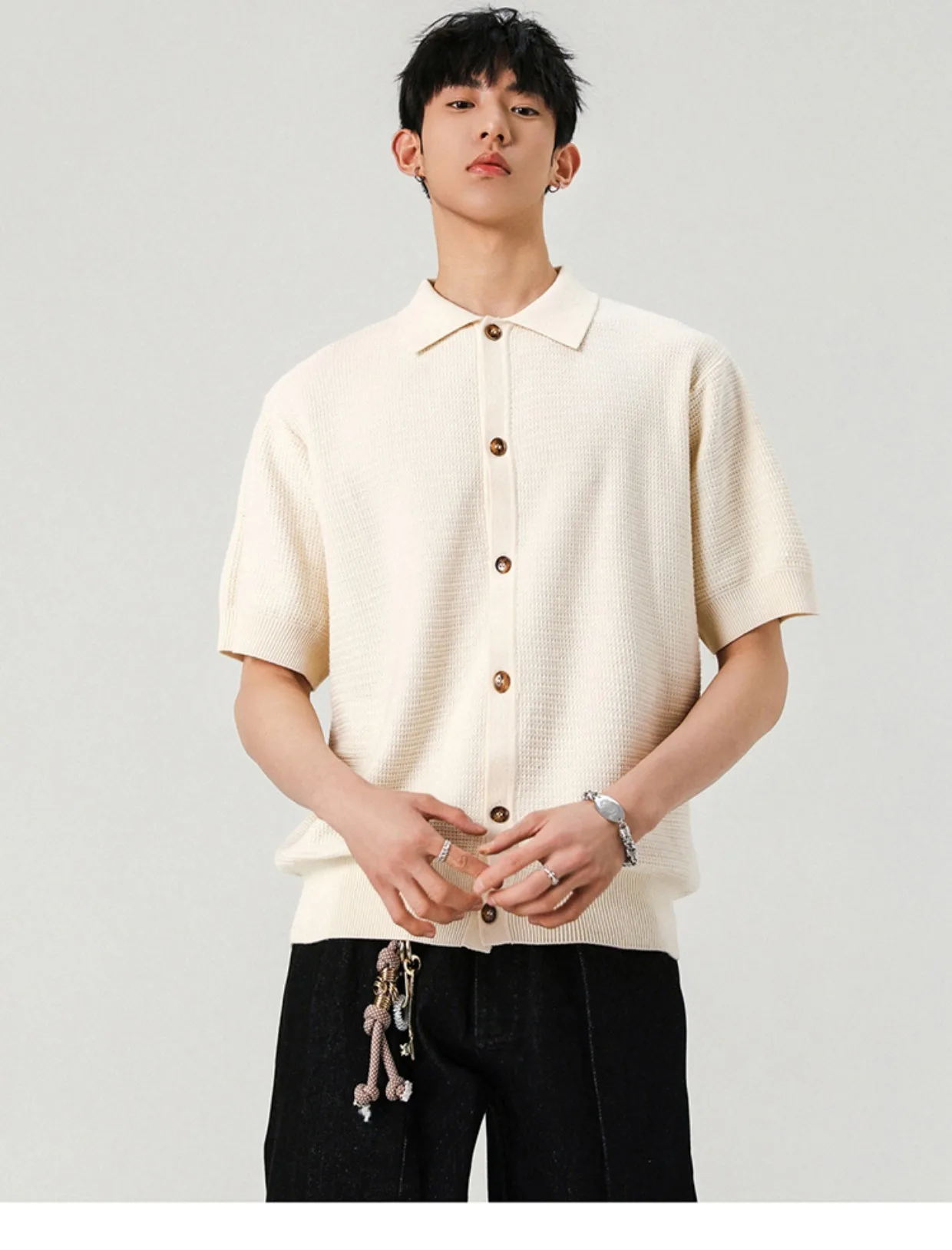 Men's Shirts New Kroean Turn-down Collar Button Tide Open Single Breasted Solid Color Short Sleeve Shirt Spring 2025 9W1384