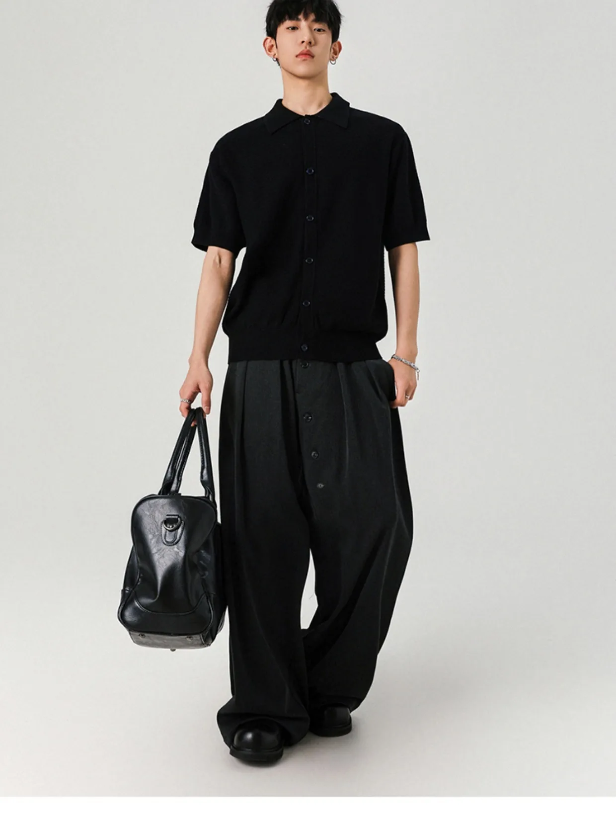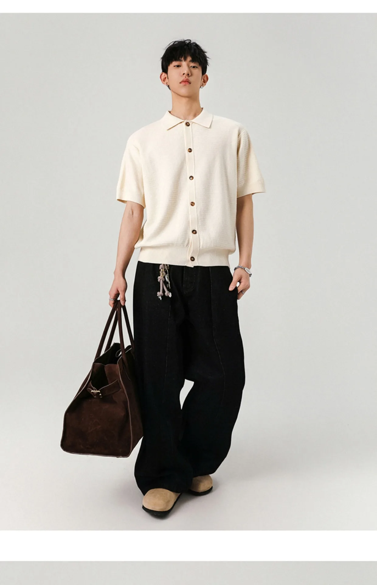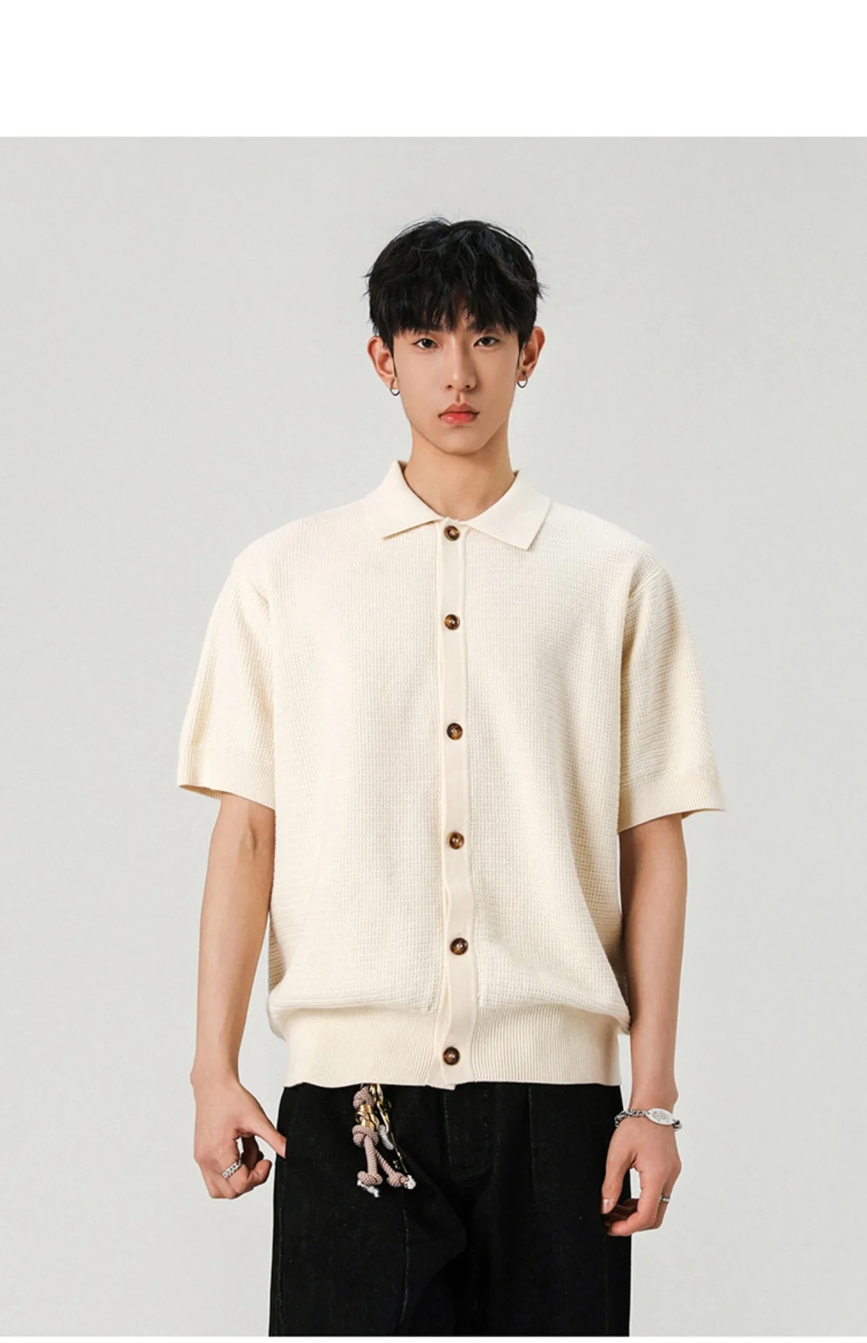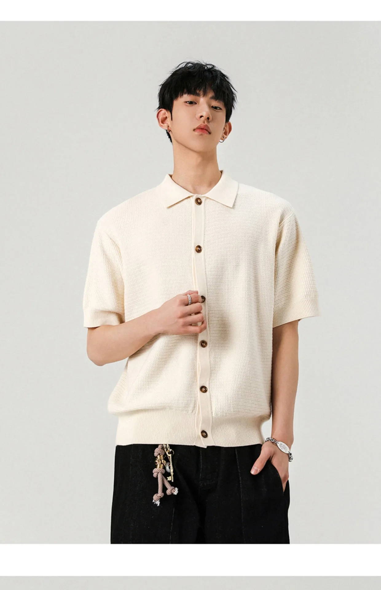 Men's Shirts New Kroean Turn-down Collar Button Tide Open Single Breasted Solid Color Short Sleeve Shirt Spring 2025 9W1384